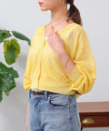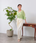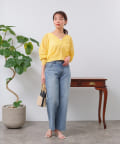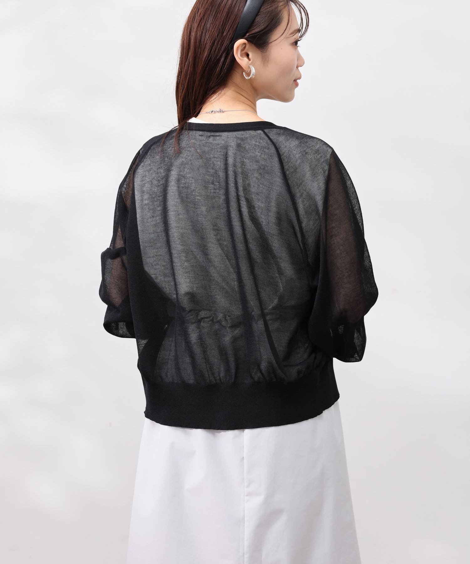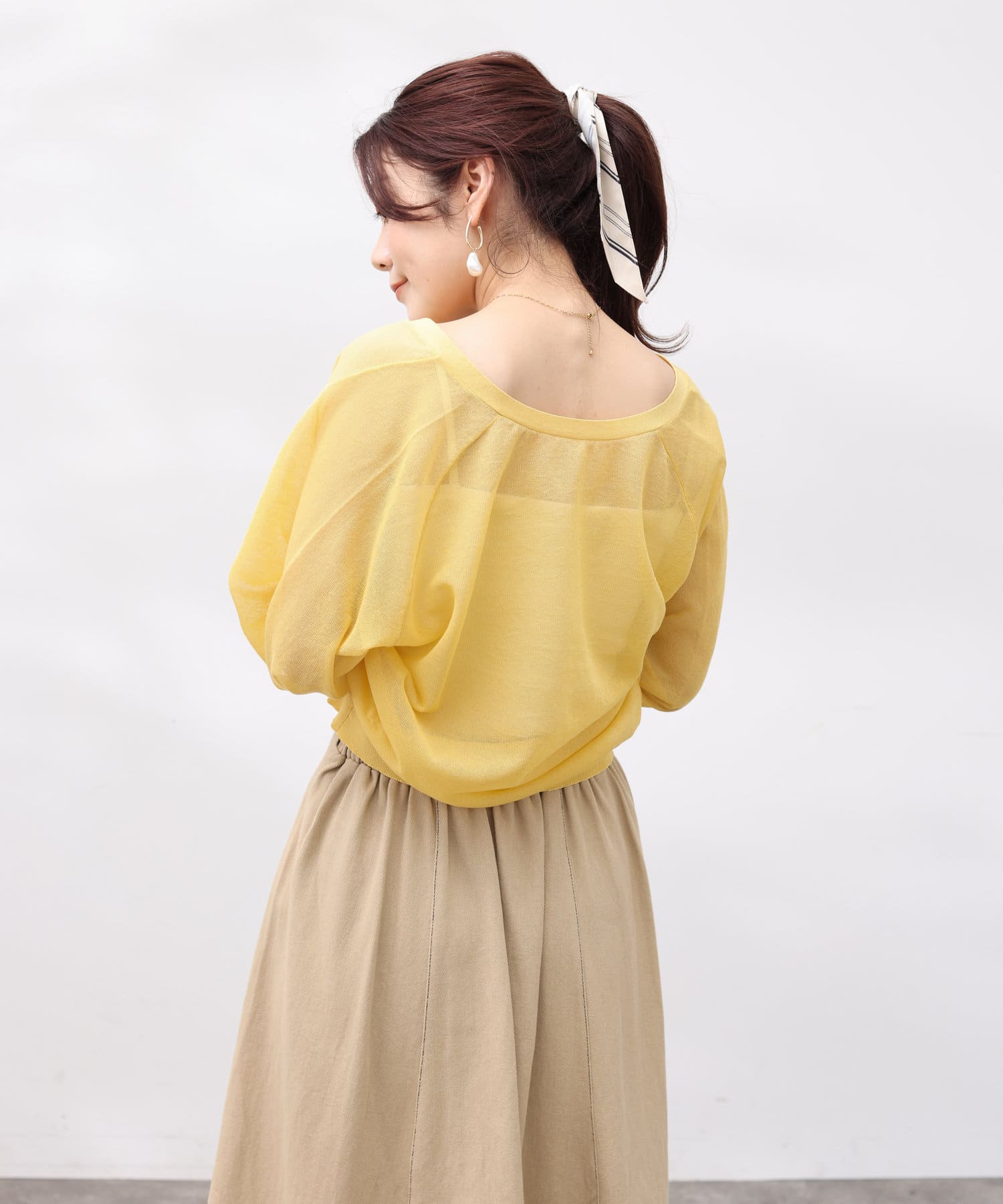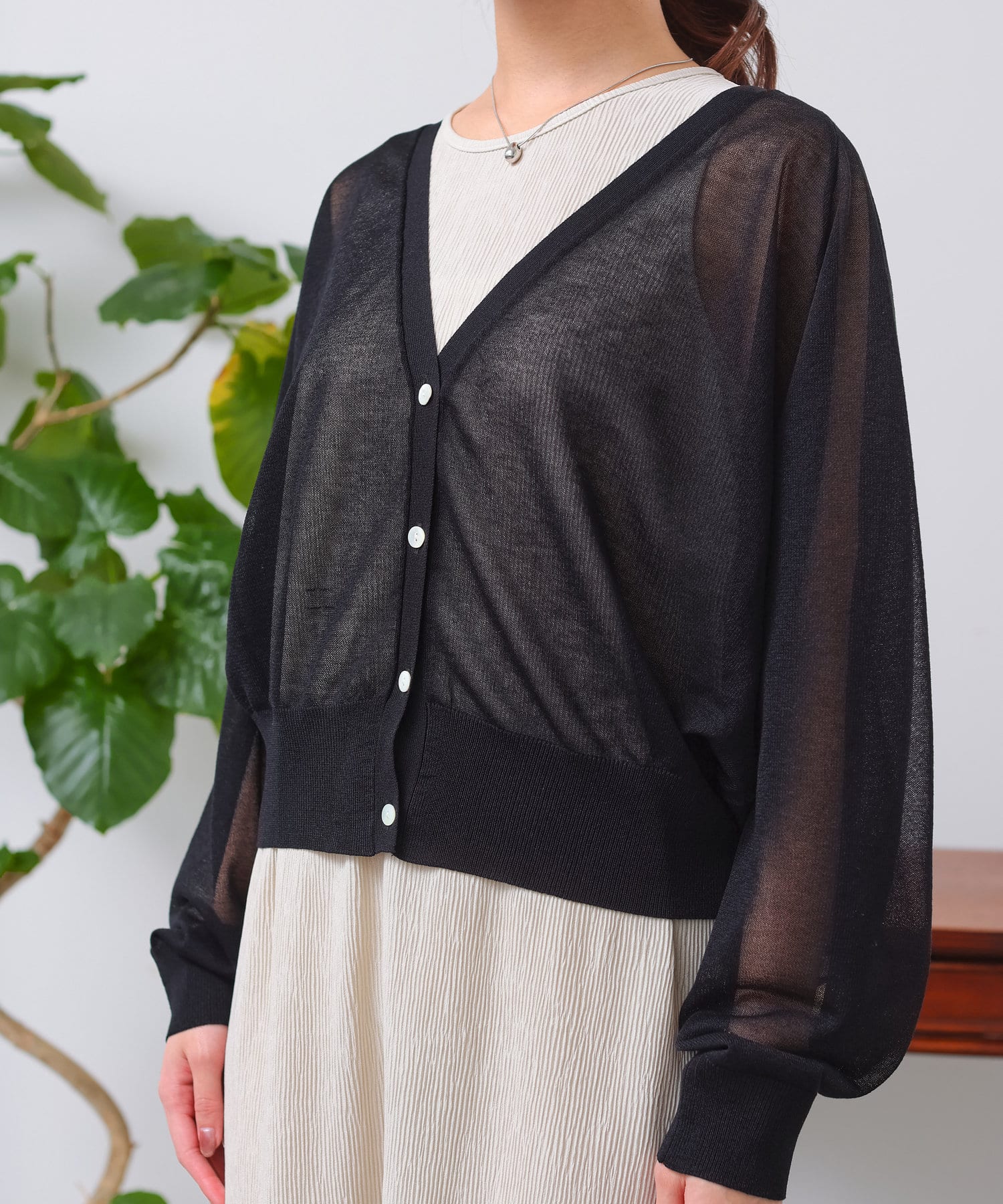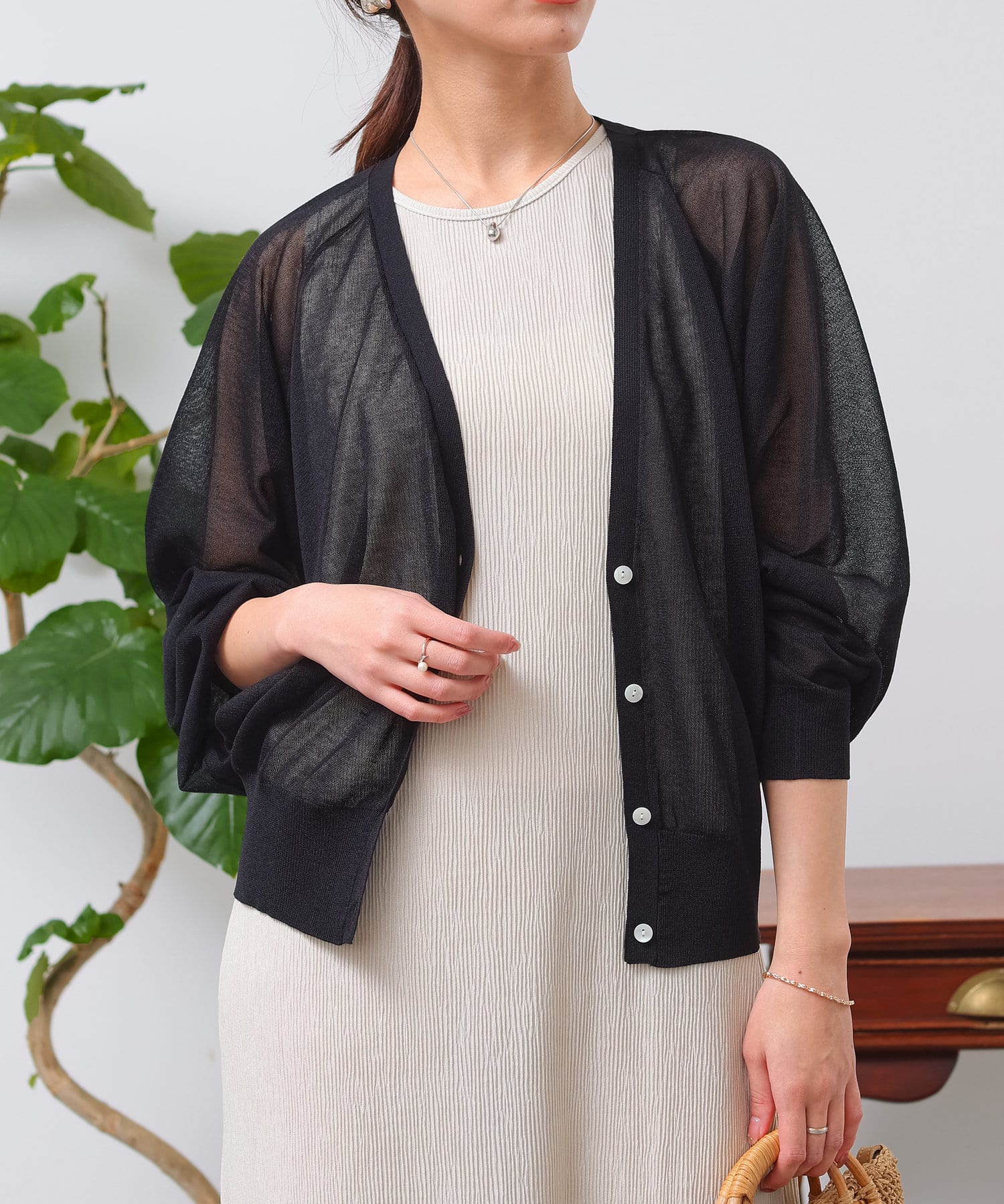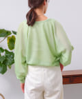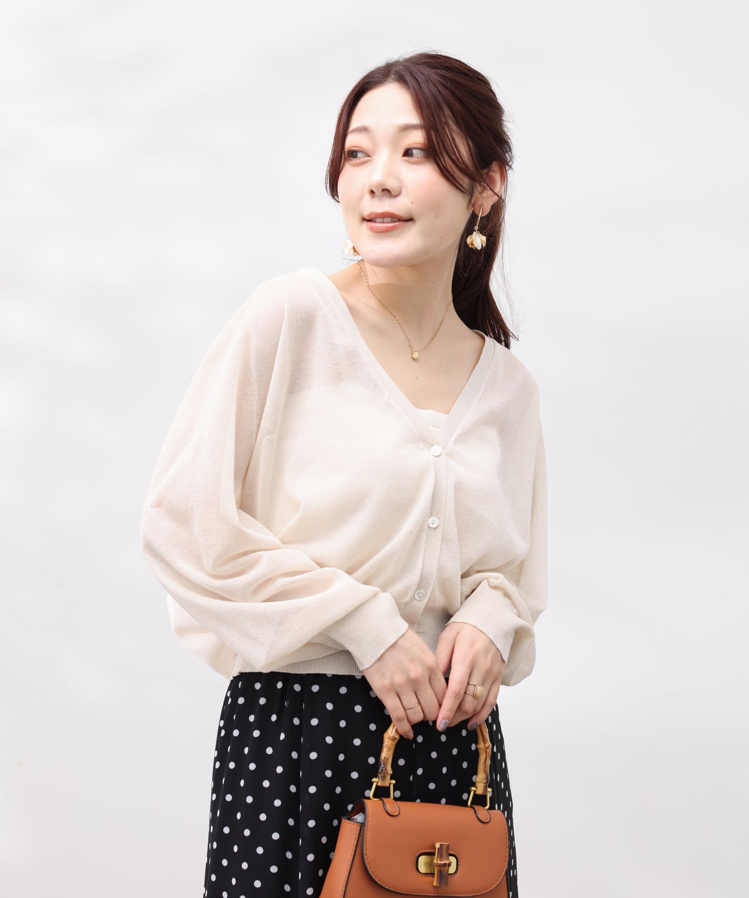 ゆったりとしたサイズ感と鮮やかなカラーが目を惹くシアーカーディガン。