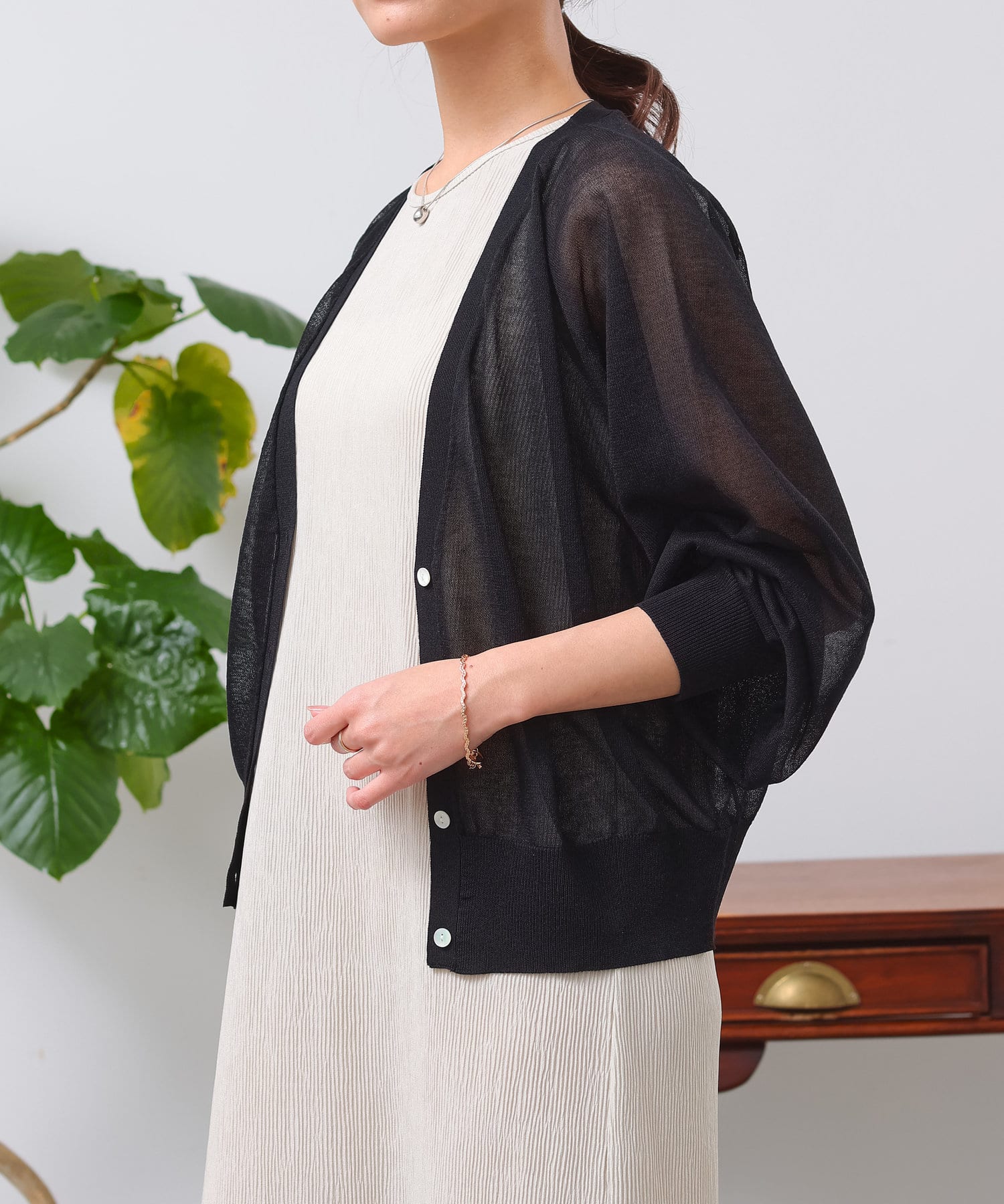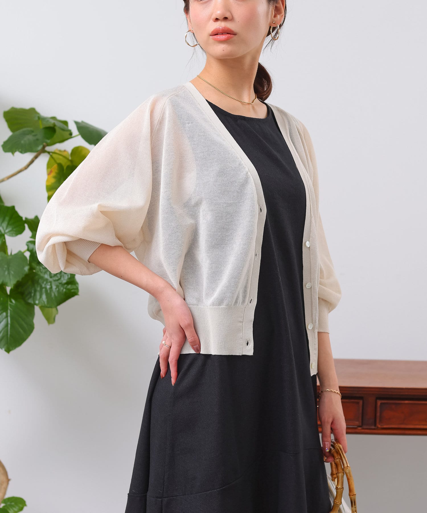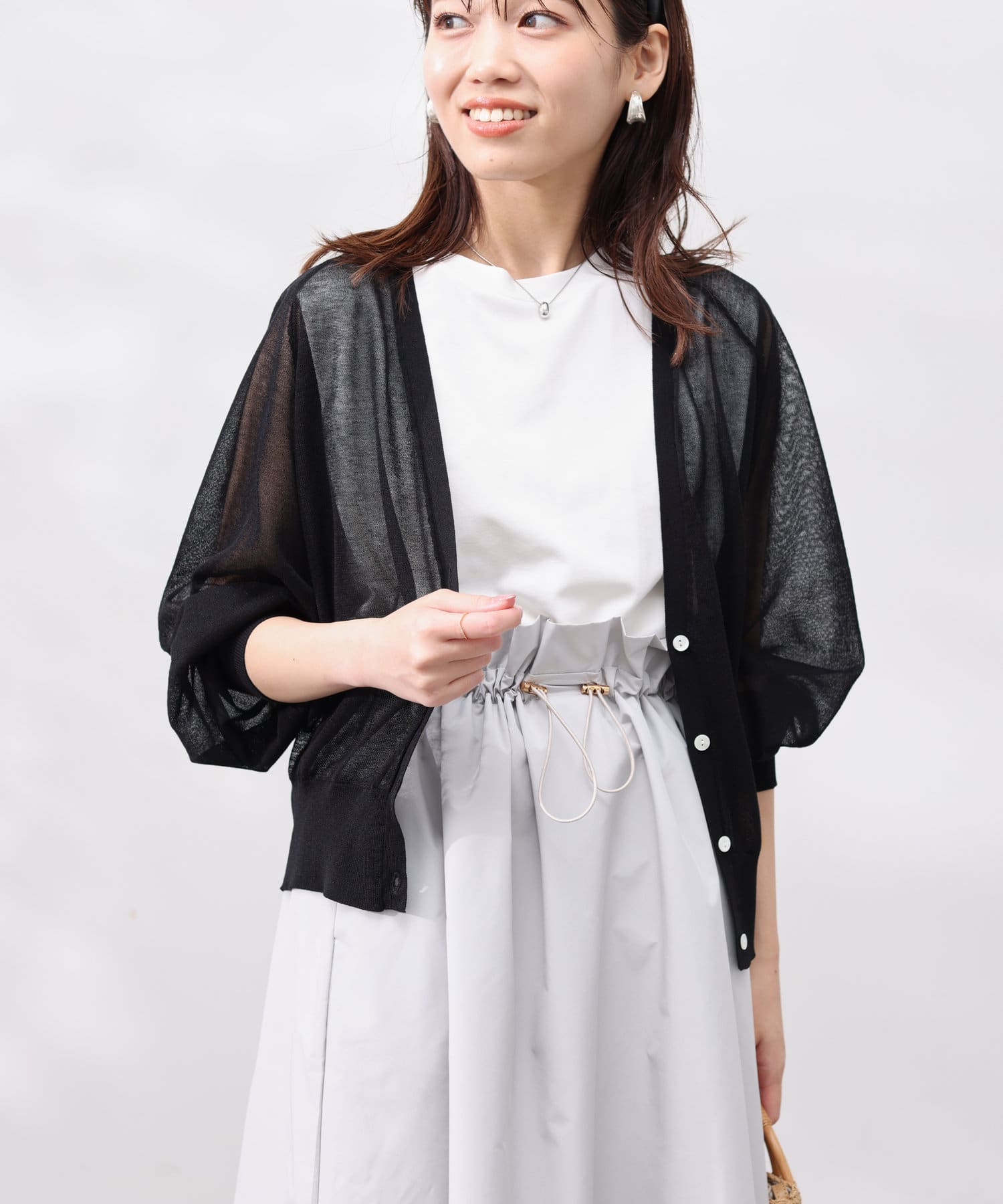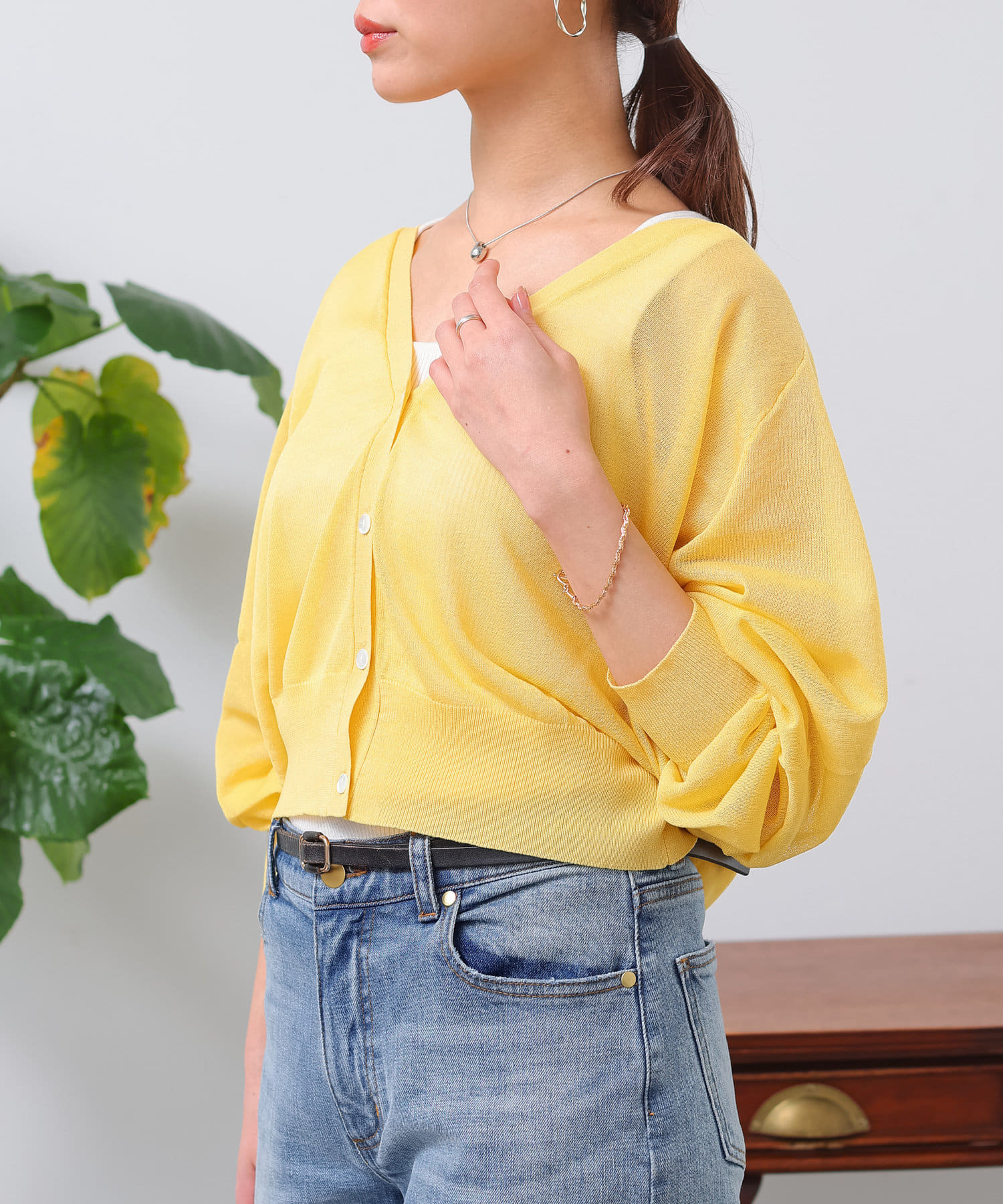 ノースリーブのワンピースやタンクトップの羽織として、前を閉じてプルオーバー風にも楽しんでいただけます。