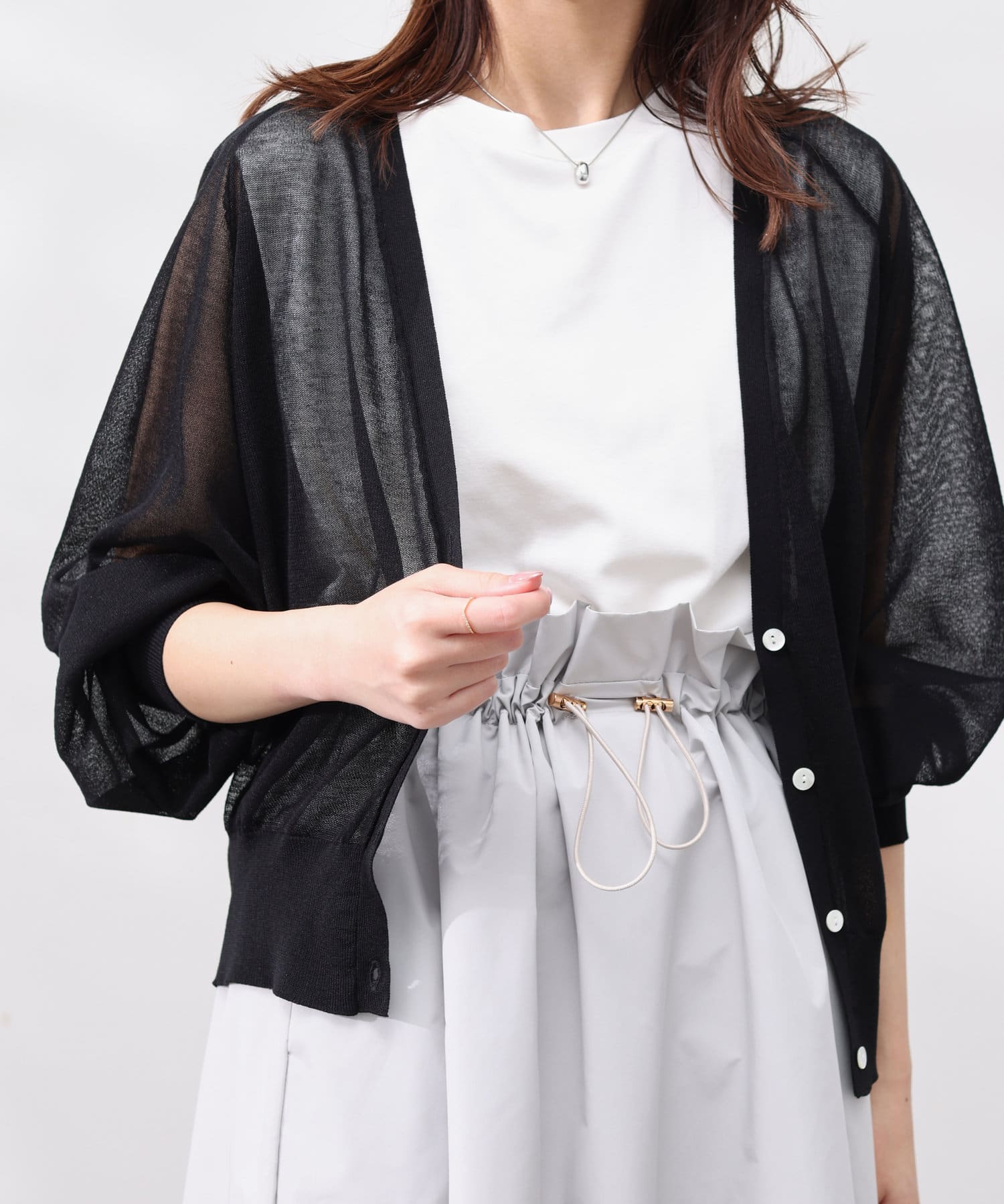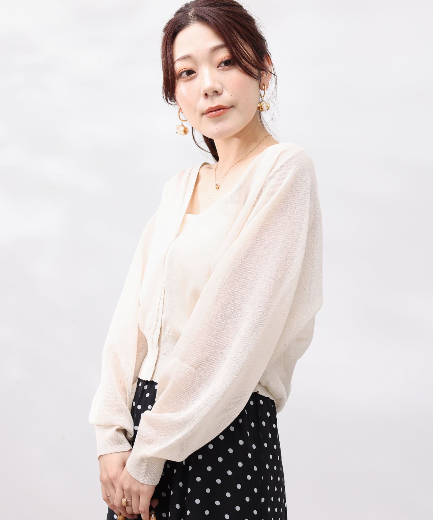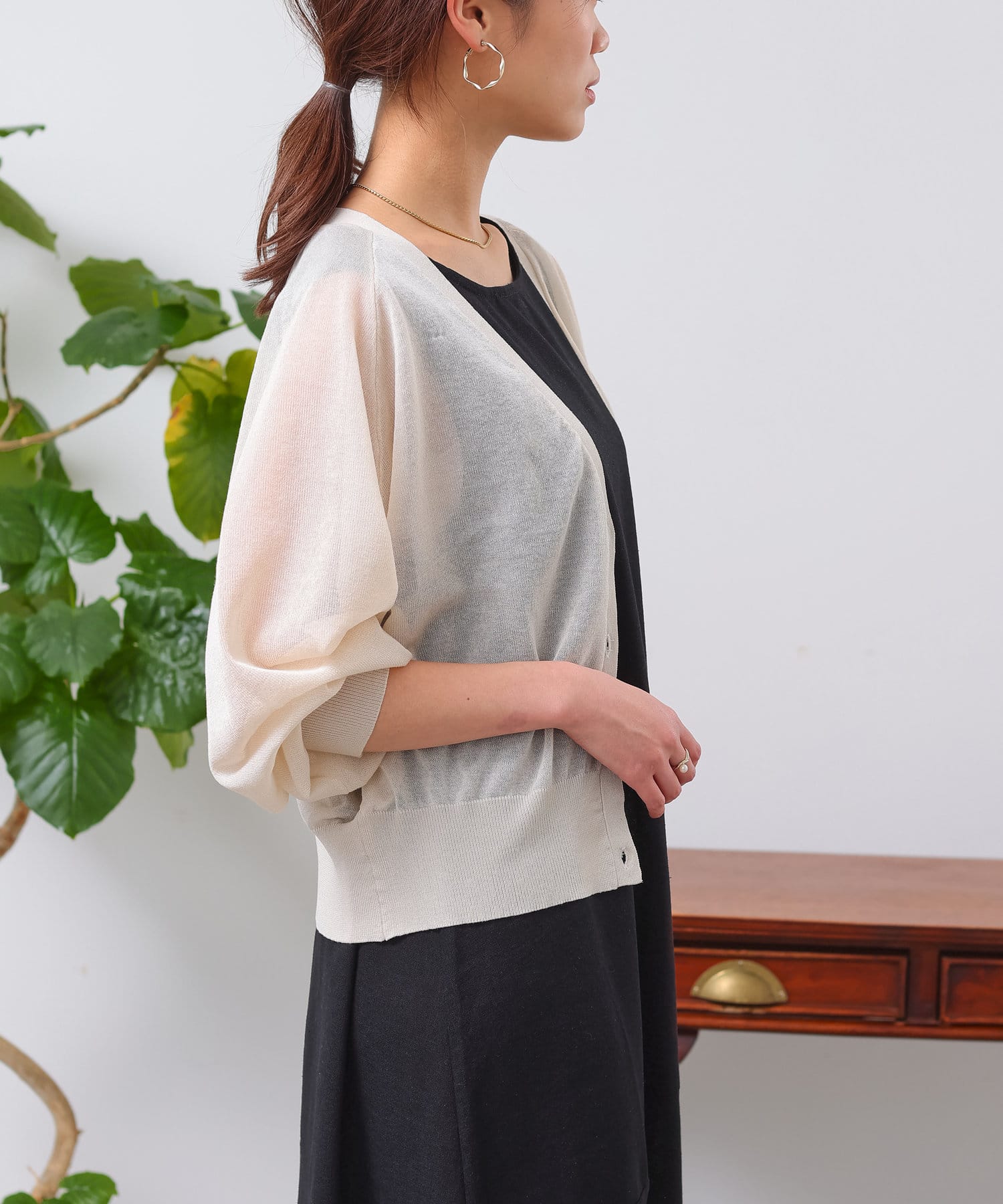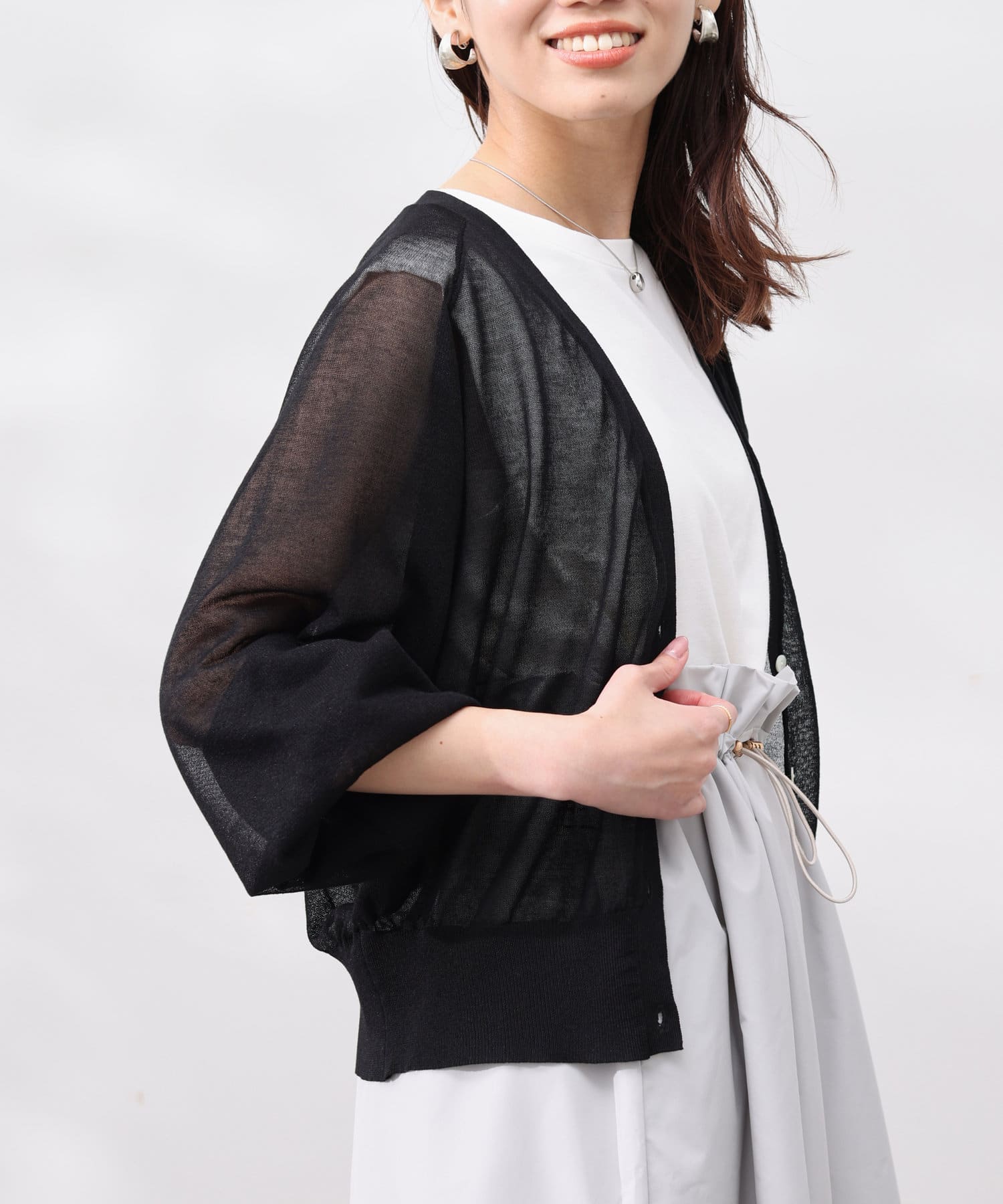 ノースリーブのワンピースやタンクトップの羽織として、前を閉じてプルオーバー風にも楽しんでいただけます。