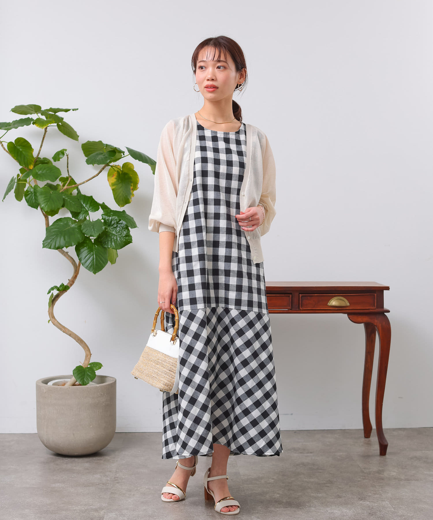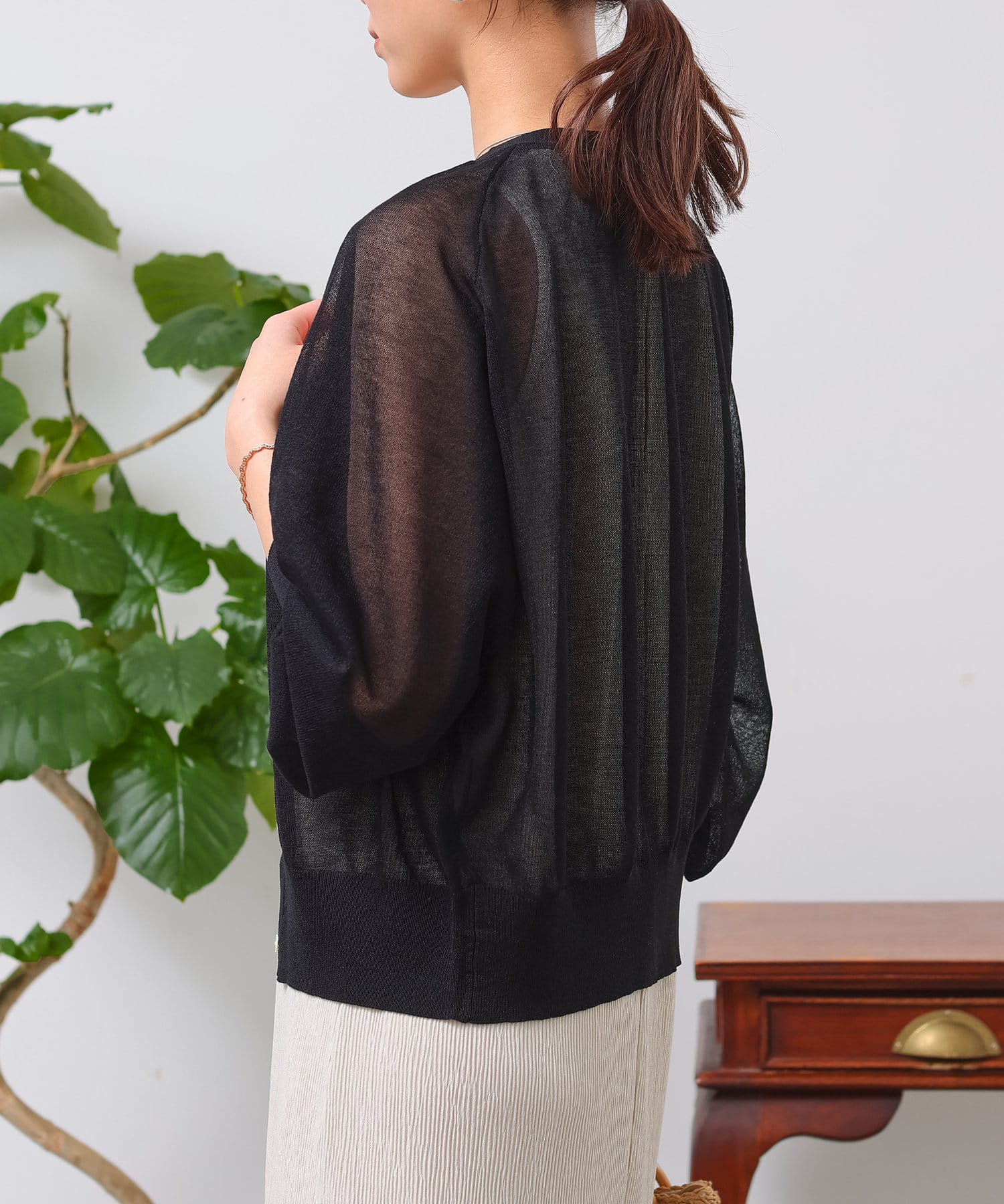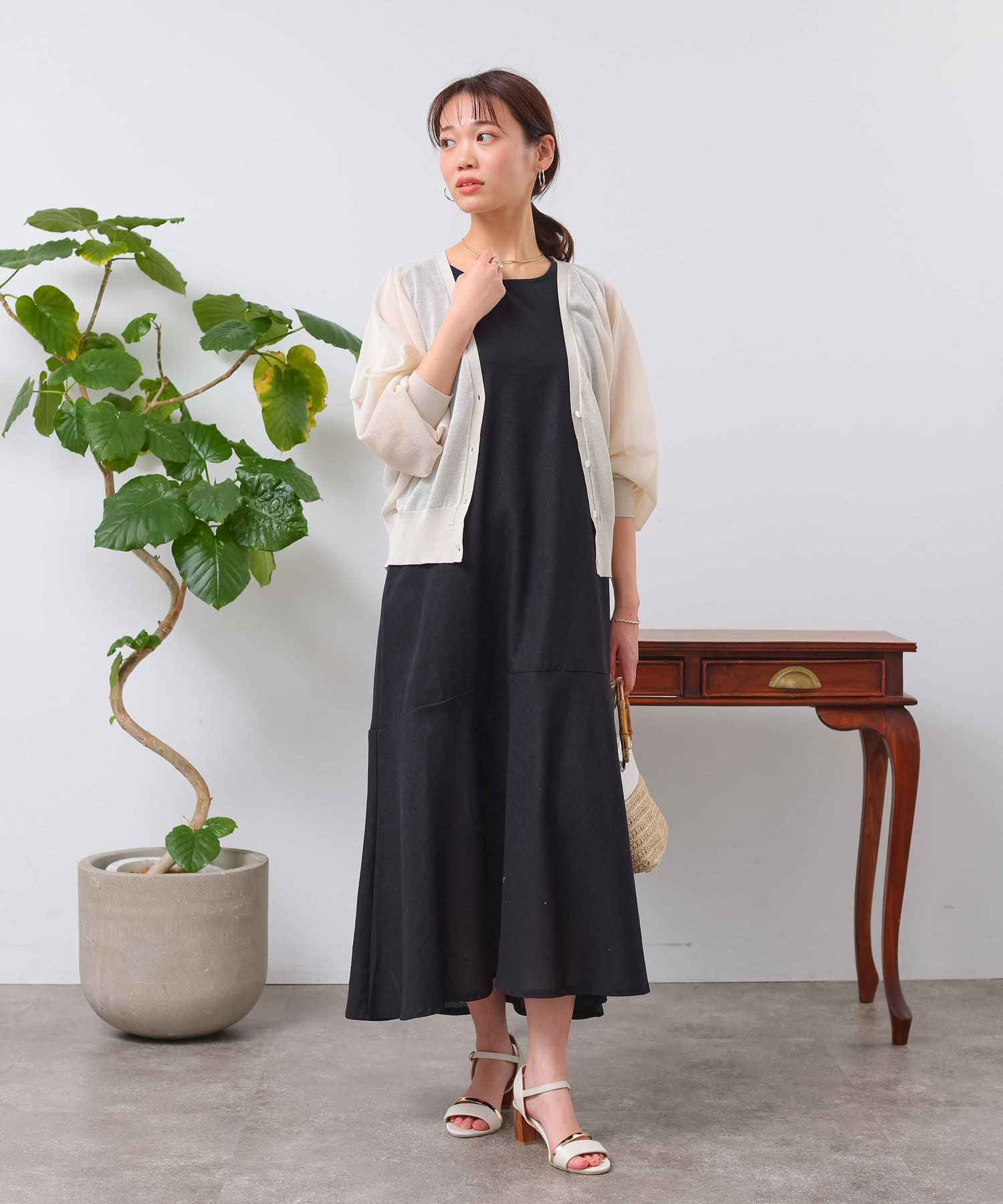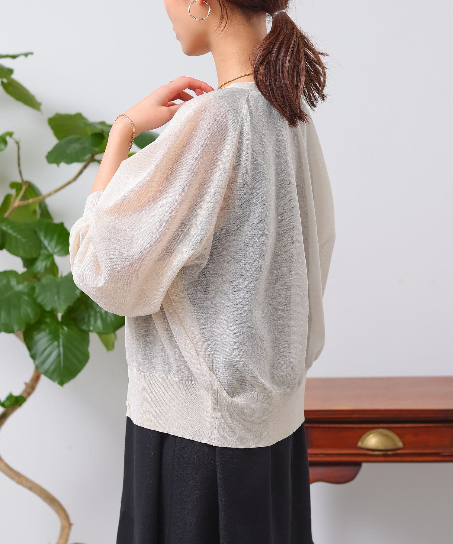 ノースリーブのワンピースやタンクトップの羽織として、前を閉じてプルオーバー風にも楽しんでいただけます。