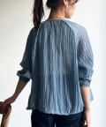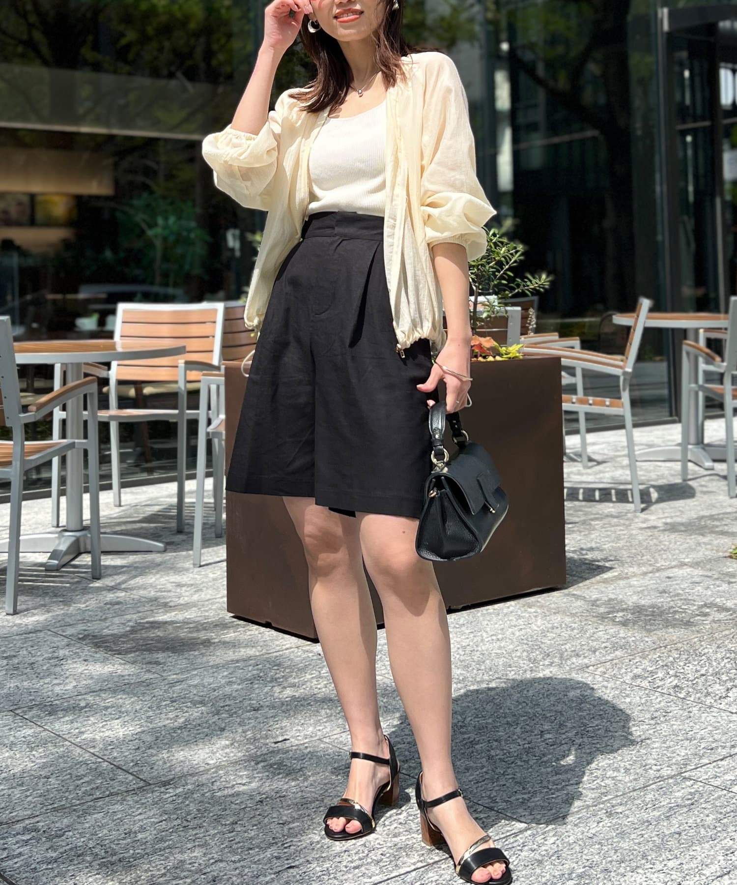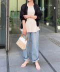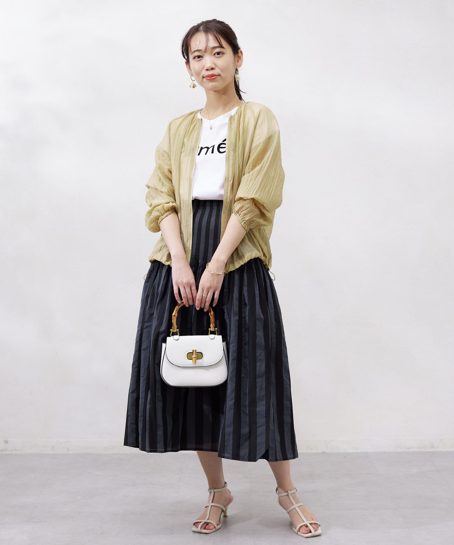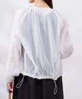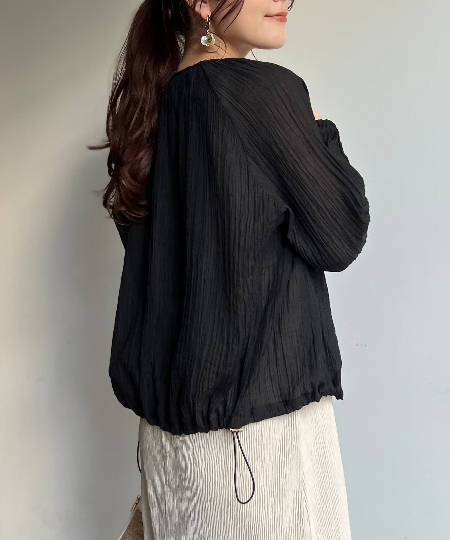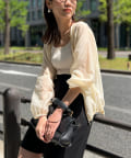 裾を絞るとギュッとブラウジングができるので、ハイウエストのパンツやフレスカートで合わせてもバランスよく合わせていただけます。