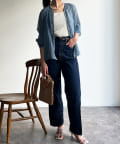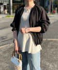 カジュアルにも、きれいめなスタイリングにも合わせやすいシンプルシルエットなので、お出かけの時にさっと羽織れる便利アイテムです。