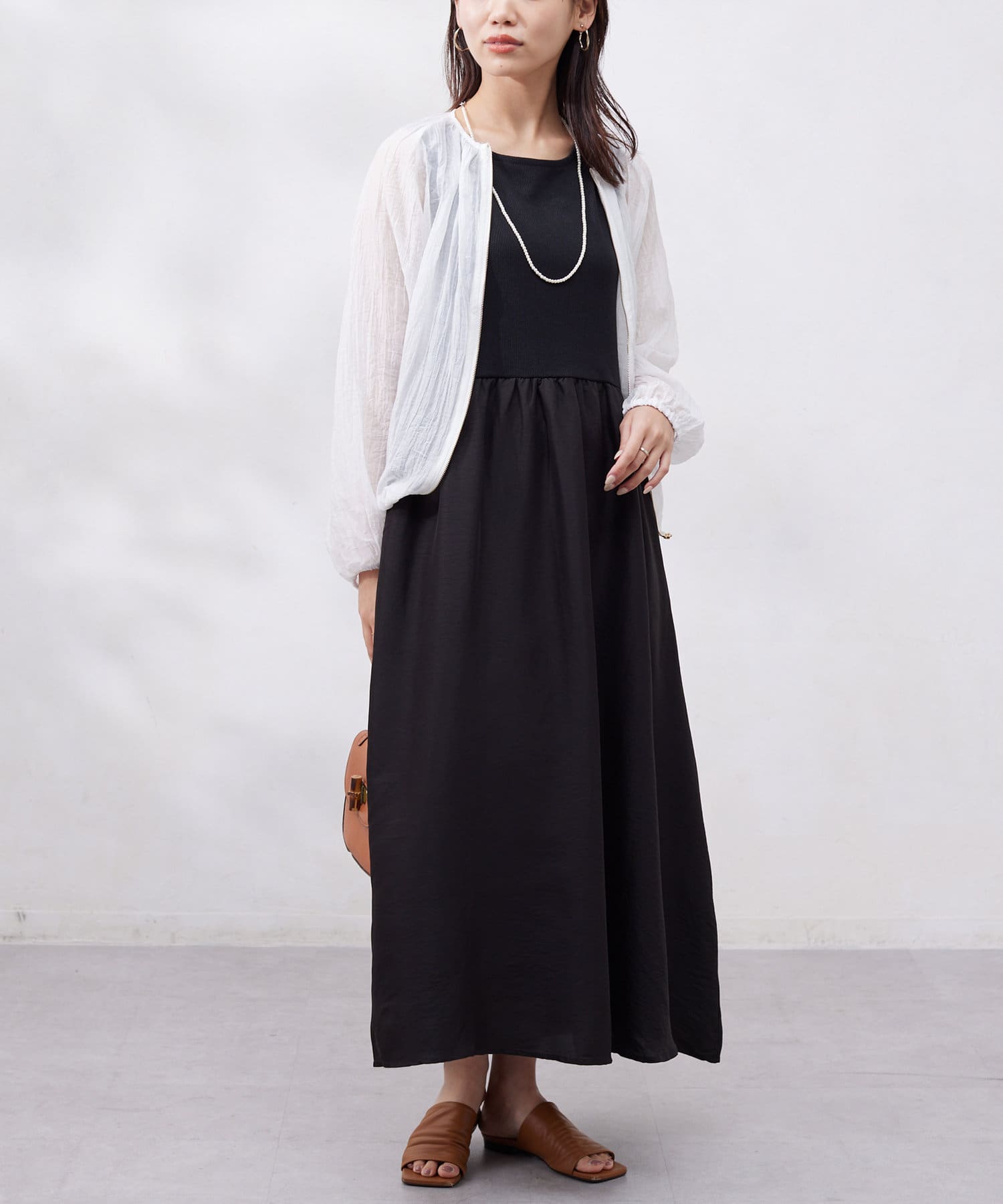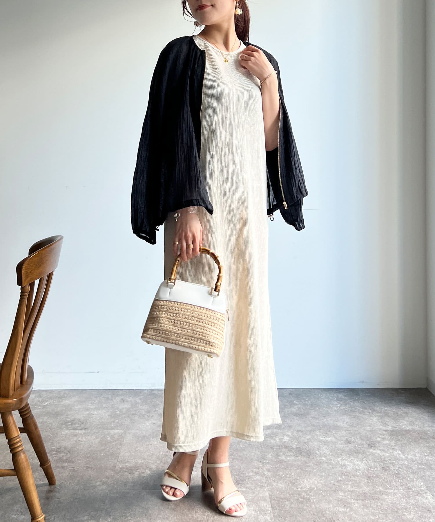 Tシャツやタンクトップで合わせて、ノースリワンピースの羽織として。