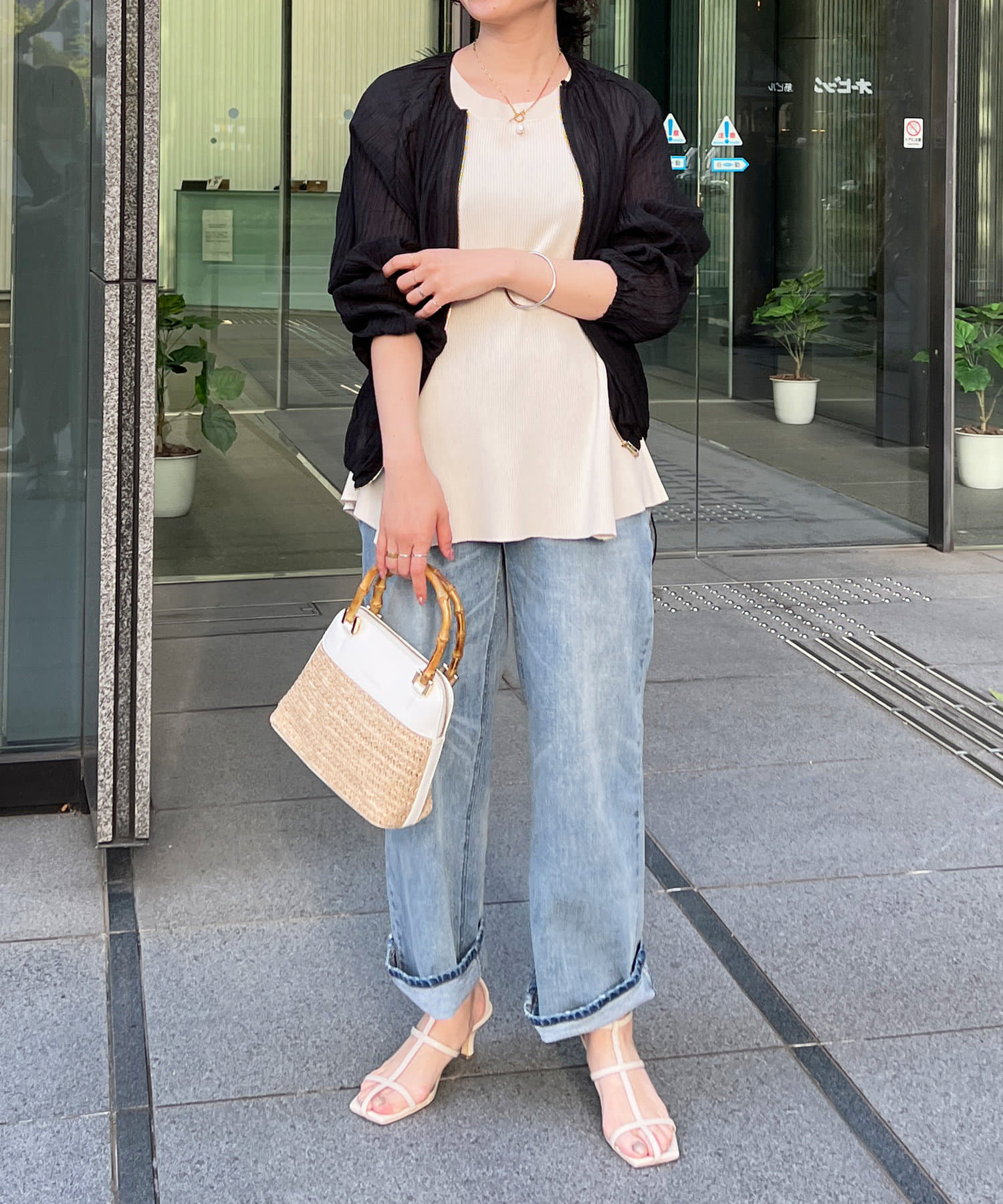 やり過ぎない透け感で適度な肌見せになり、涼し気に着ていただけます。