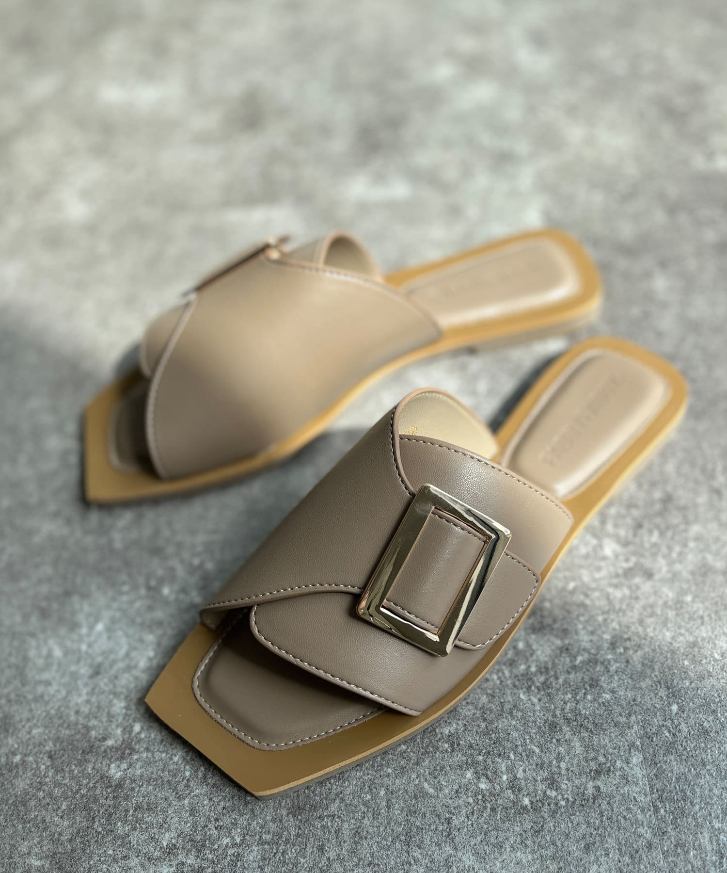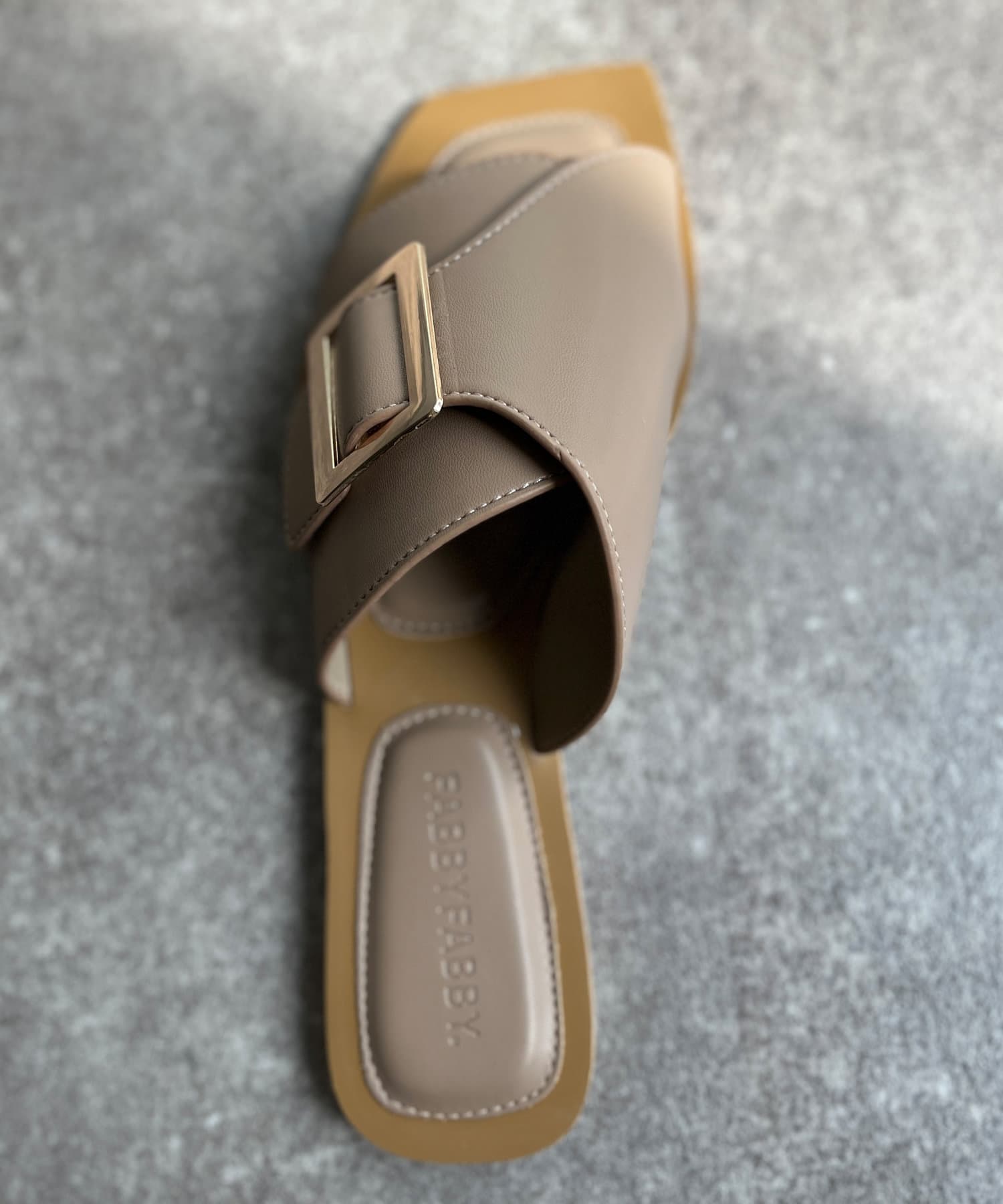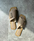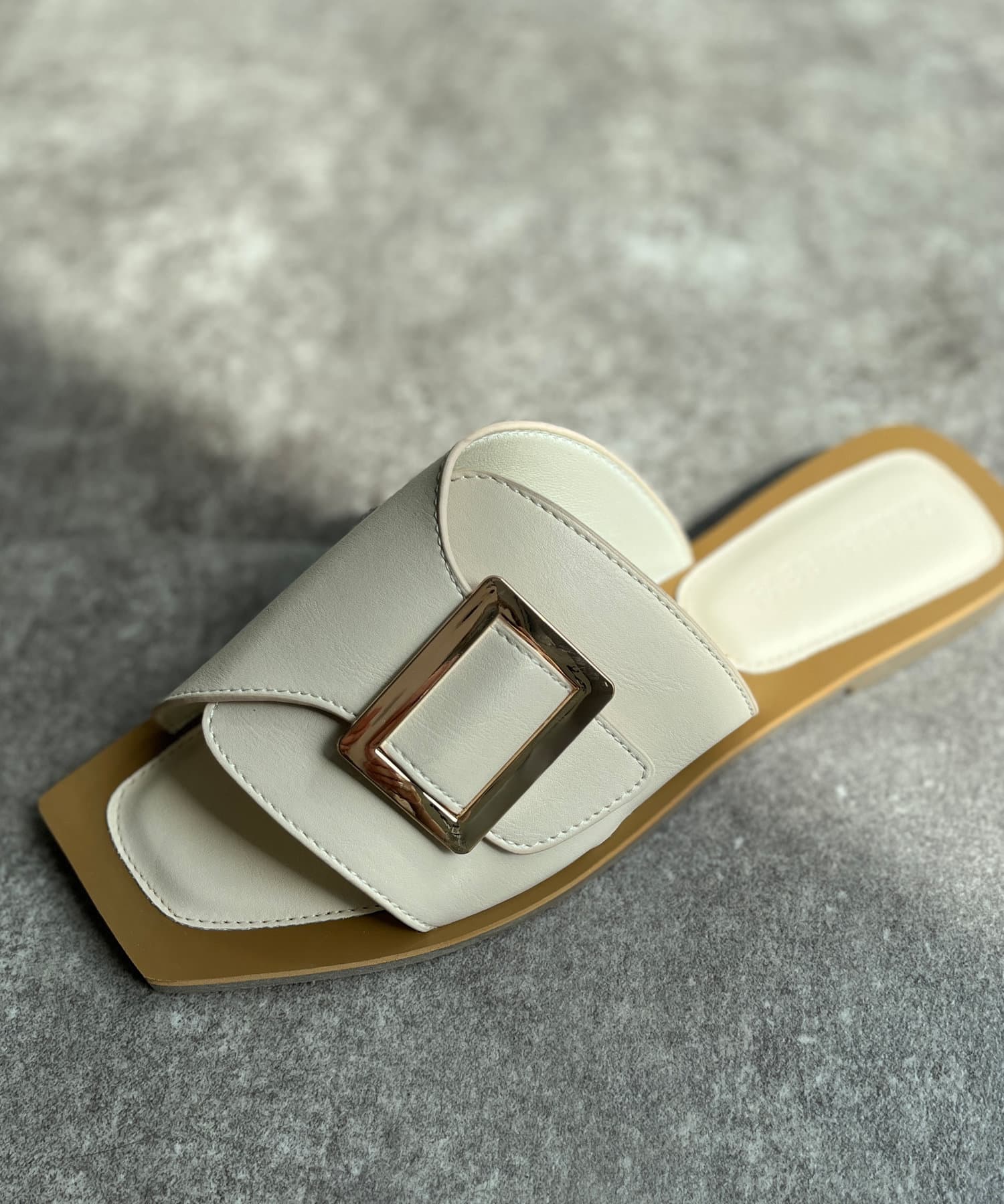 ・スクエアトゥの様なデザイン性のあるフラットサンダル