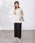 デザインを活かして細身のパンツやタイトスカートで合せたすっきりとした着こなしがおすすめ。