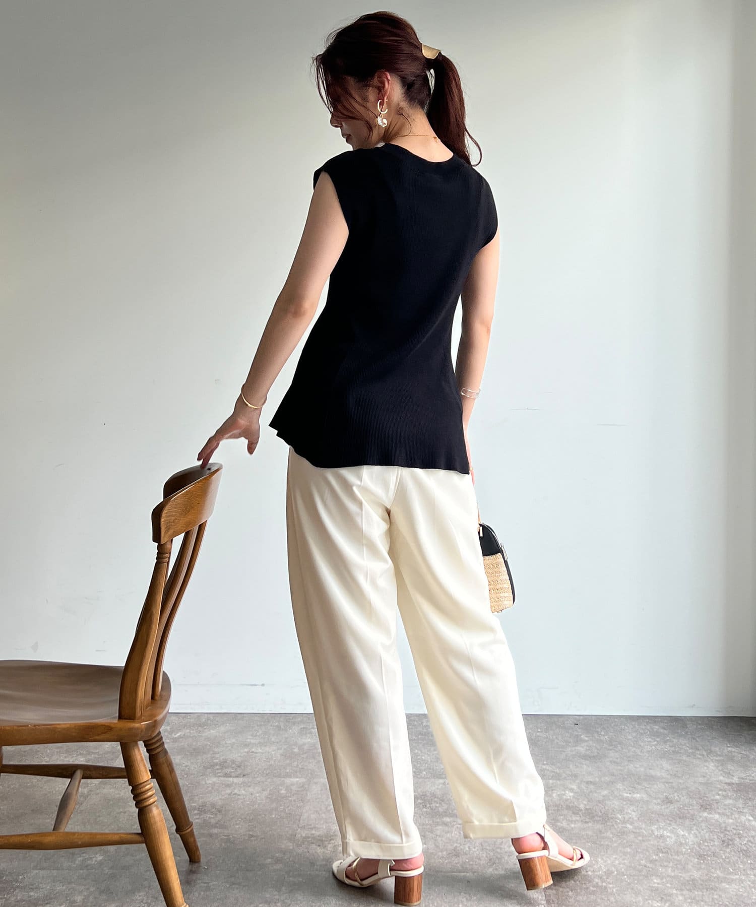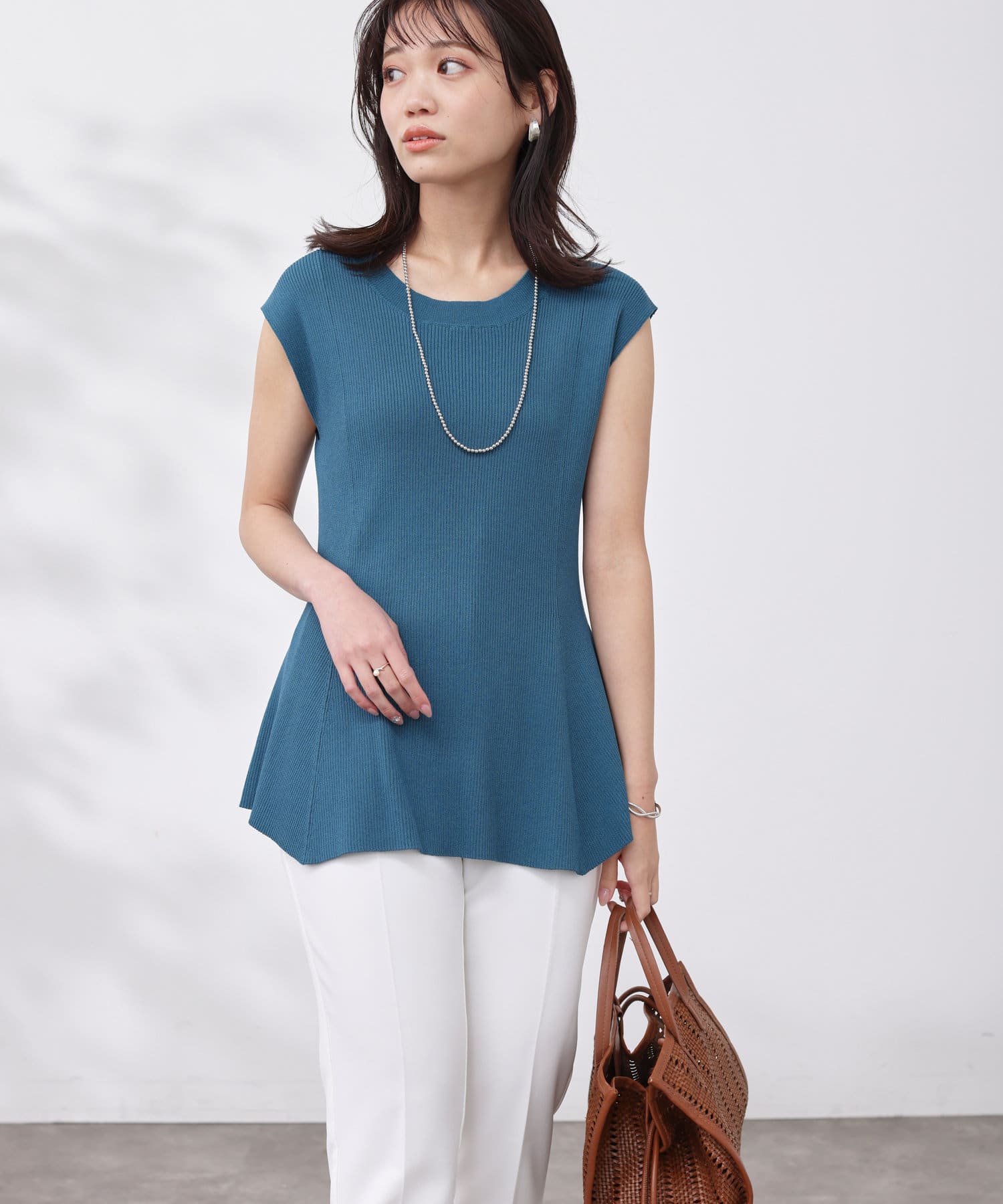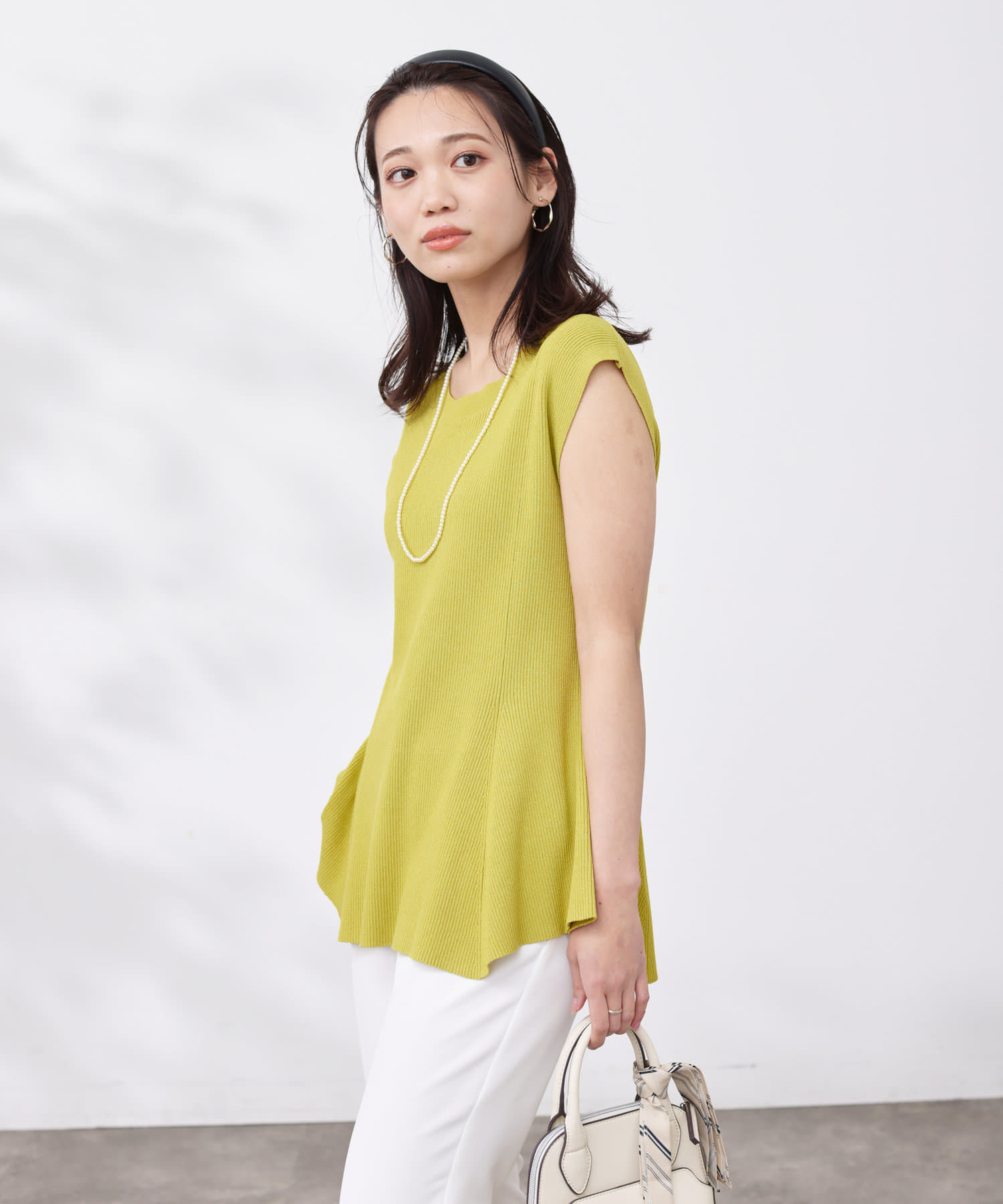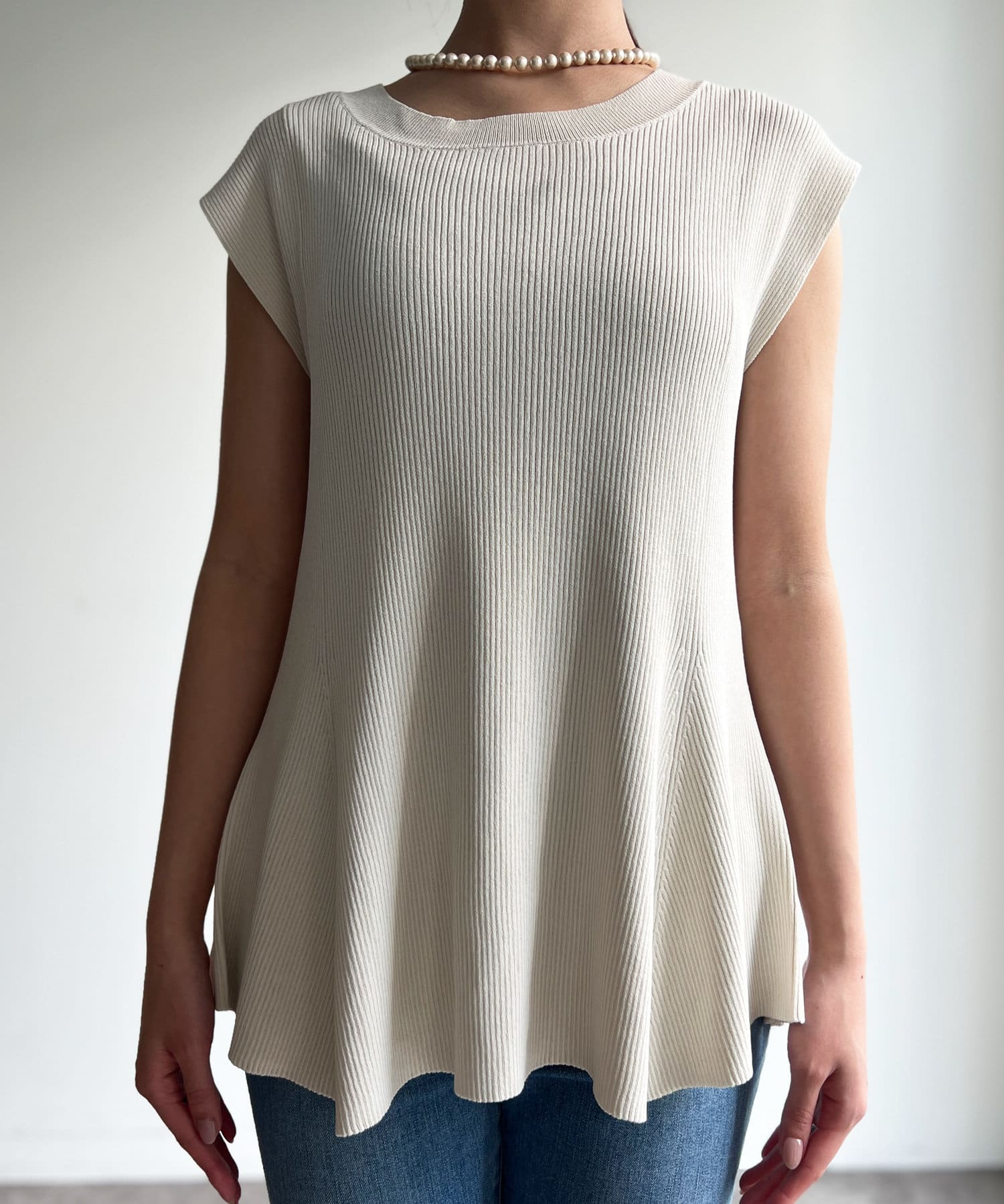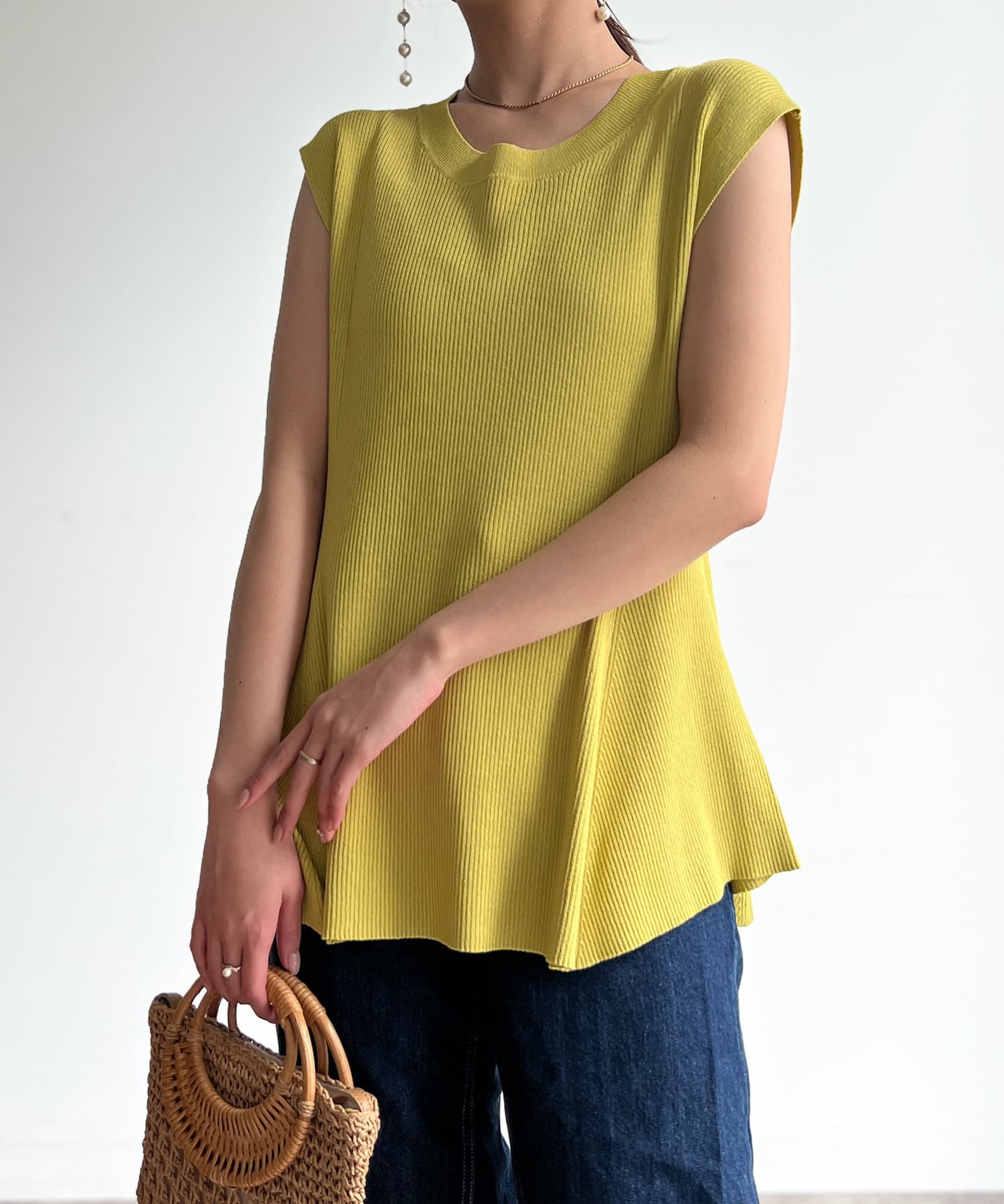 すっきりと見せてくれるリブの編立で、メリハリの着こなしに。