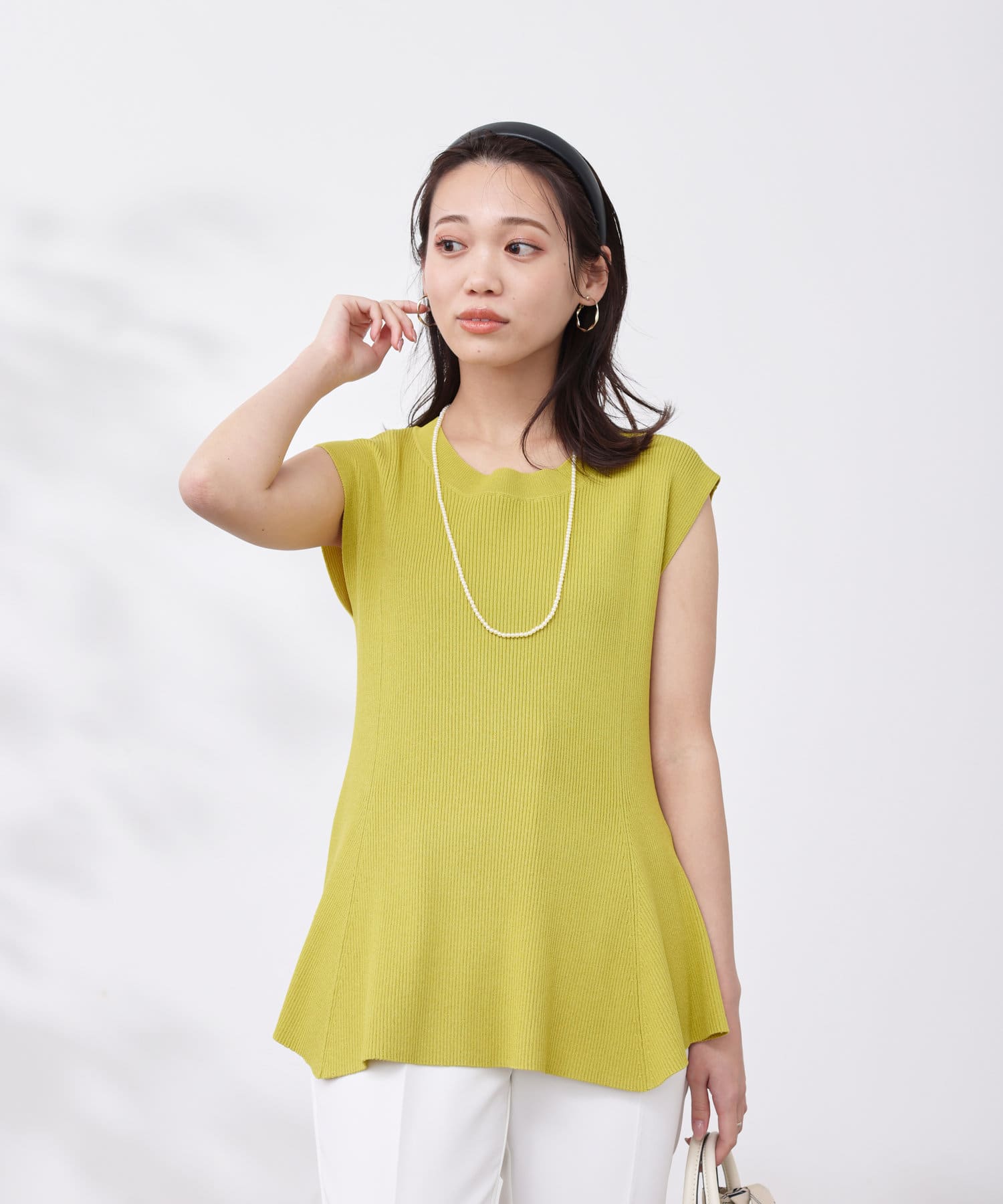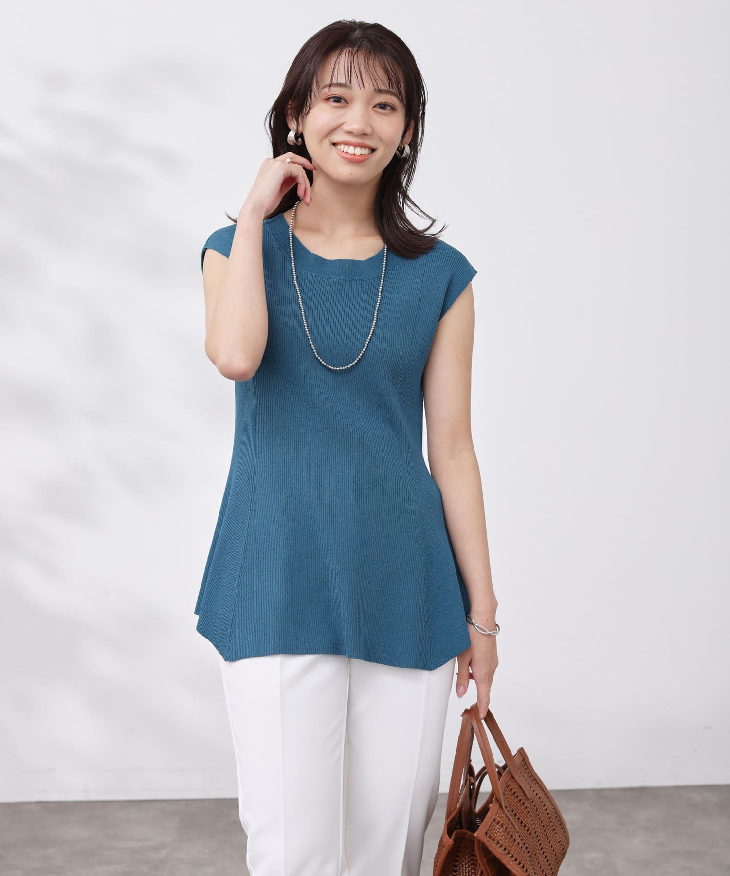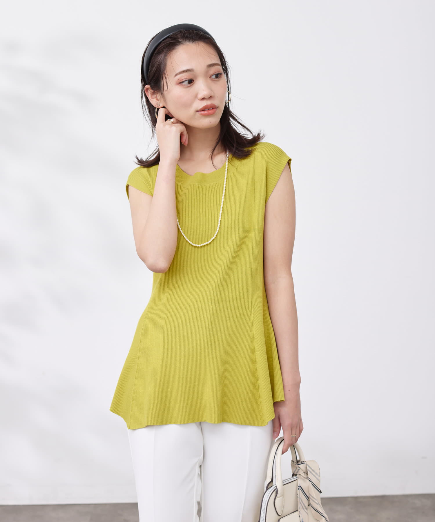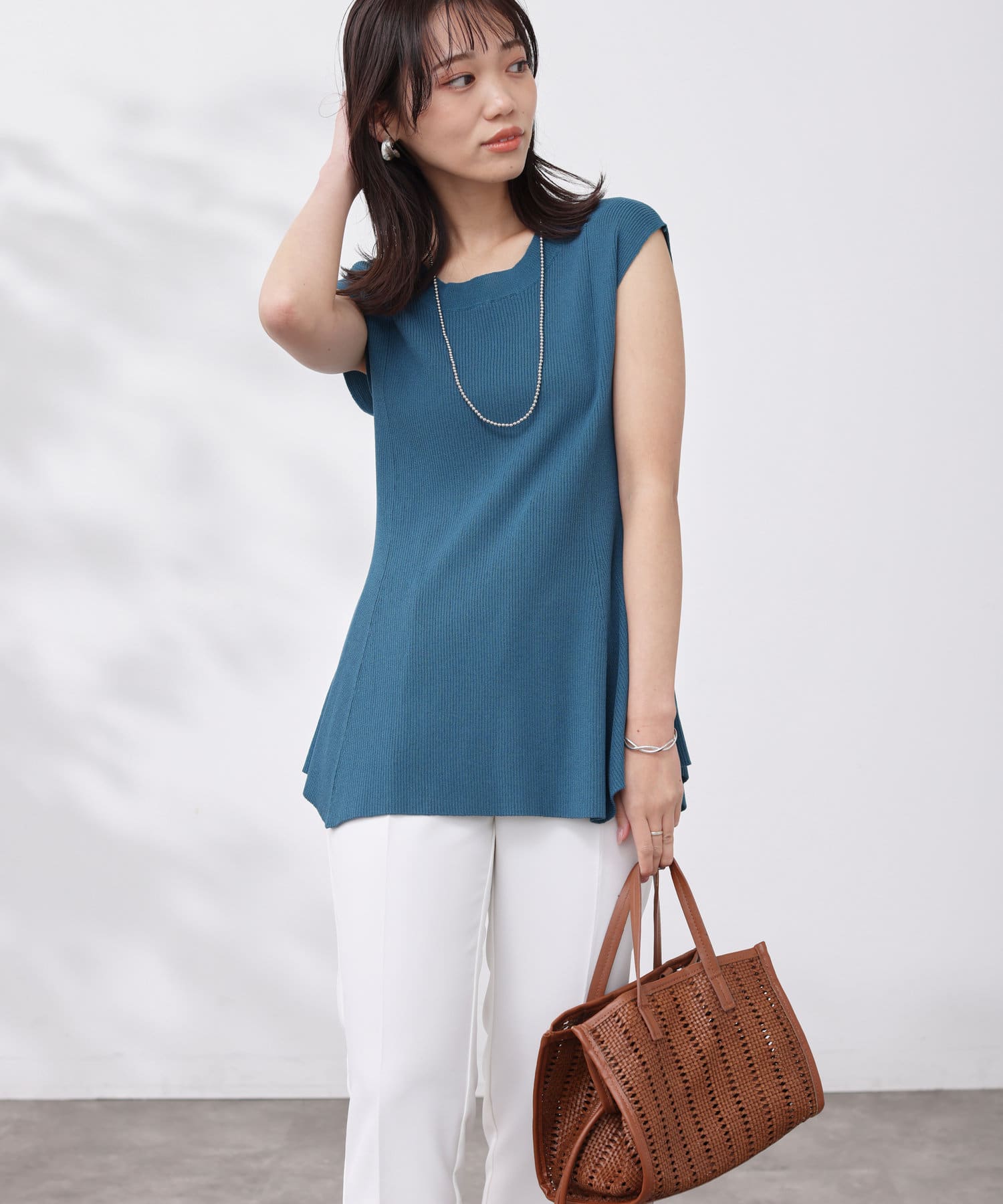 すっきりと見せてくれるリブの編立で、メリハリの着こなしに。