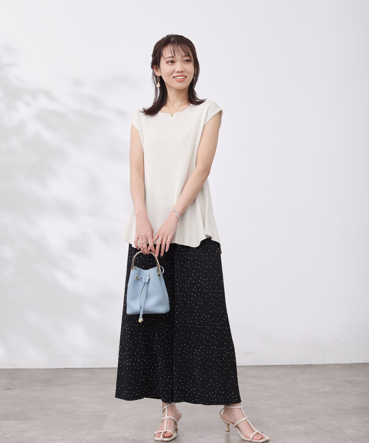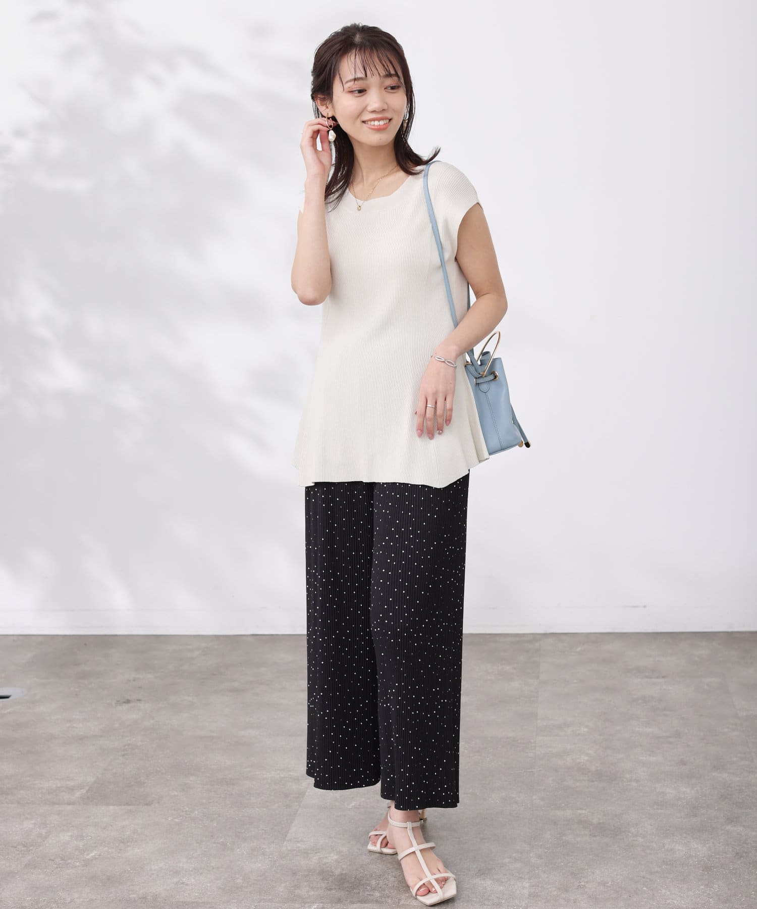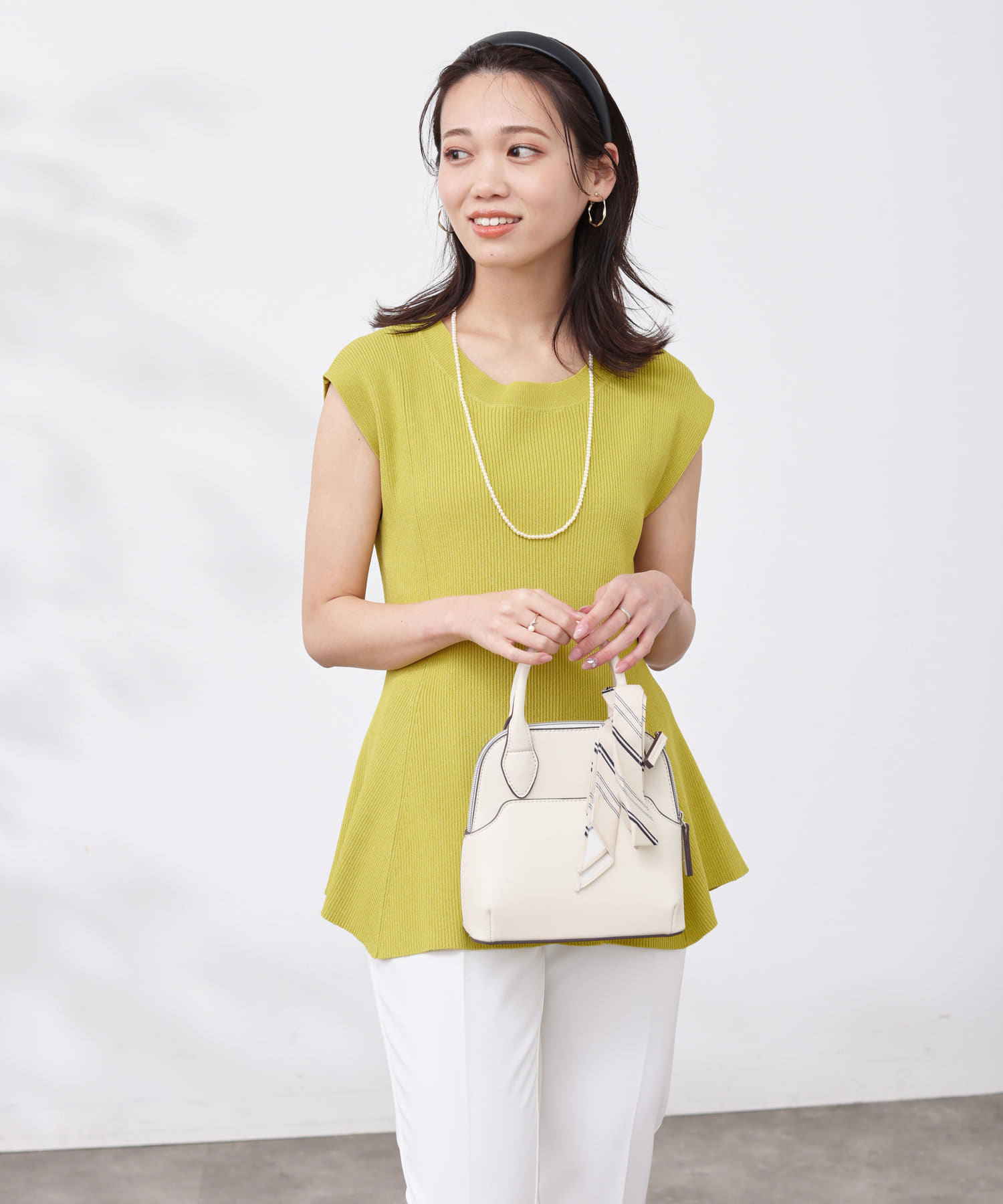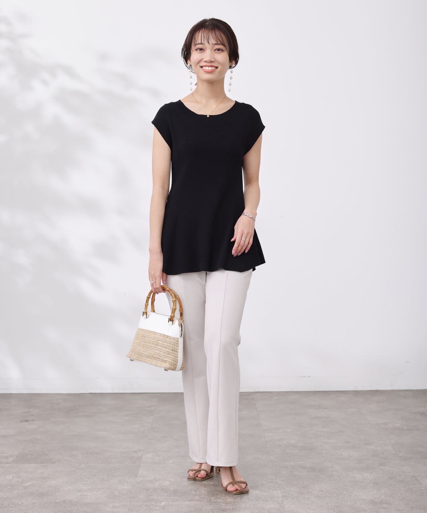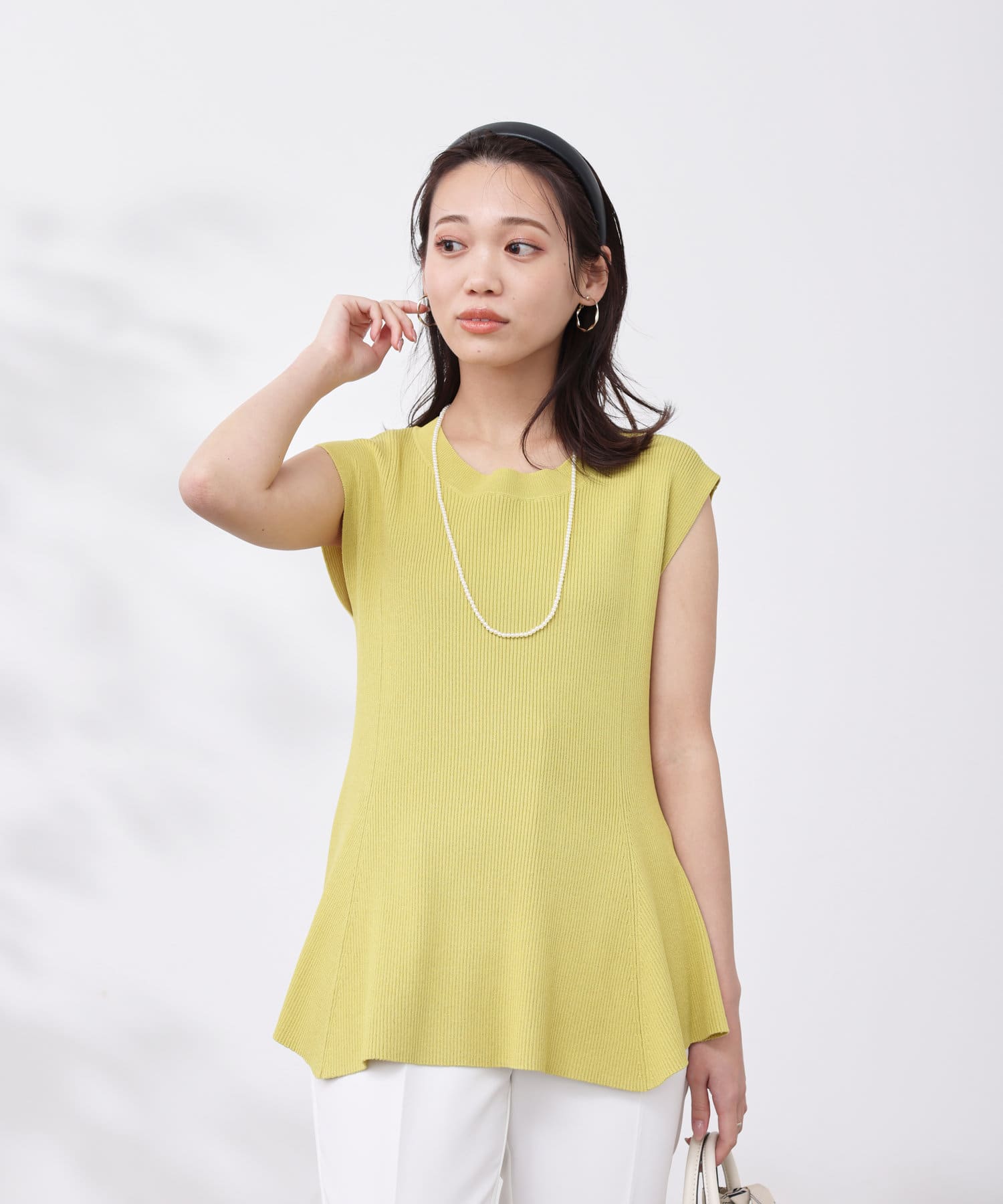 すっきりと見せてくれるリブの編立で、メリハリの着こなしに。