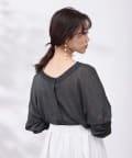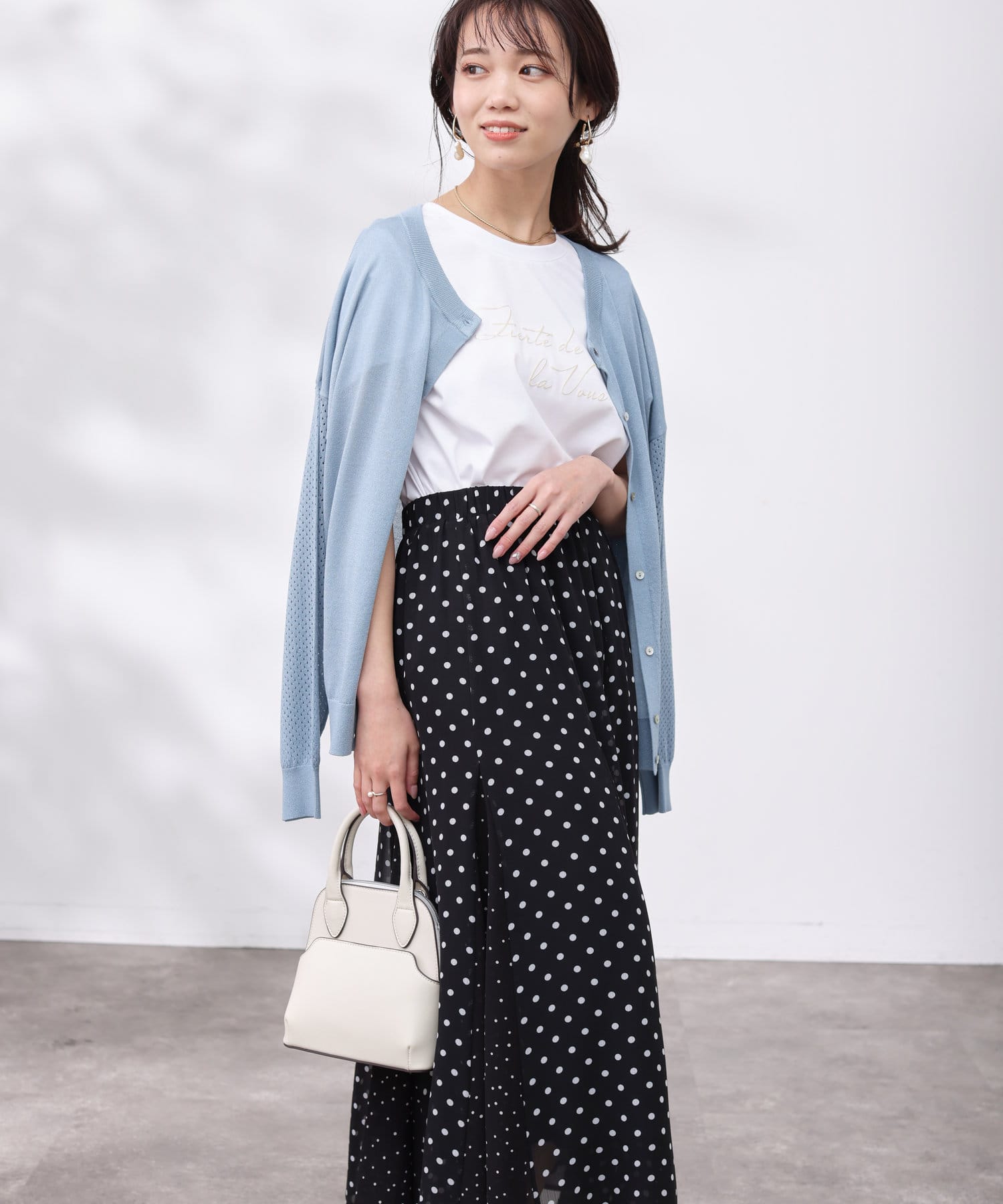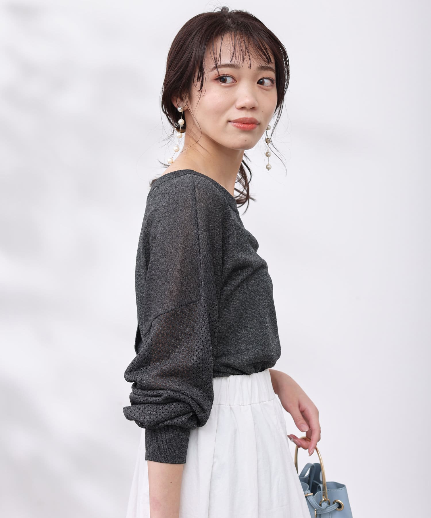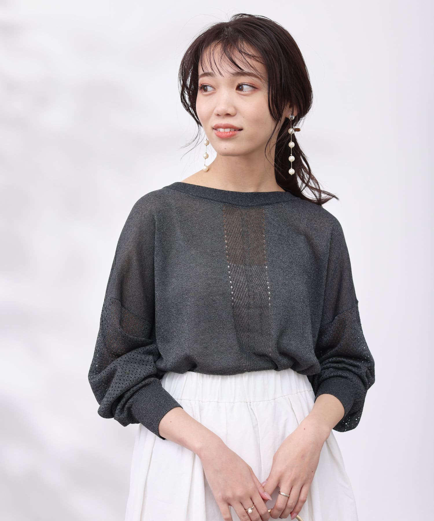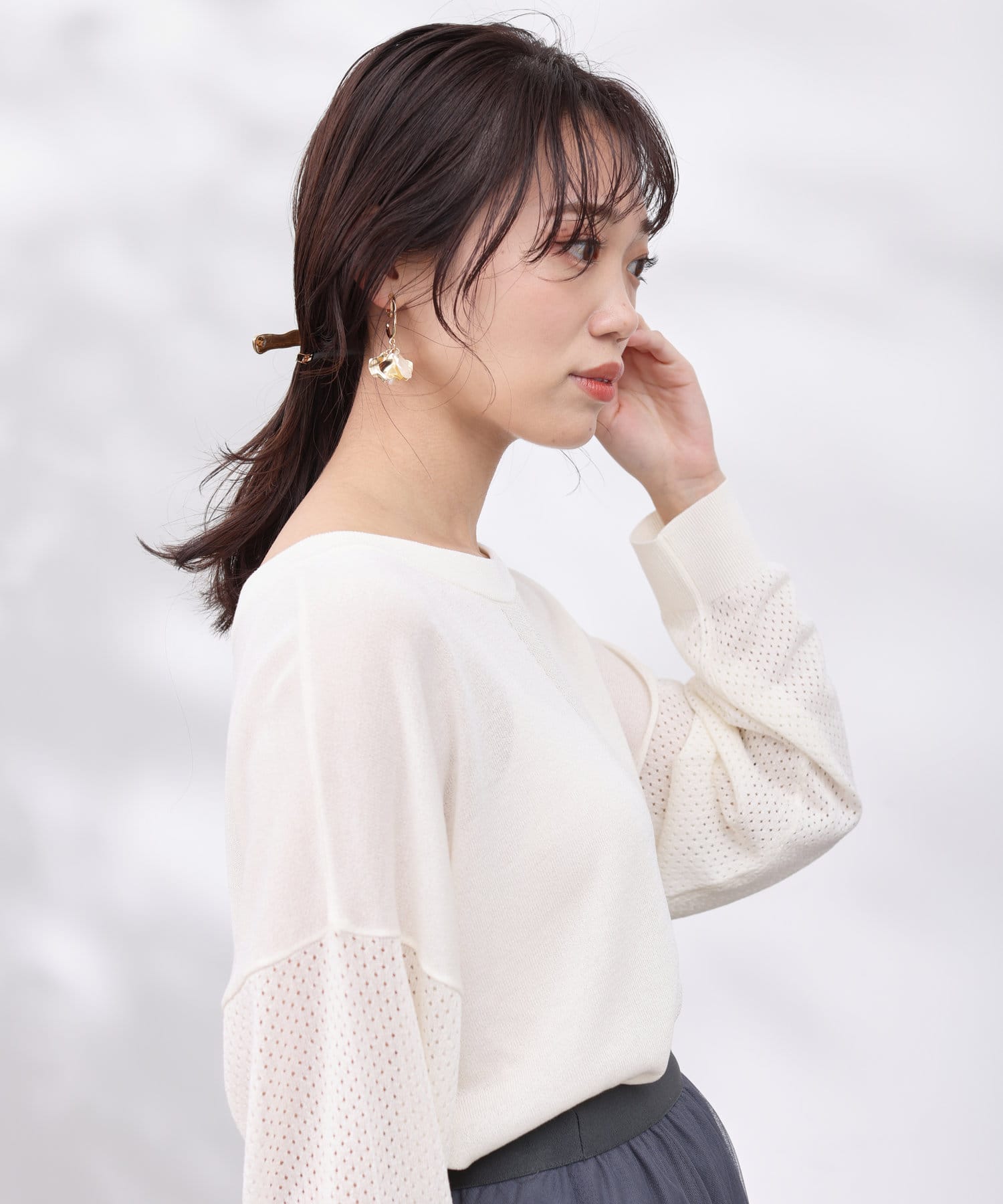 袖のアイレットデザインがポイントの薄手カーディガン。