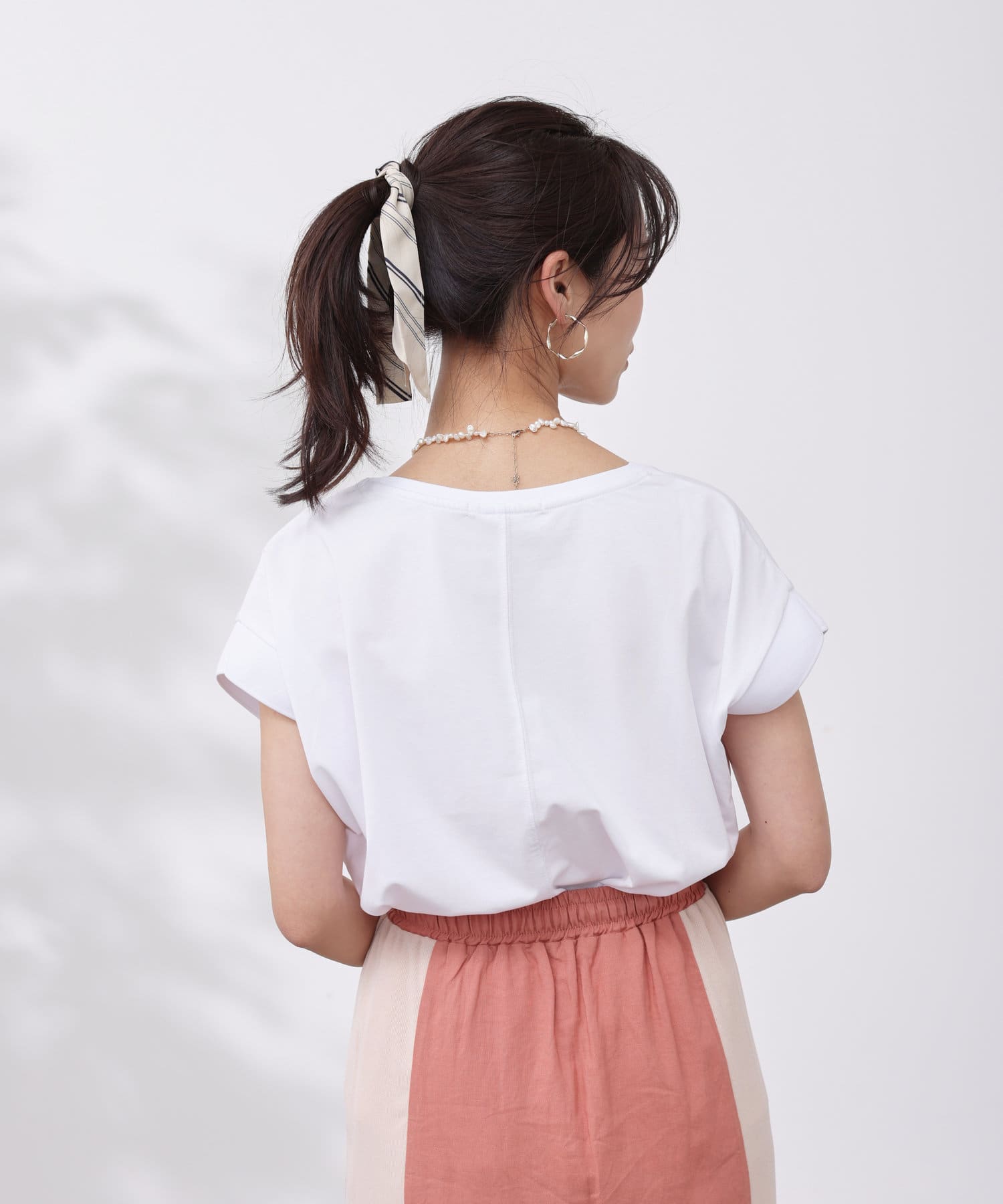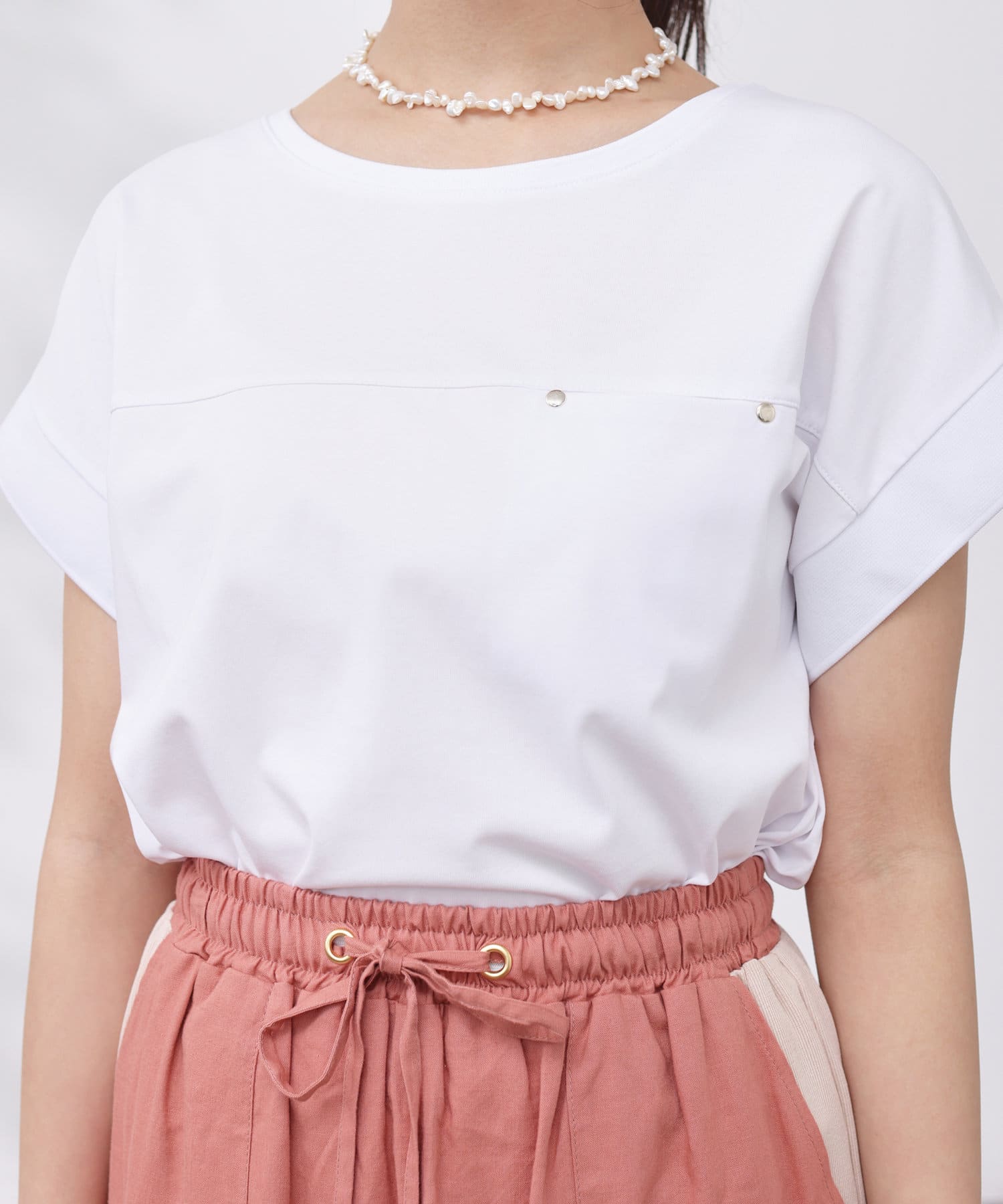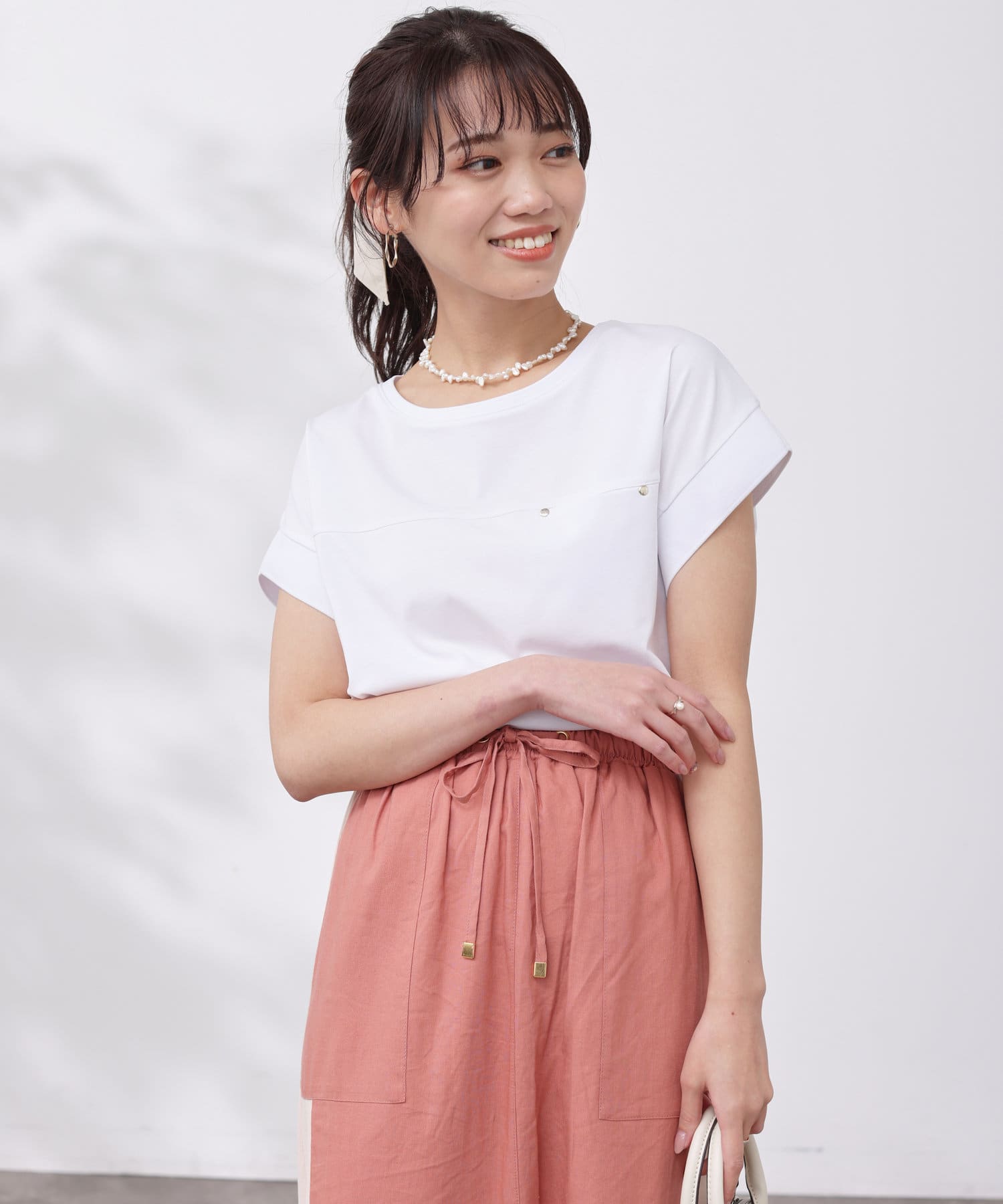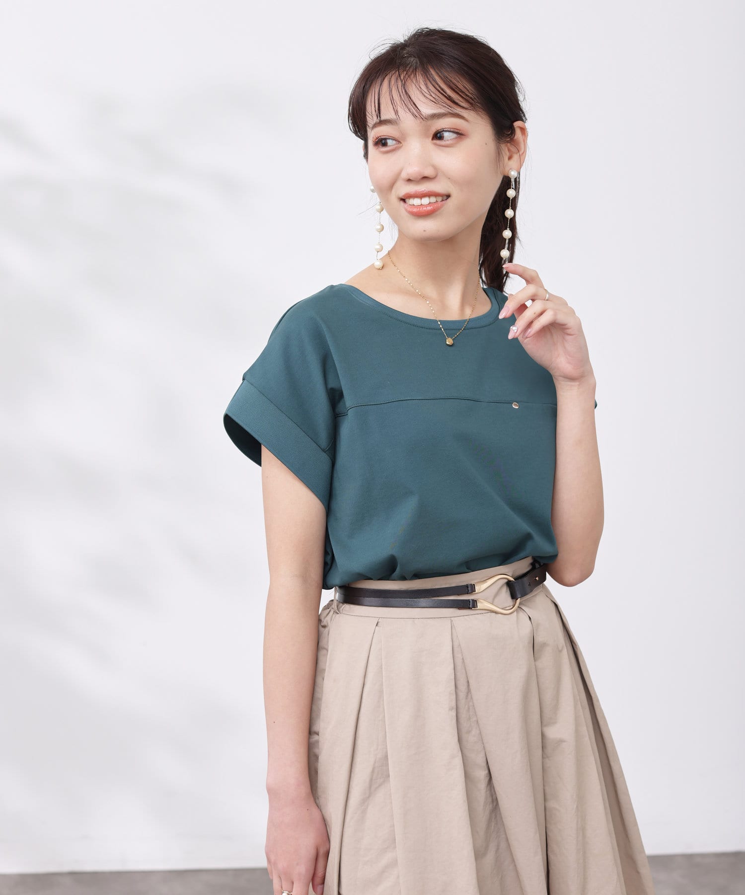 TOP > Chez toi > レディース > トップス > Tシャツ/カットソー > 機能素材リブ切替フレンチT