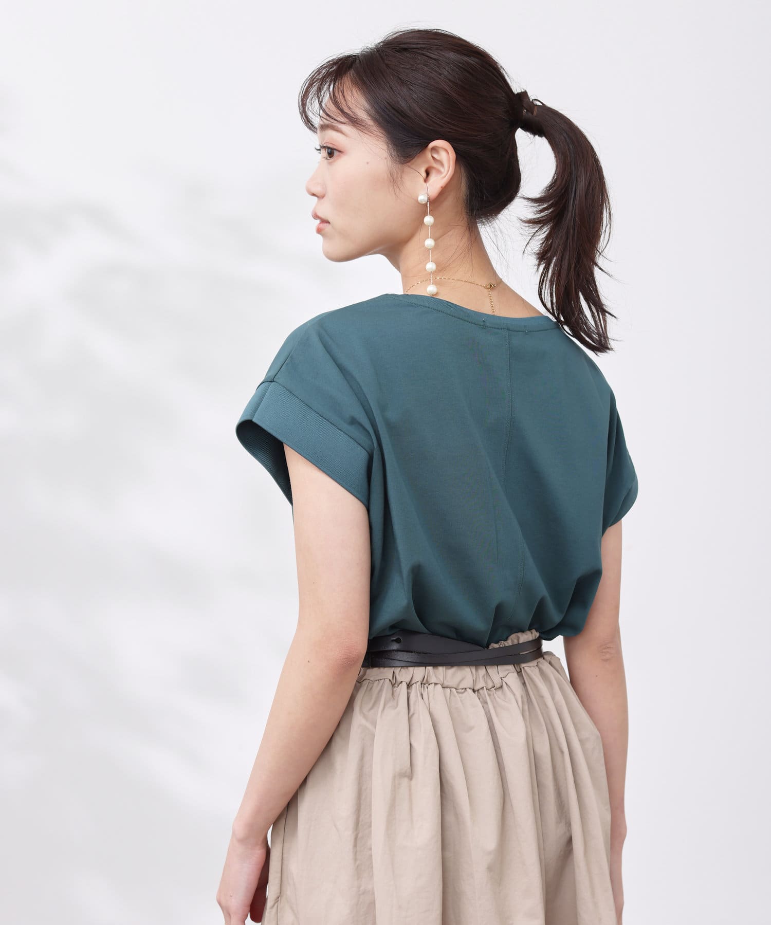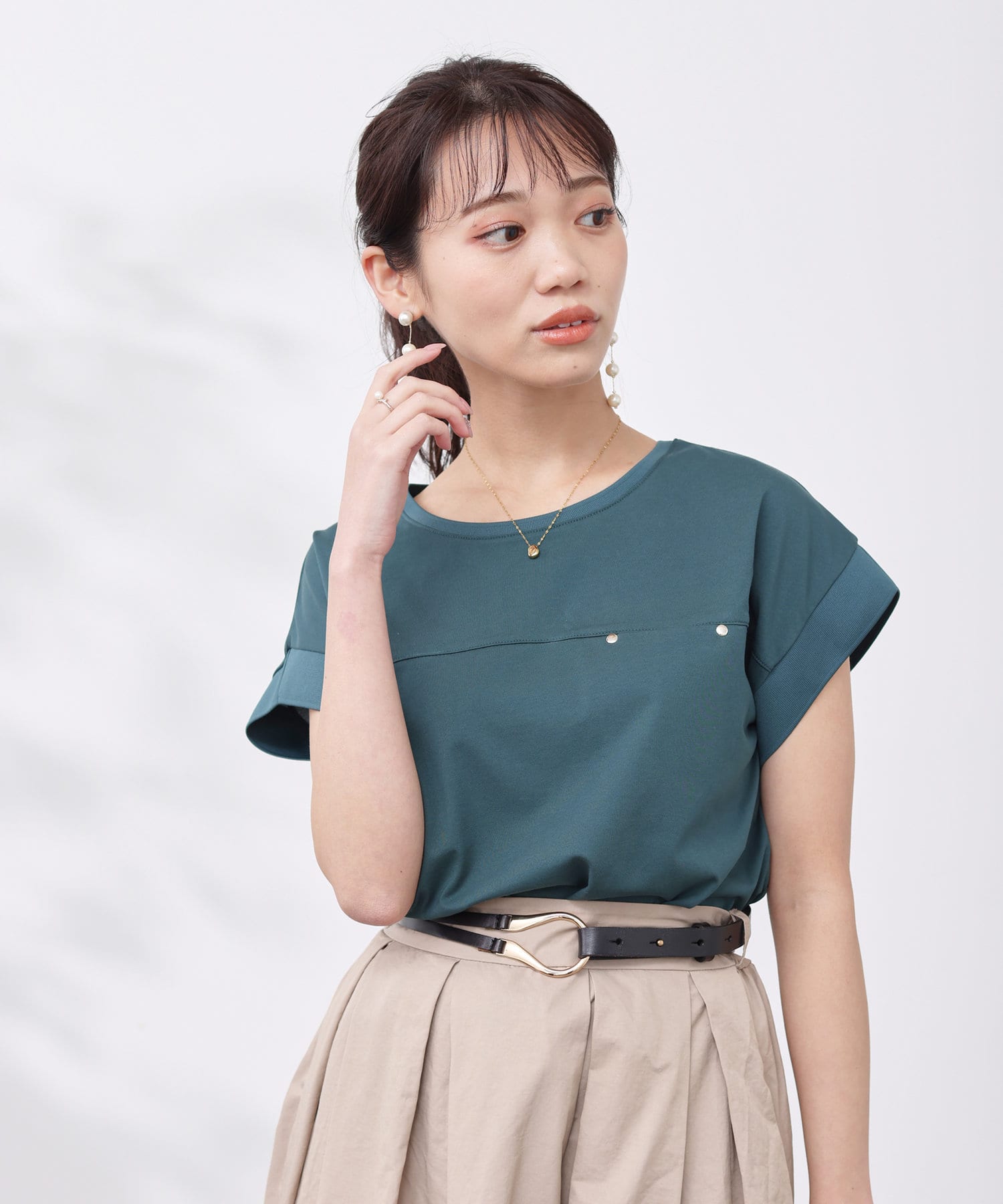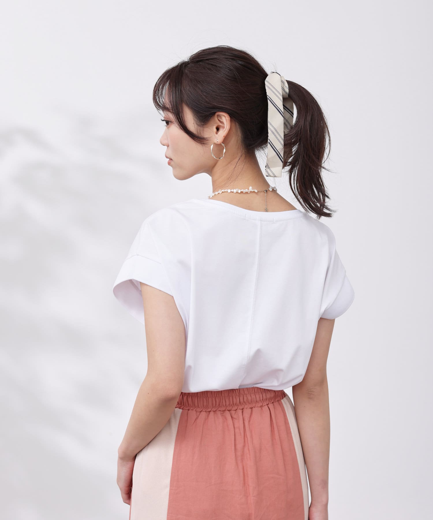 TOP > Chez toi > レディース > トップス > Tシャツ/カットソー > 機能素材リブ切替フレンチT