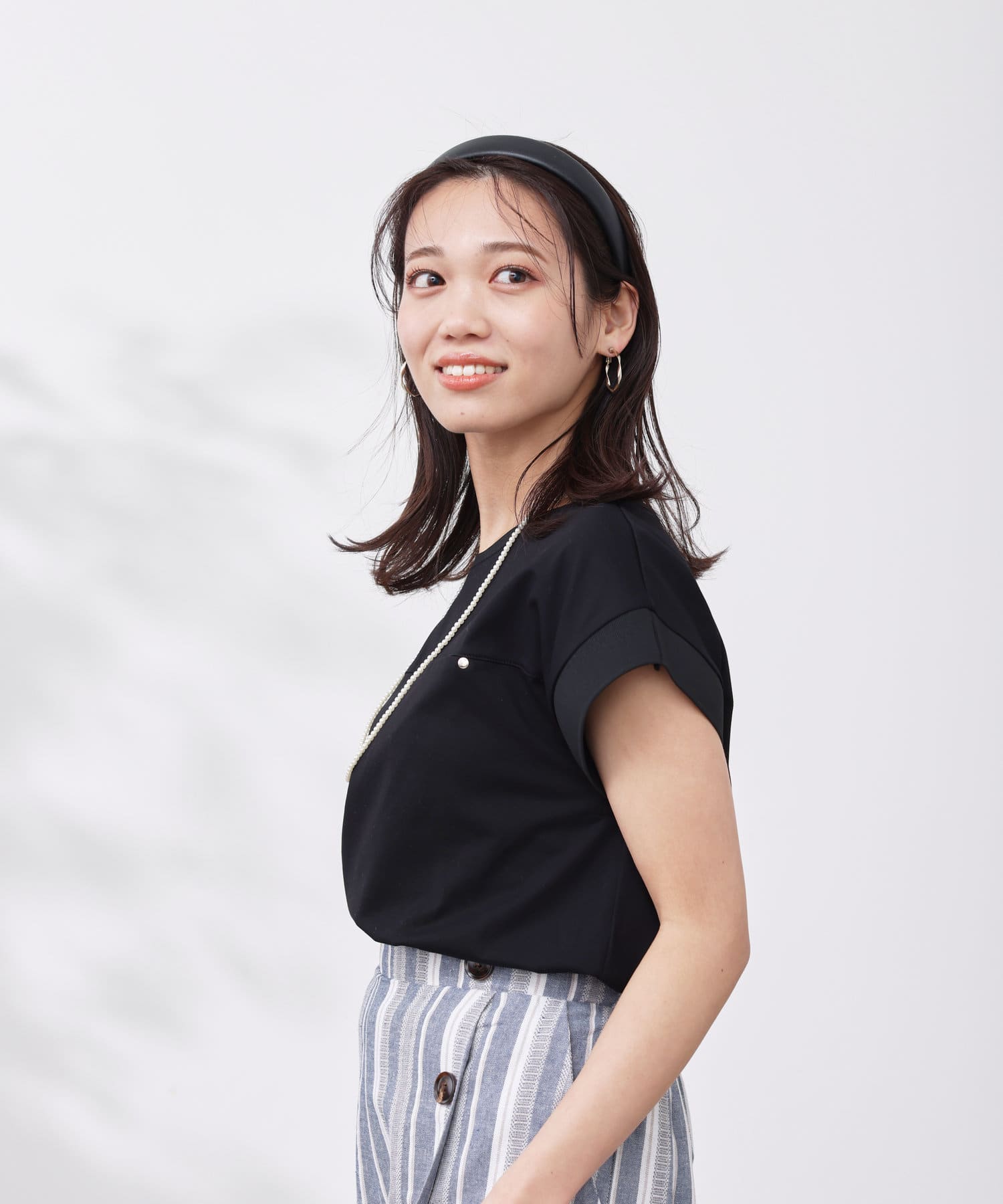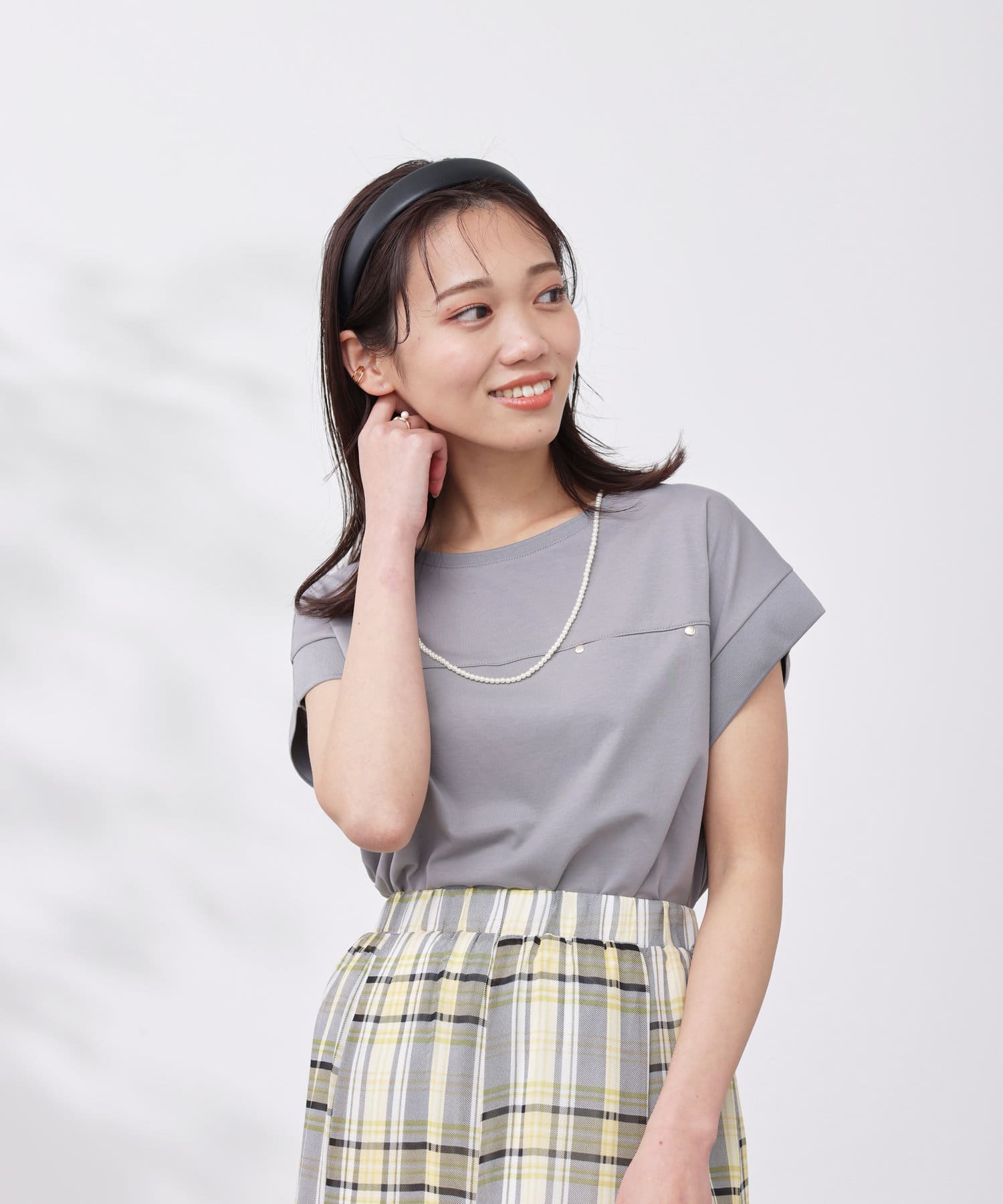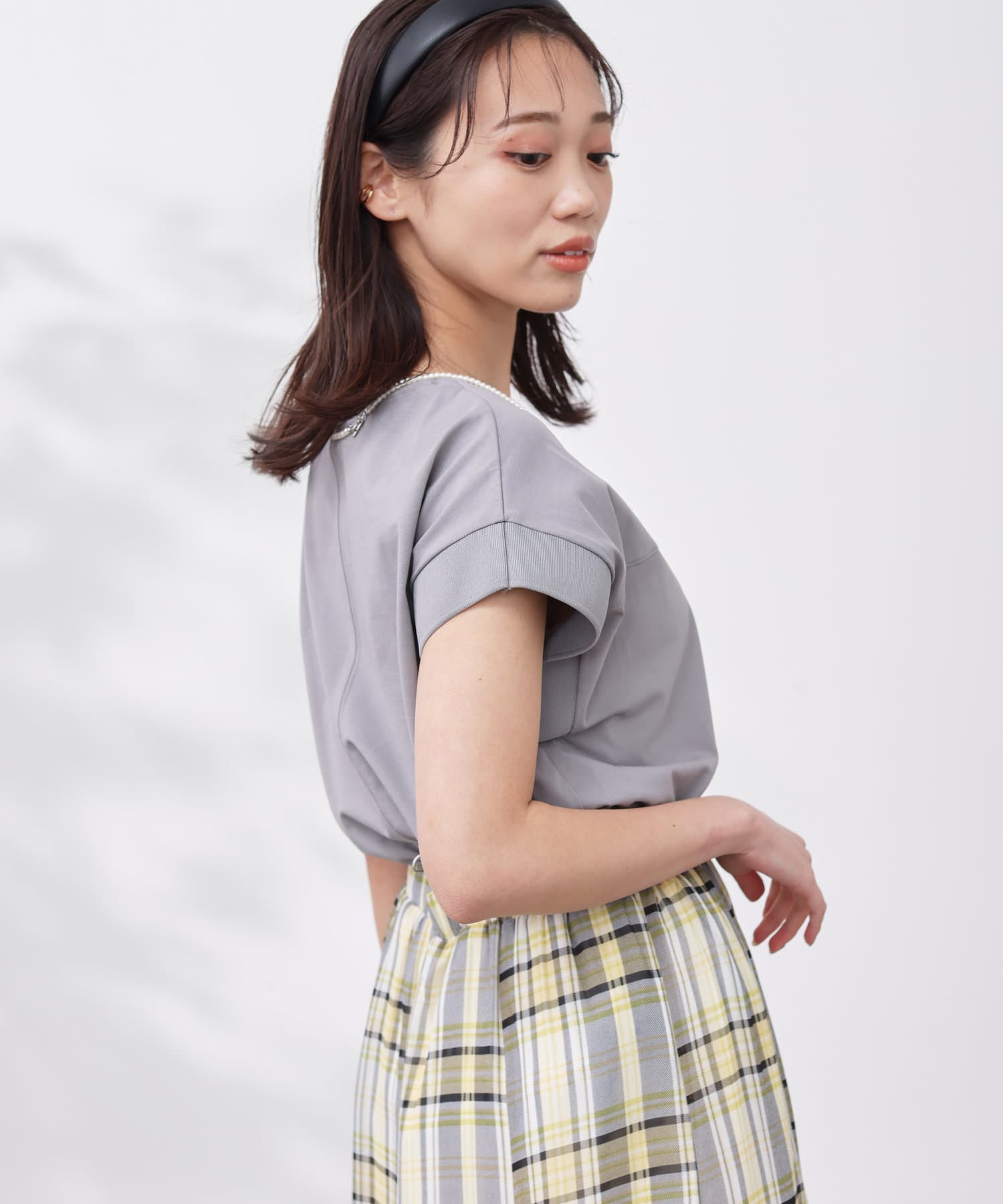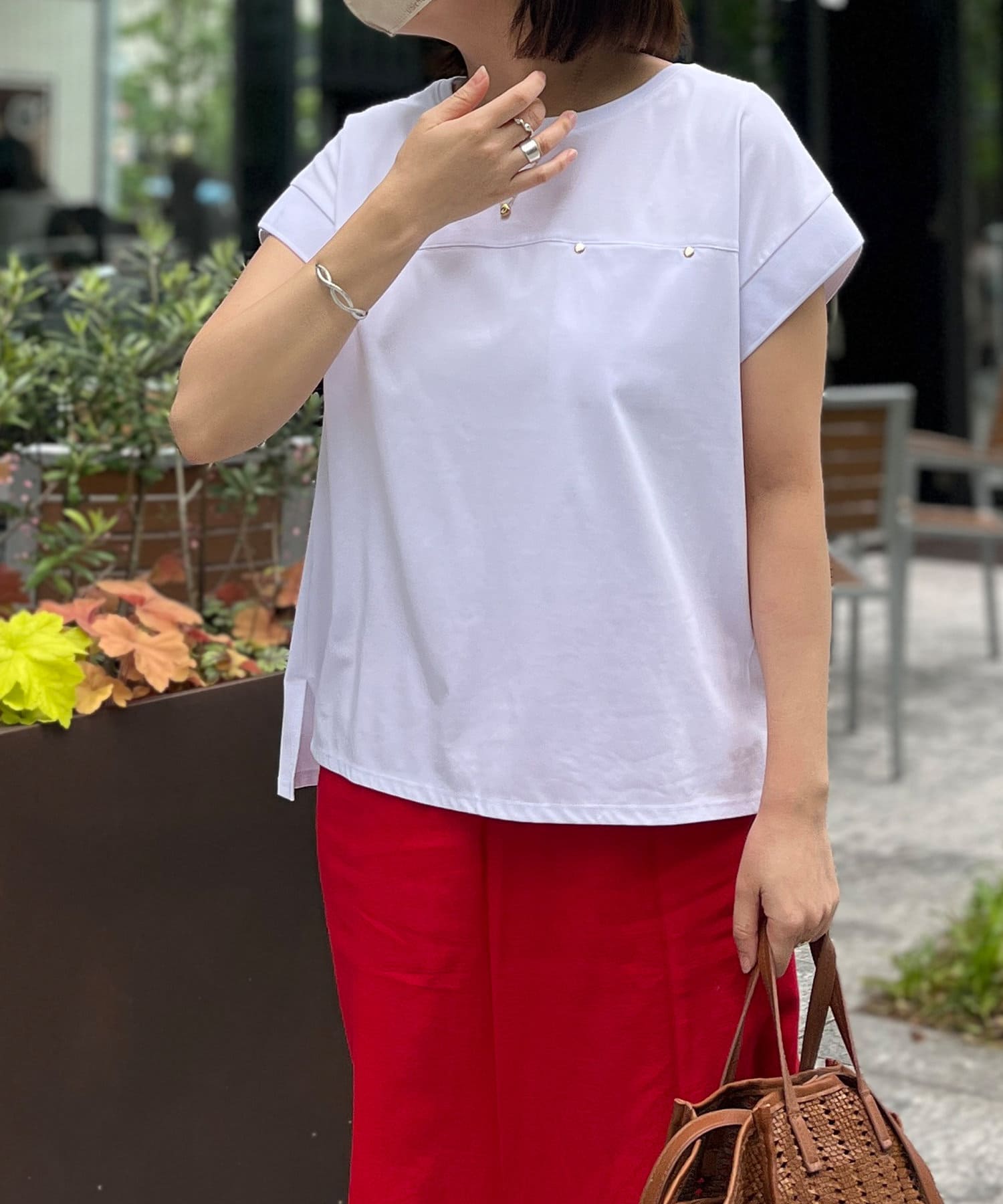 TOP > Chez toi > レディース > トップス > Tシャツ/カットソー > 機能素材リブ切替フレンチT