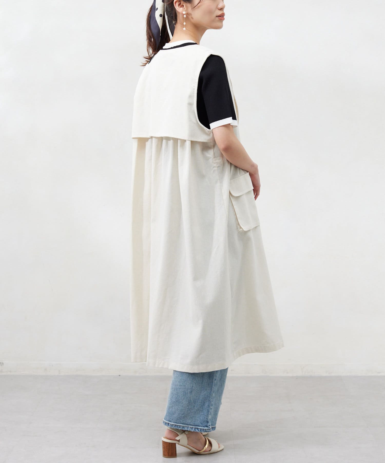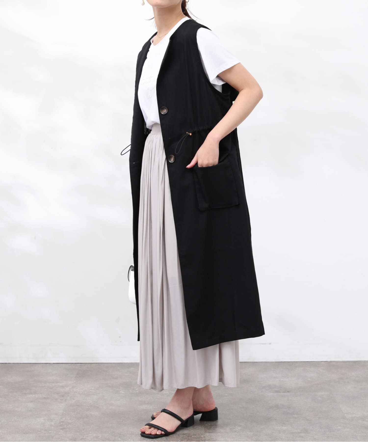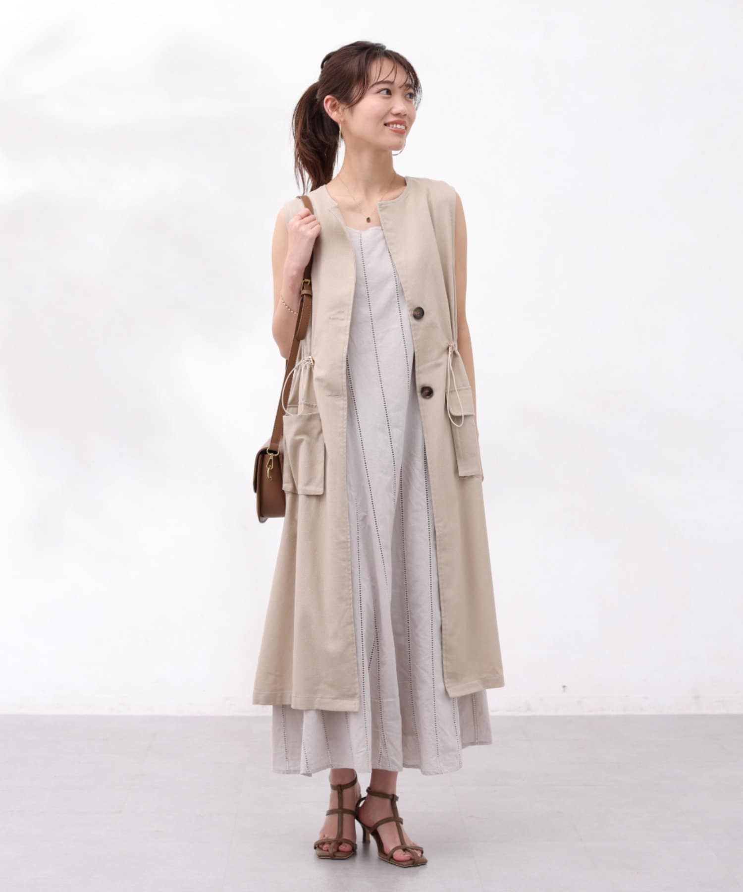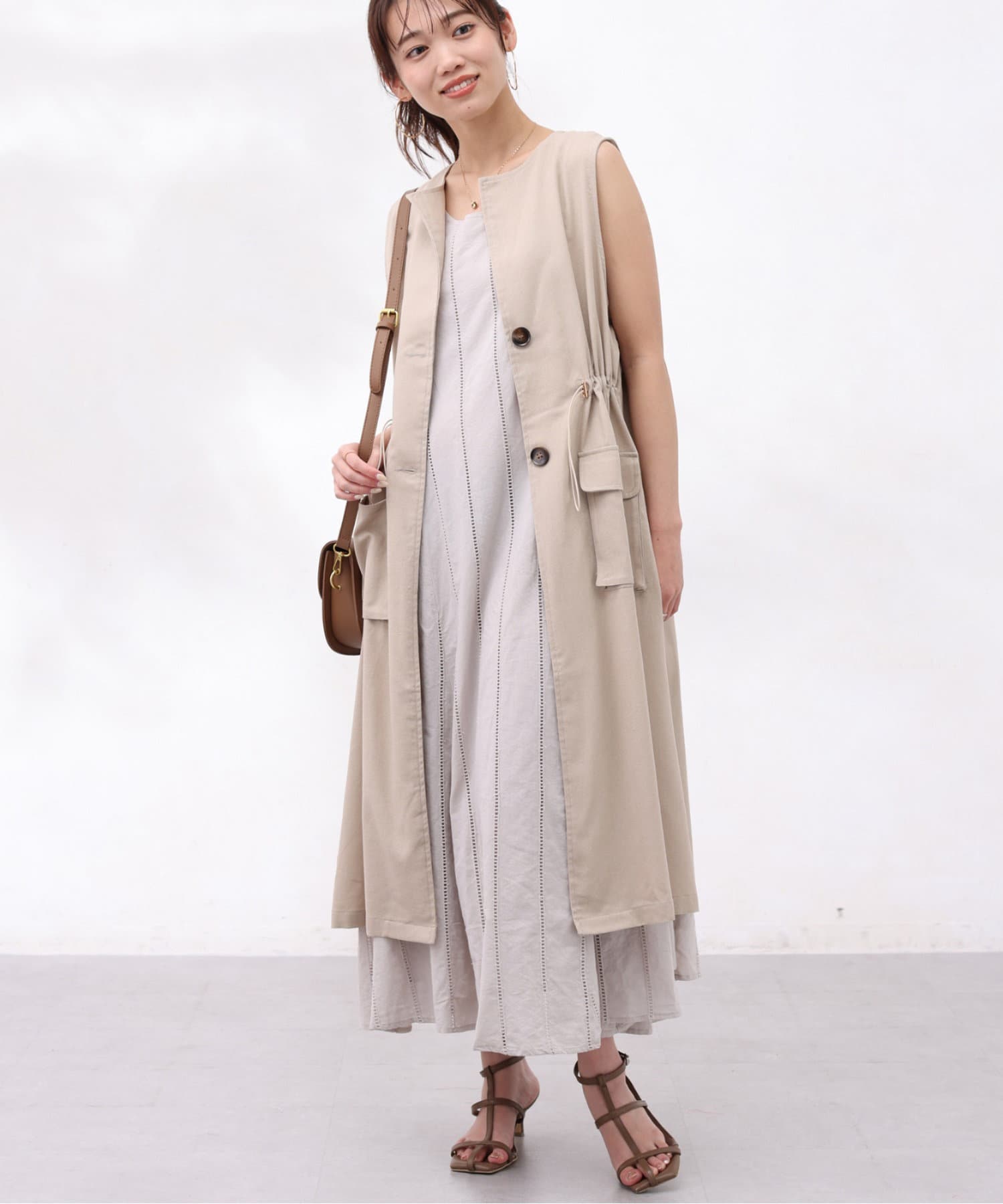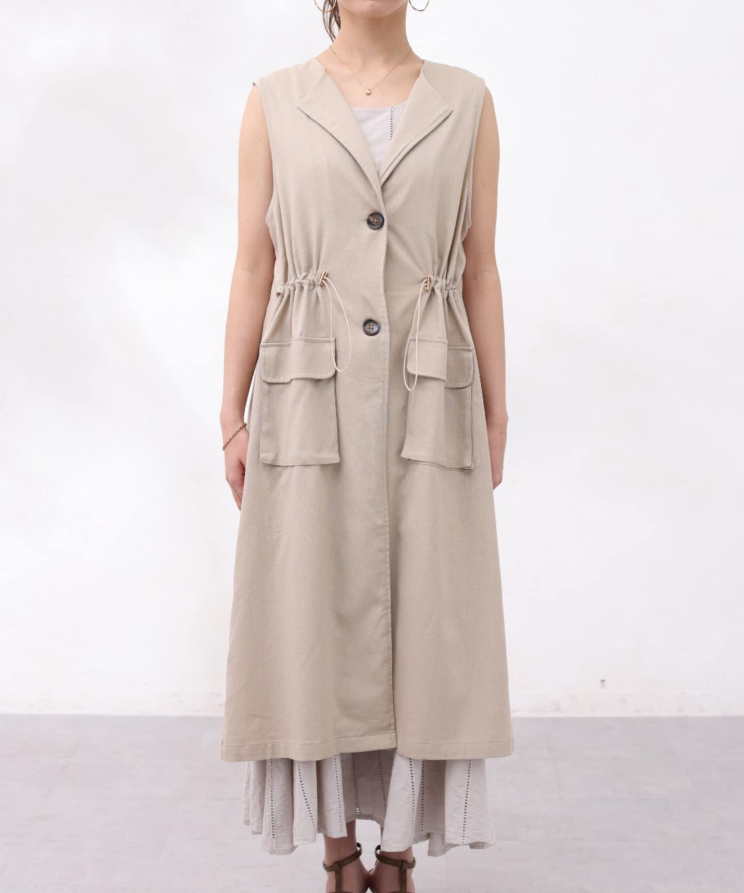 綿麻素材の軽やかな生地感とロング丈がこなれた雰囲気を演出してくれるロングジレコート。