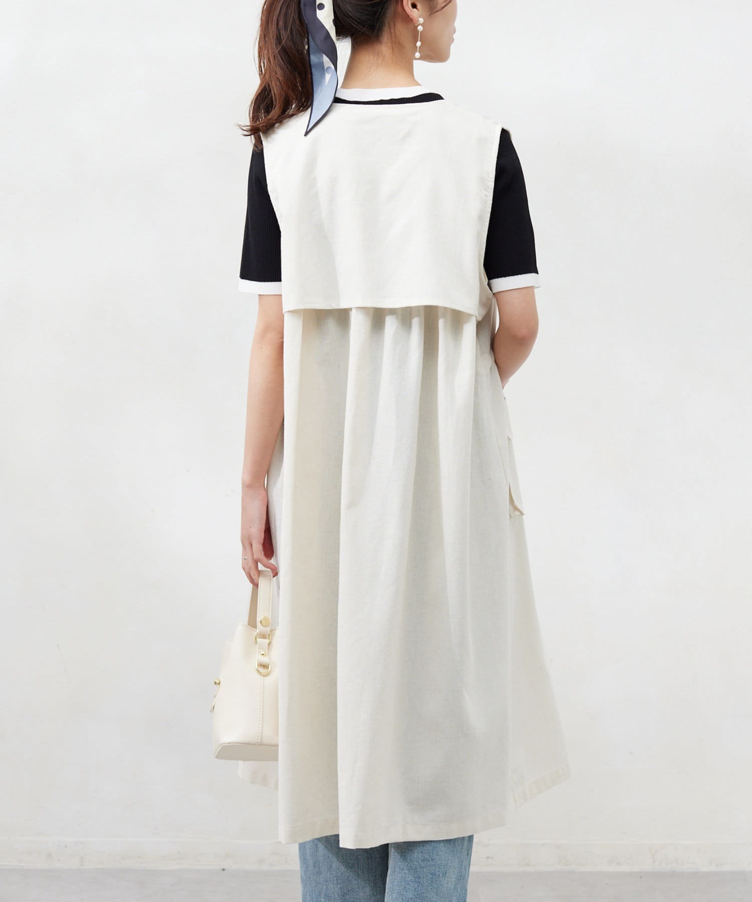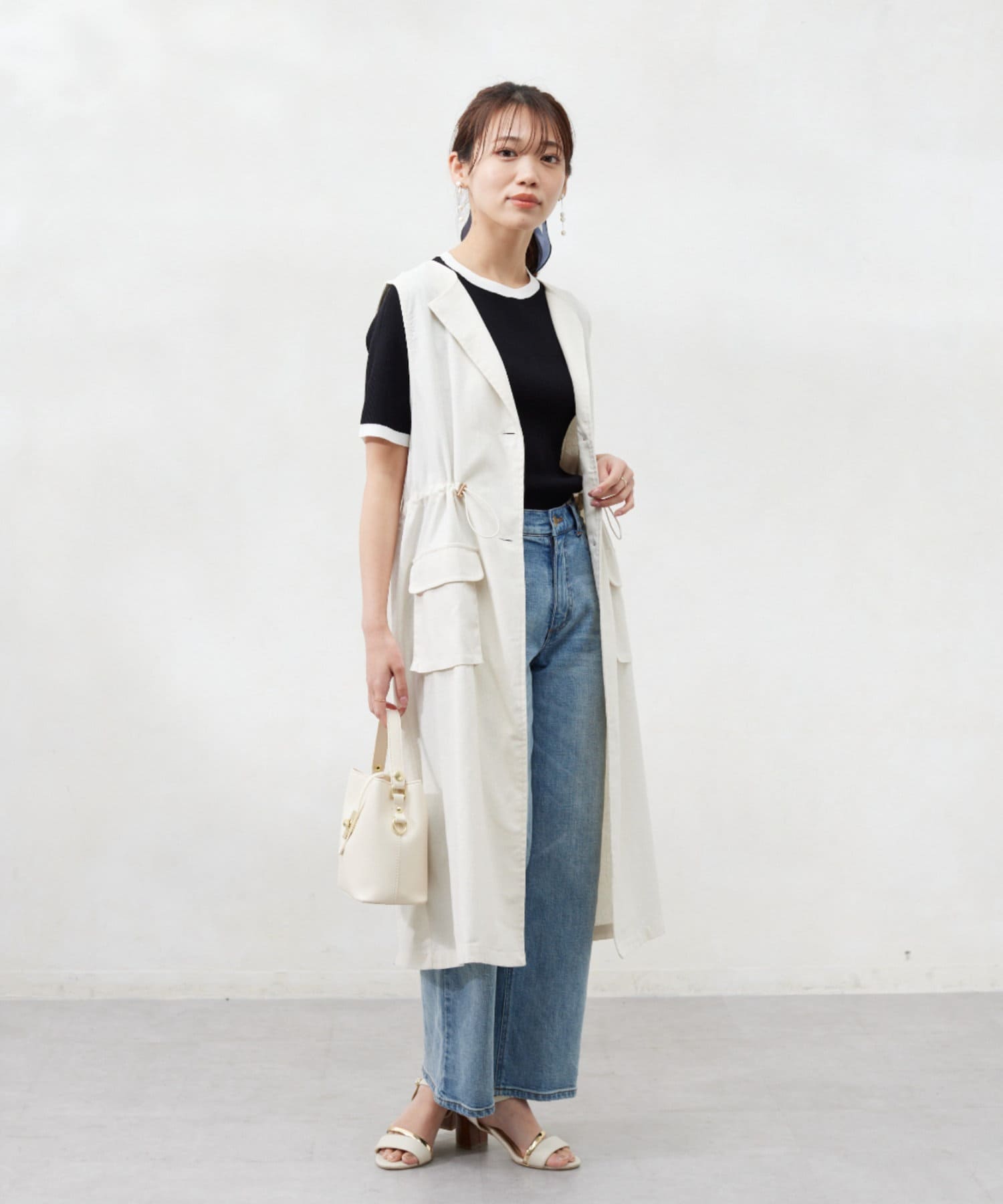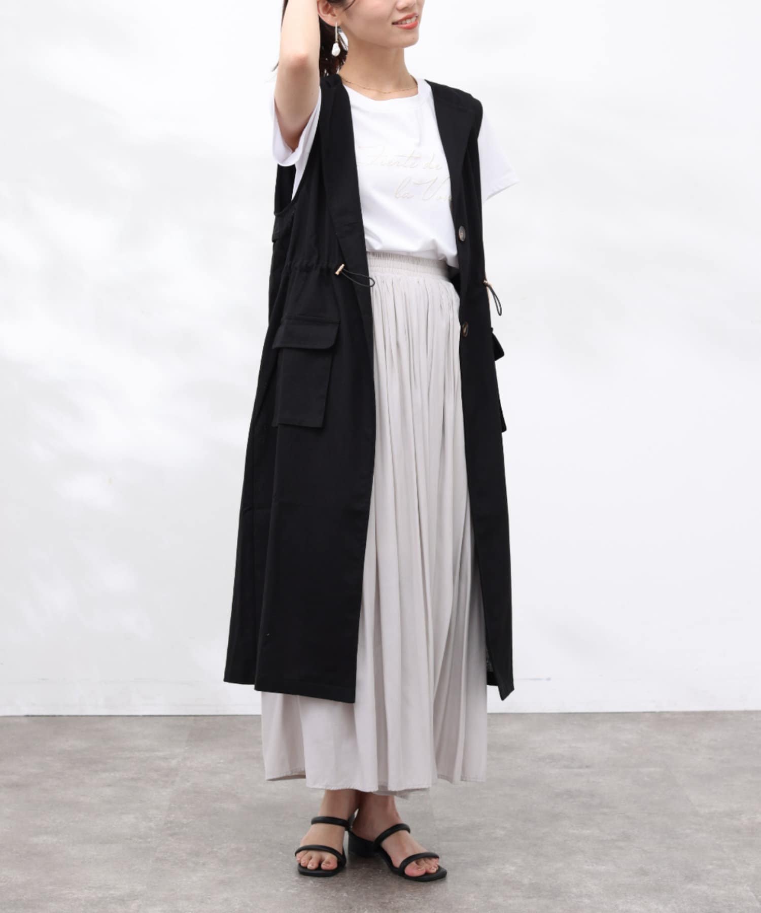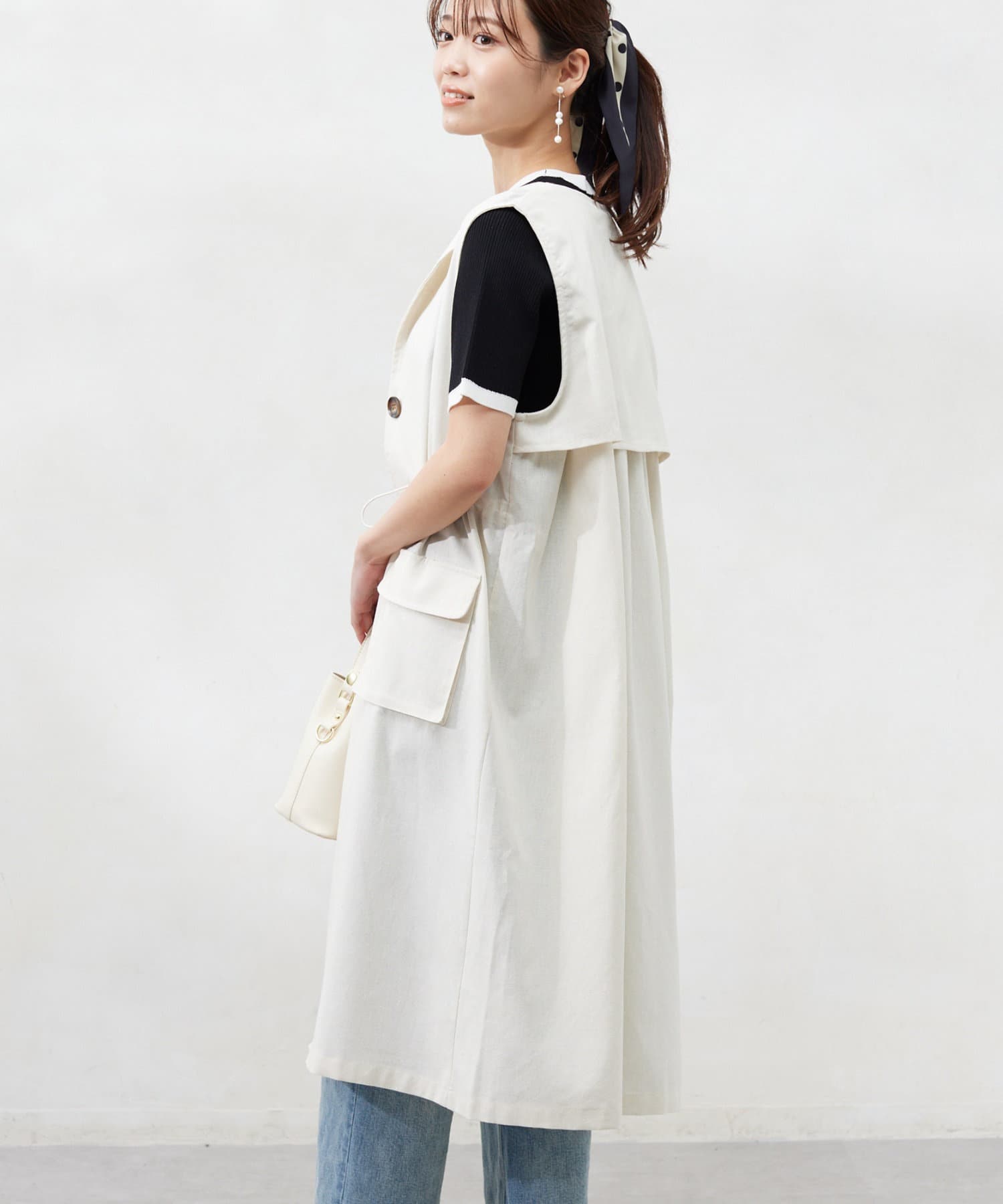 綿麻素材の軽やかな生地感とロング丈がこなれた雰囲気を演出してくれるロングジレコート。