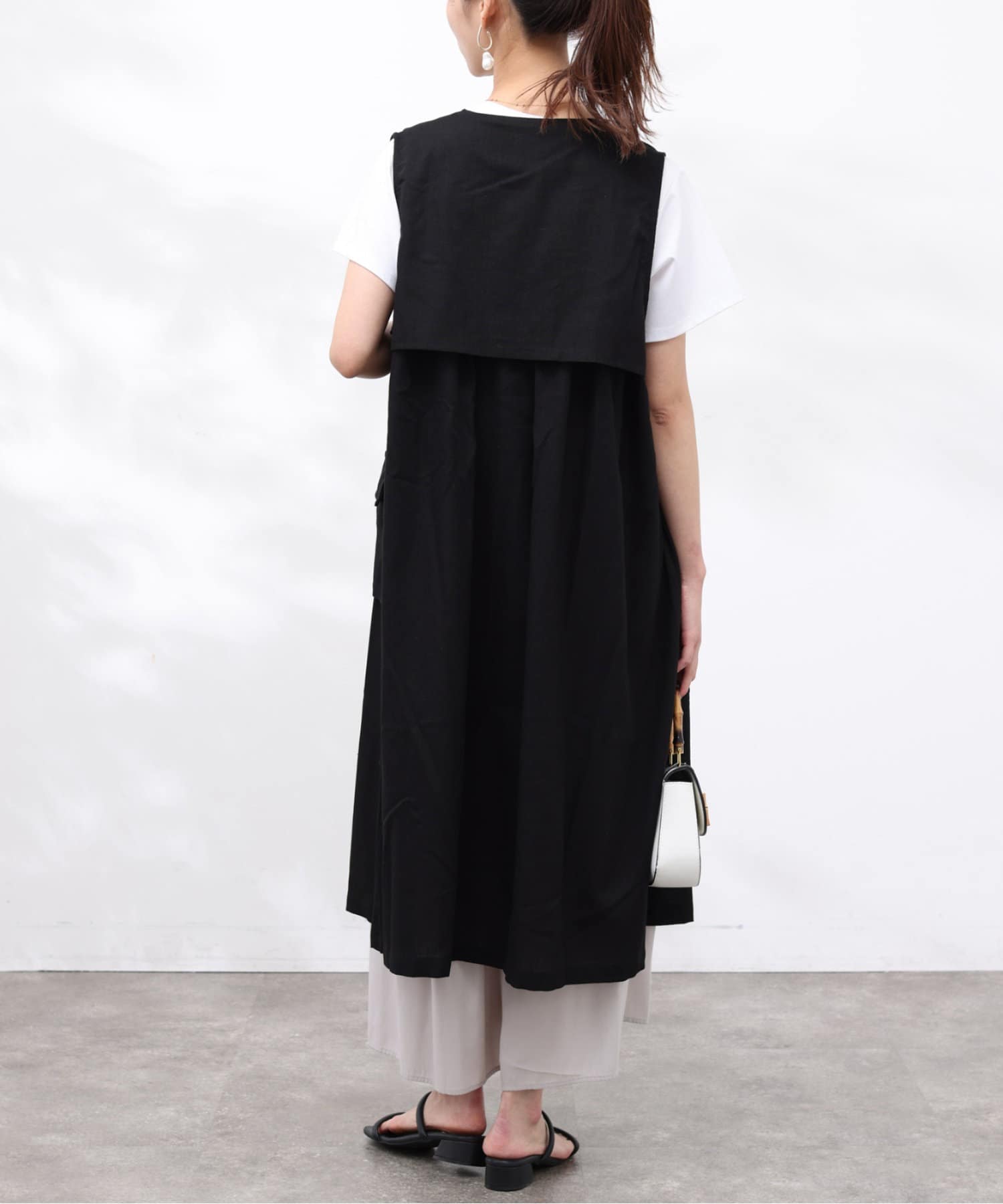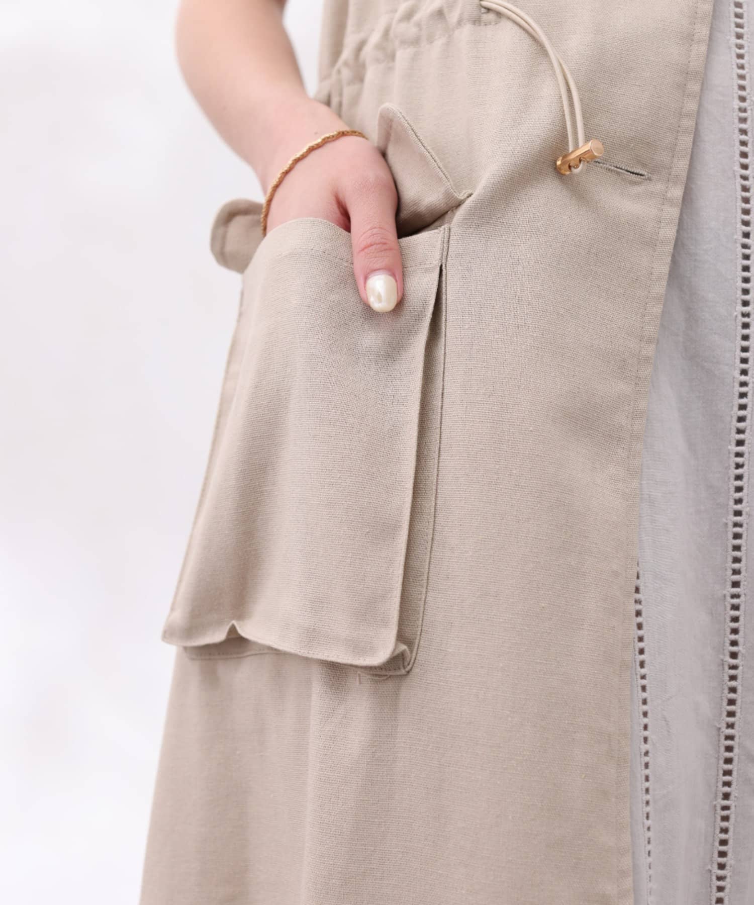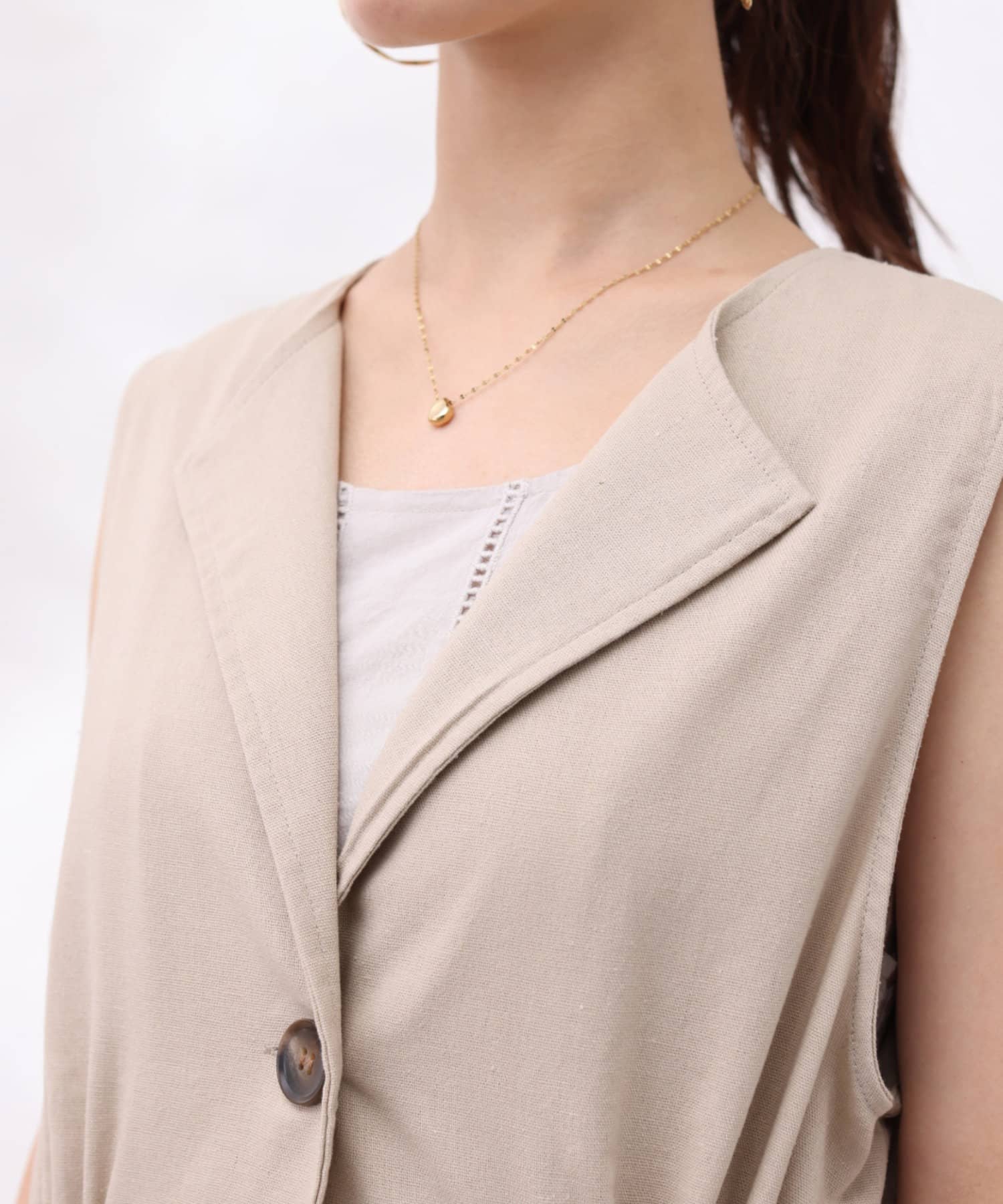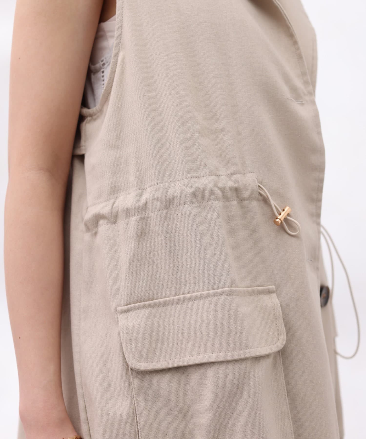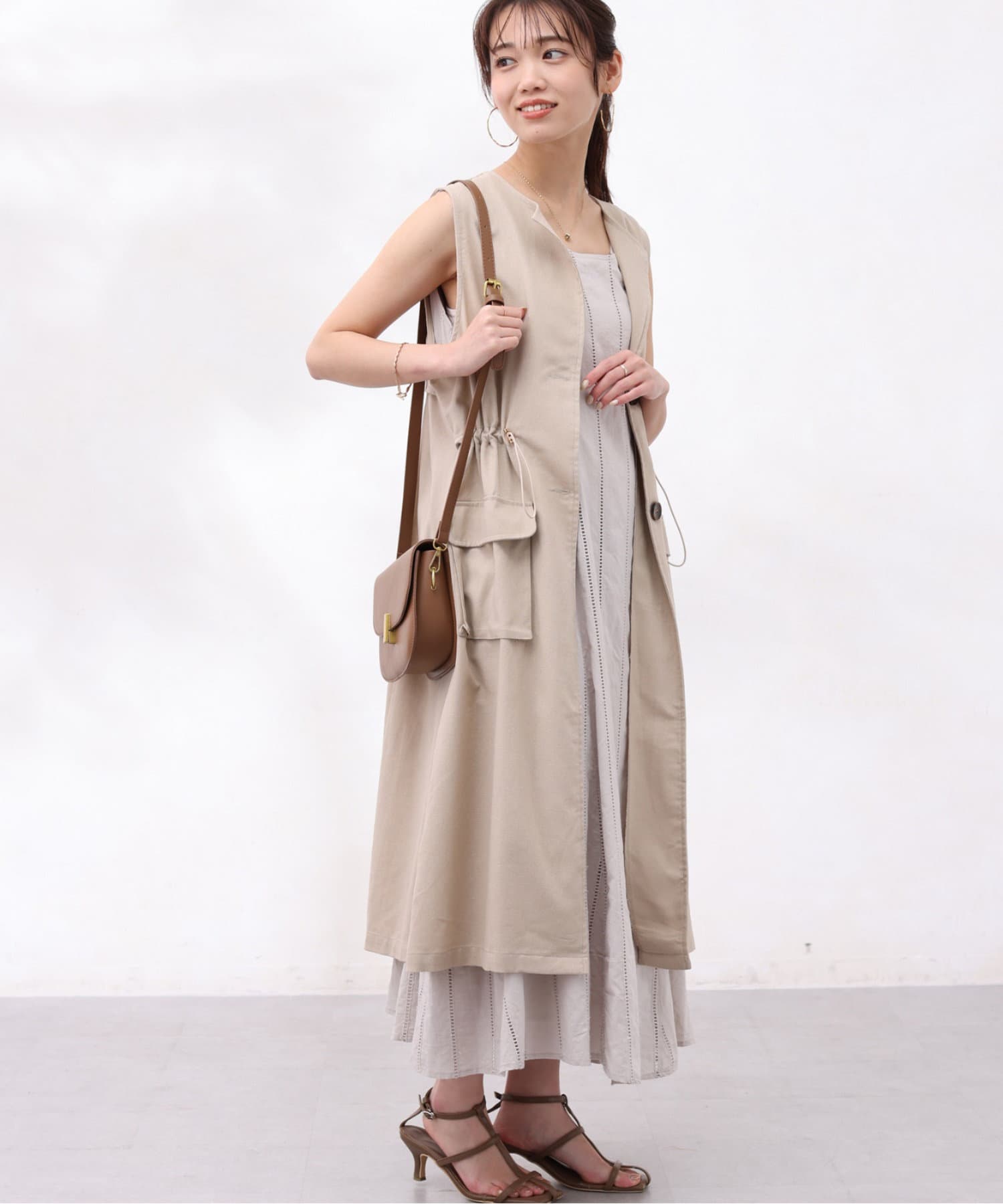 綿麻素材の軽やかな生地感とロング丈がこなれた雰囲気を演出してくれるロングジレコート。