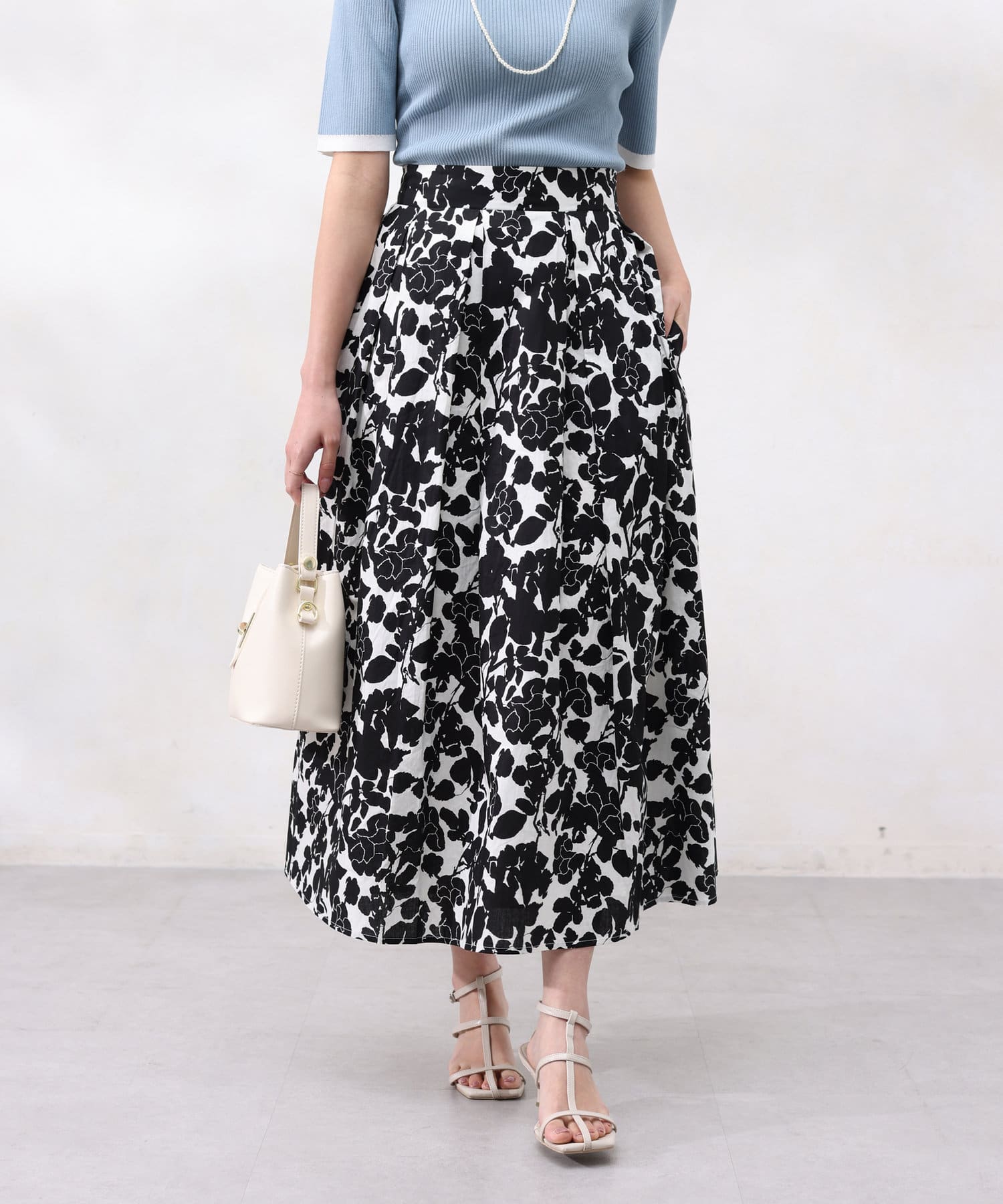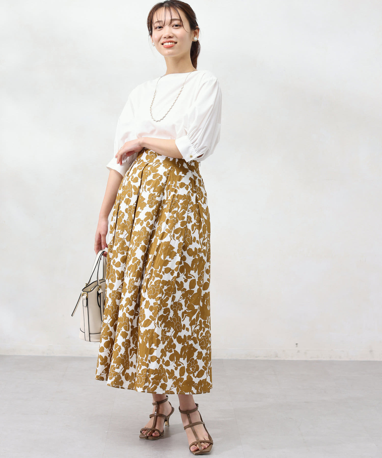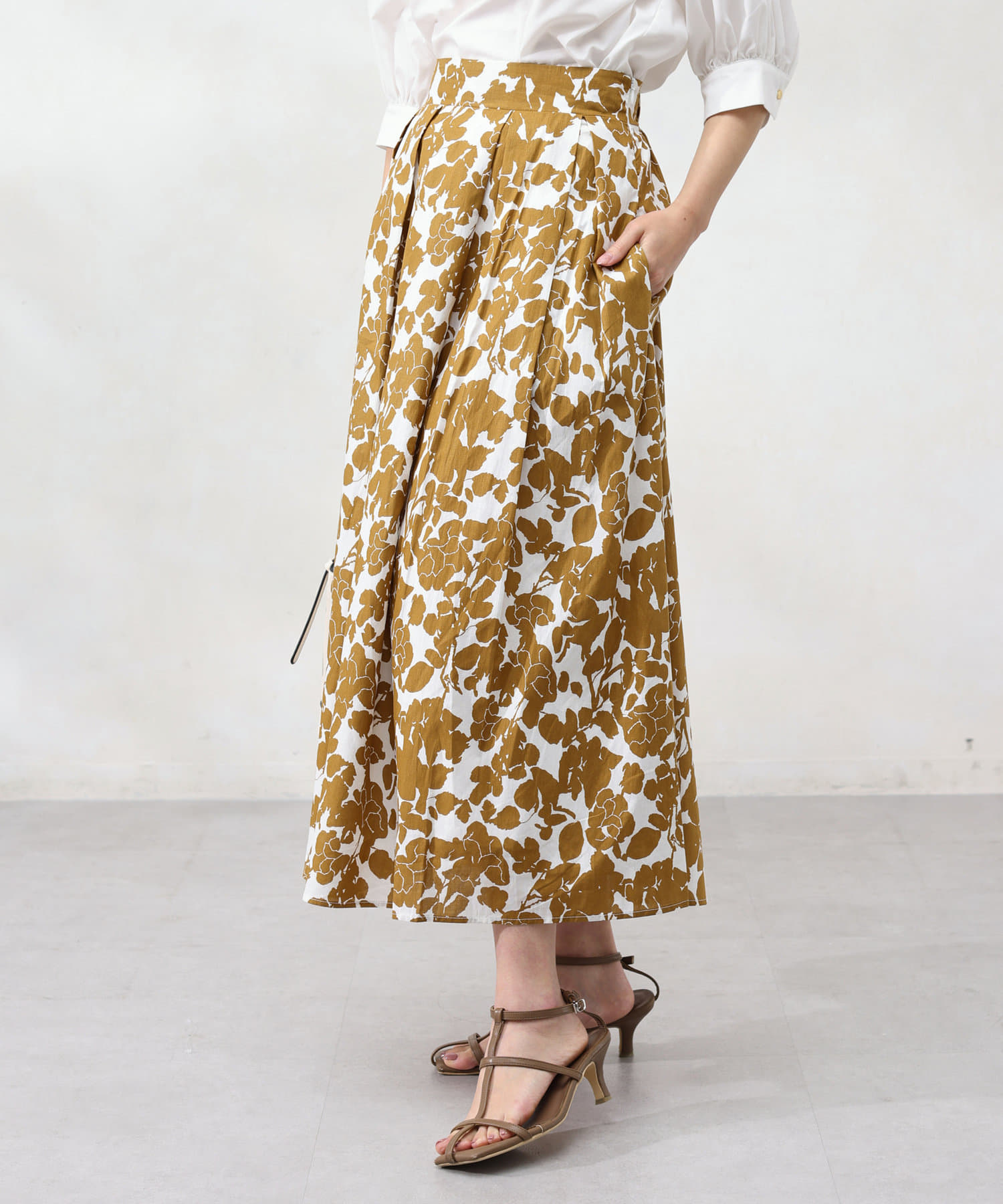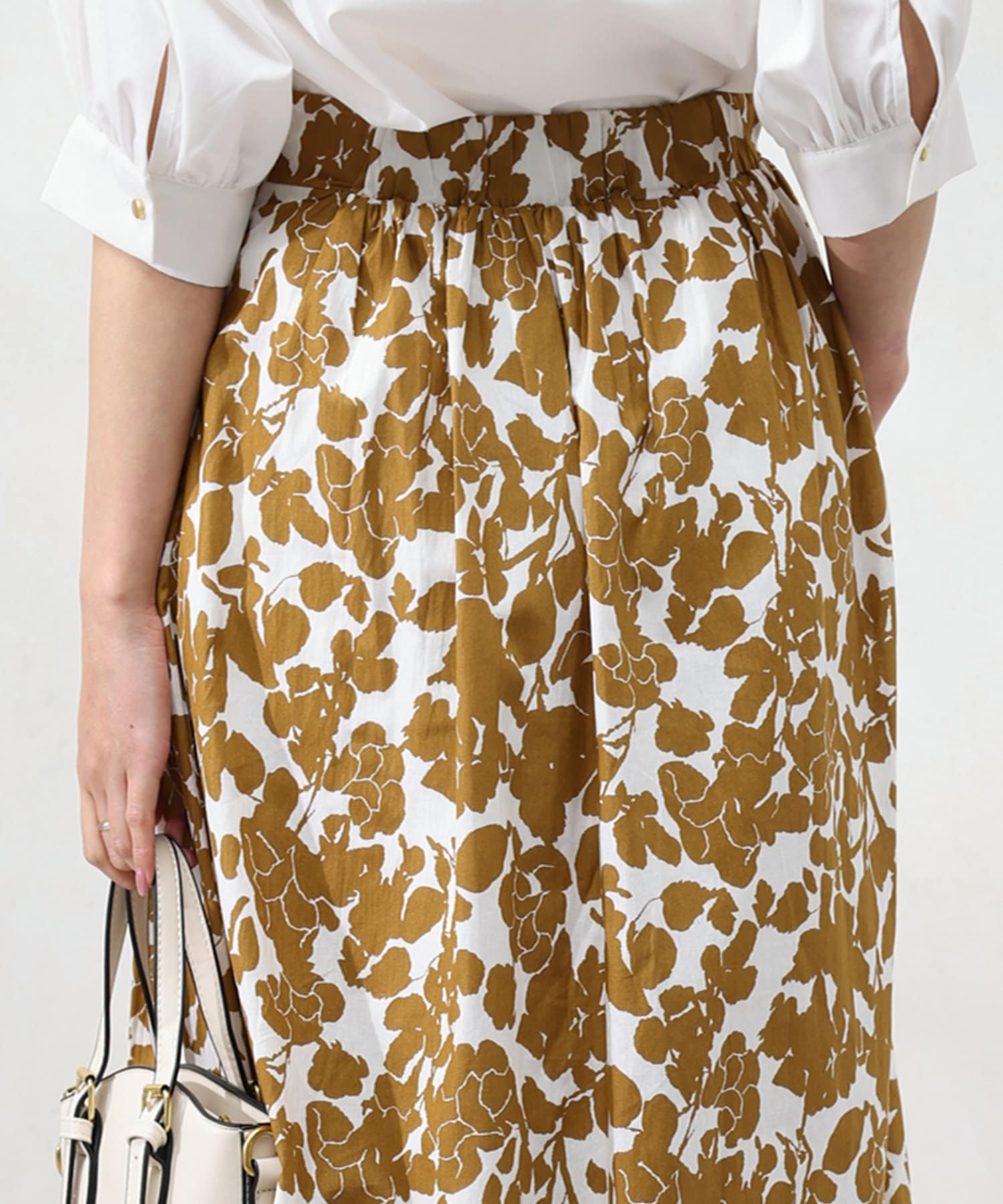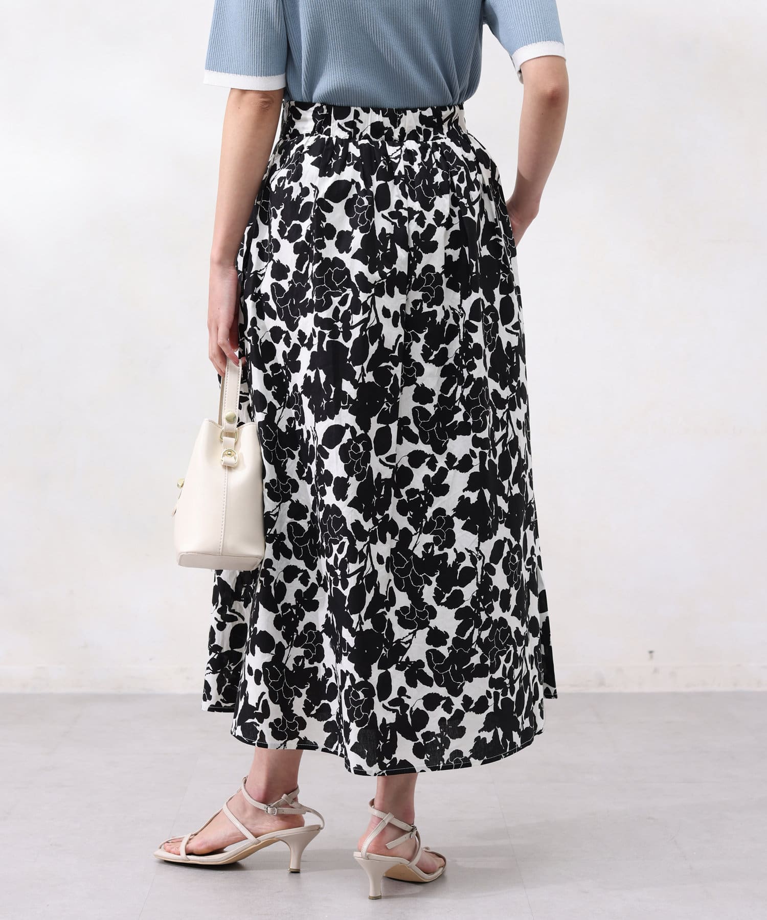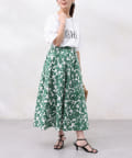目を惹く大判花柄ですが、落ち着いたカラー配色なので大人の余裕を感じさせるフレアスカートです。
