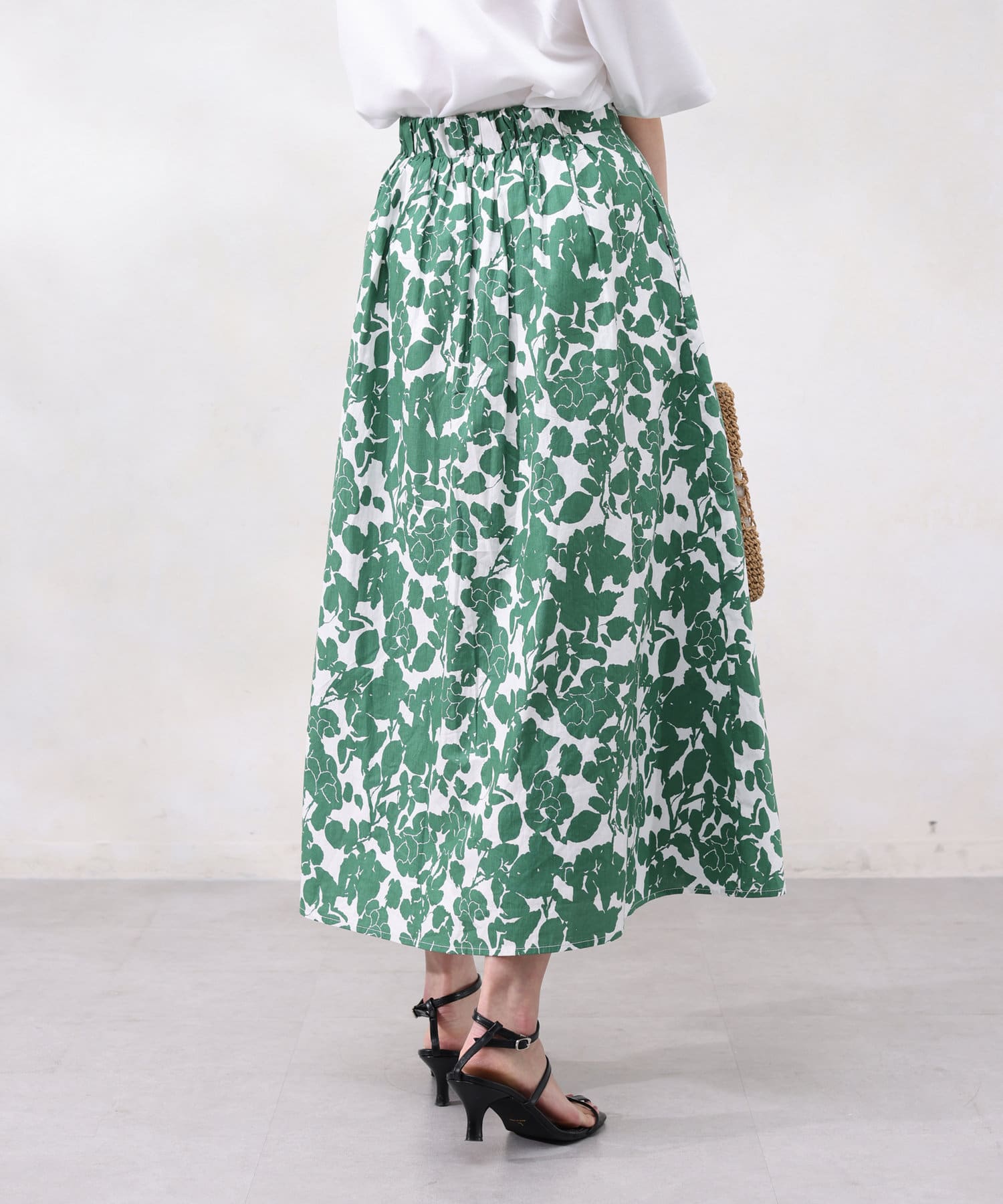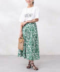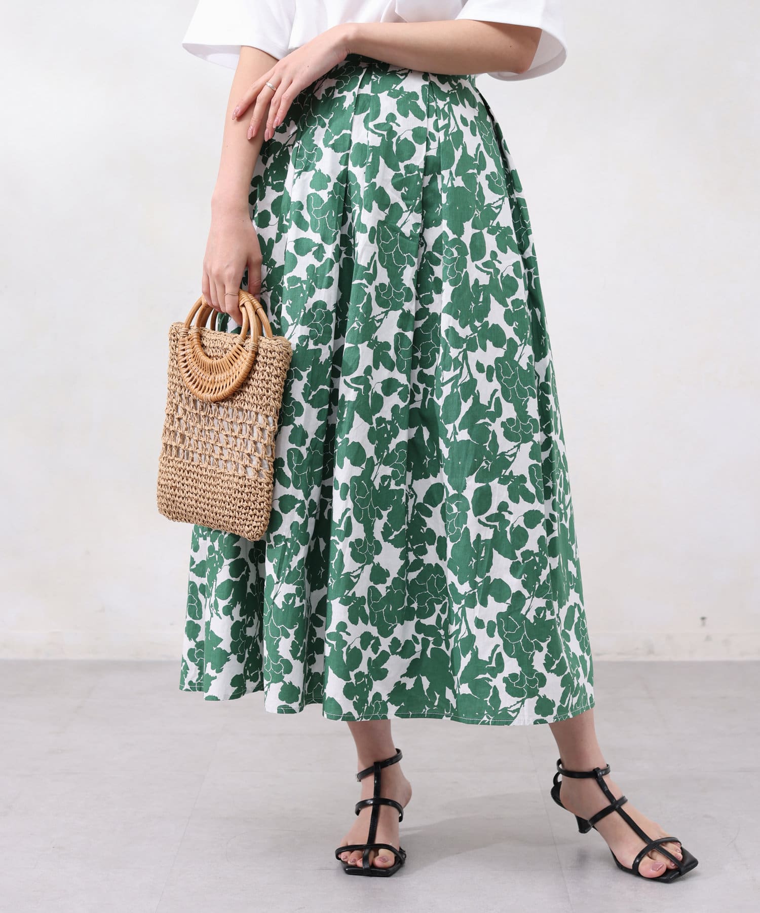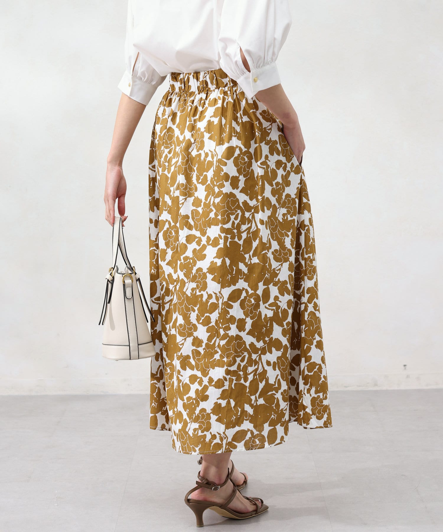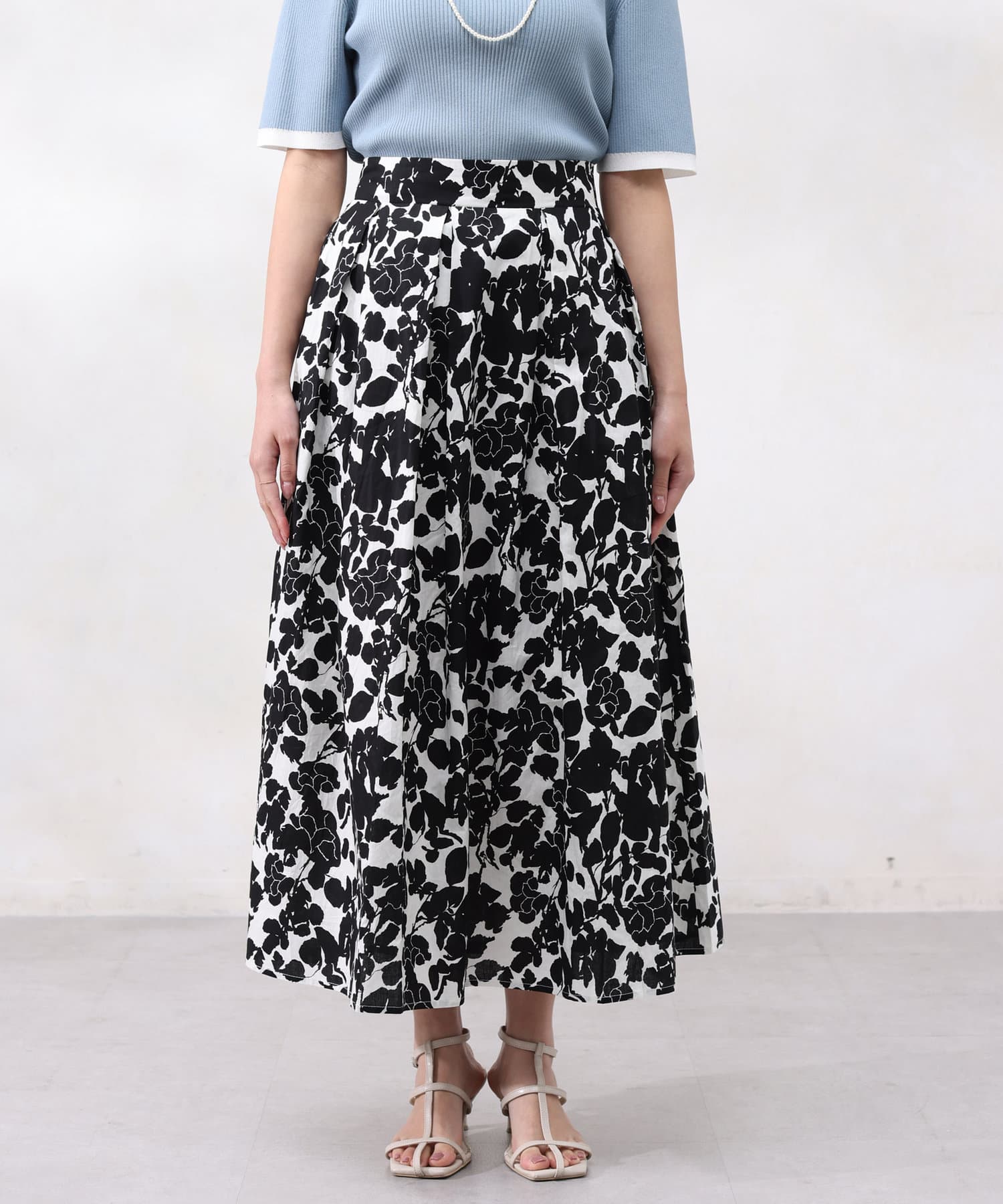 目を惹く大判花柄ですが、落ち着いたカラー配色なので大人の余裕を感じさせるフレアスカートです。