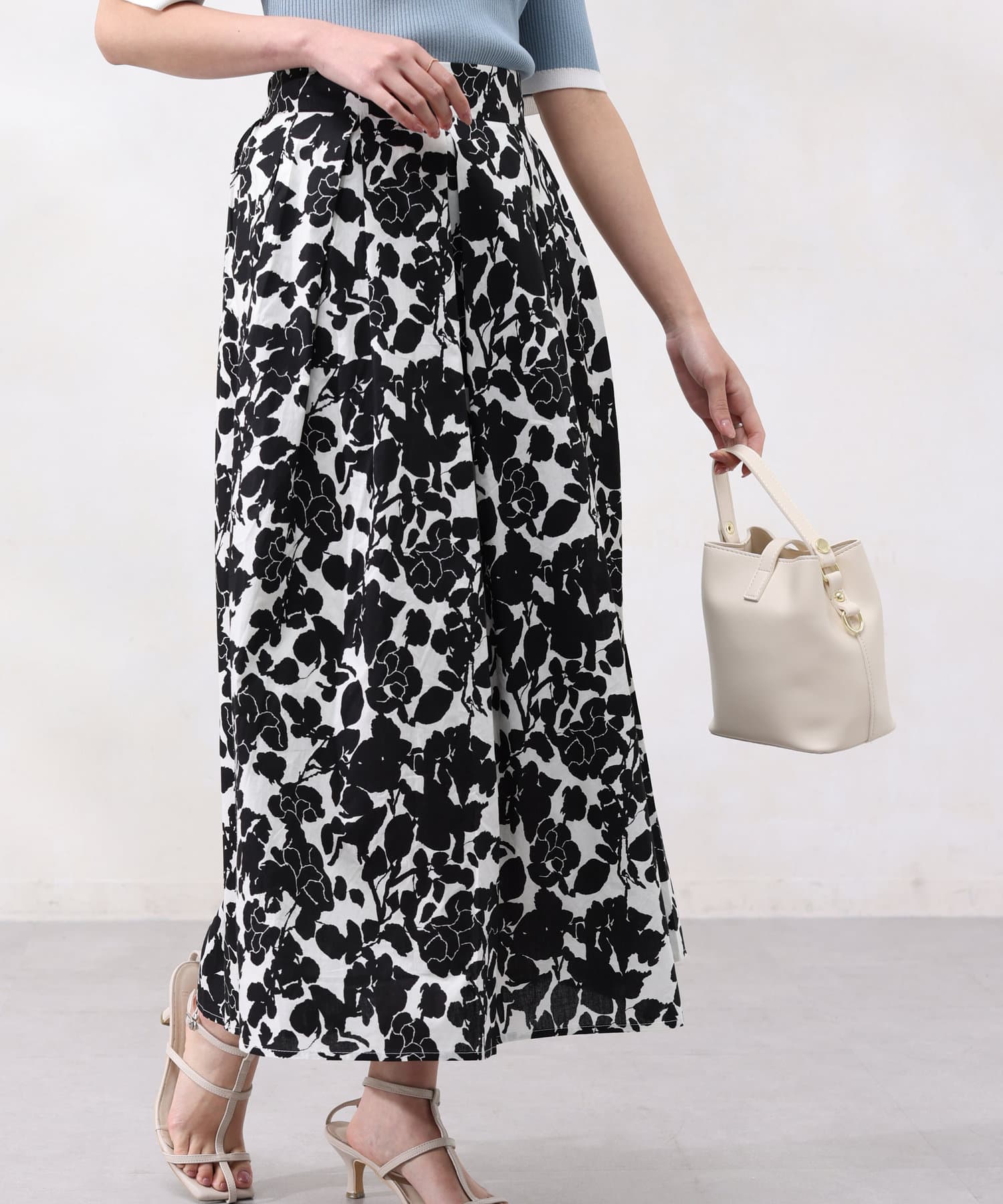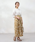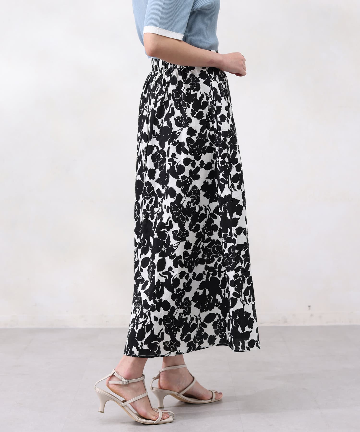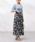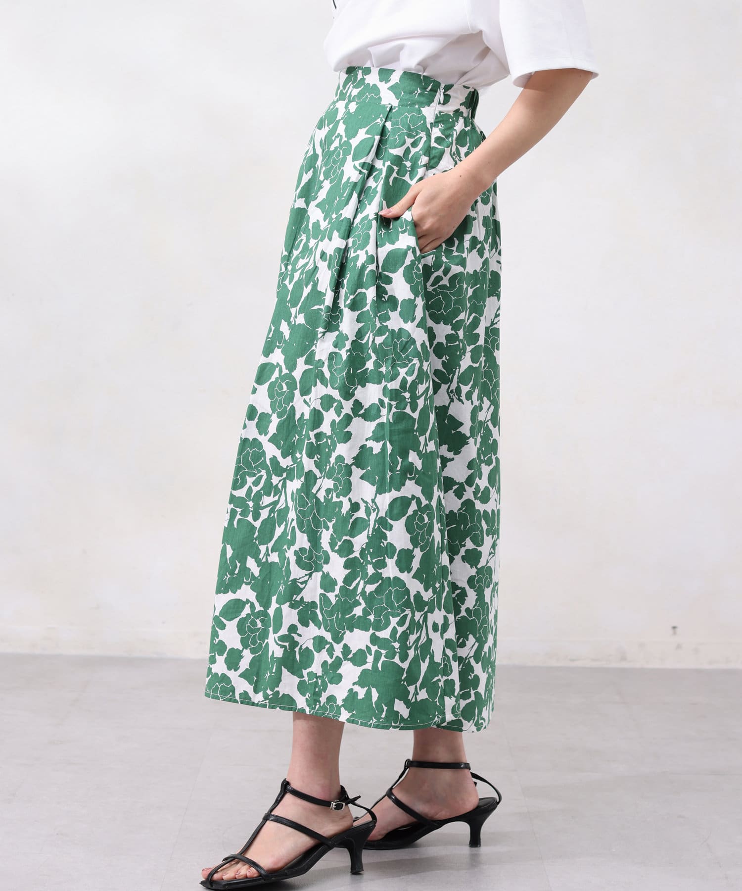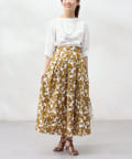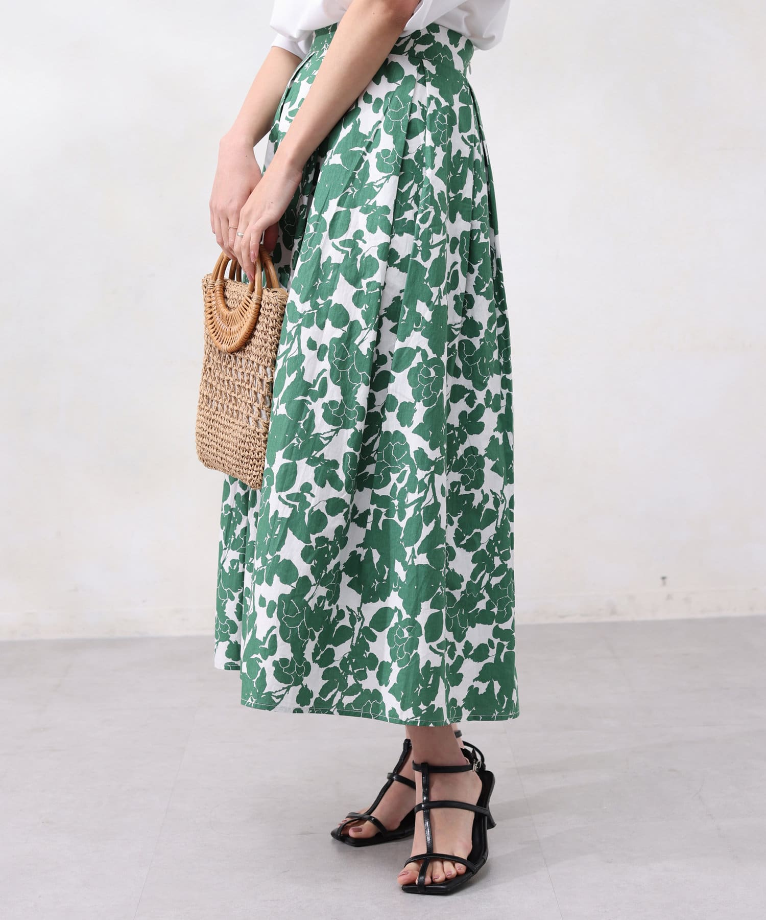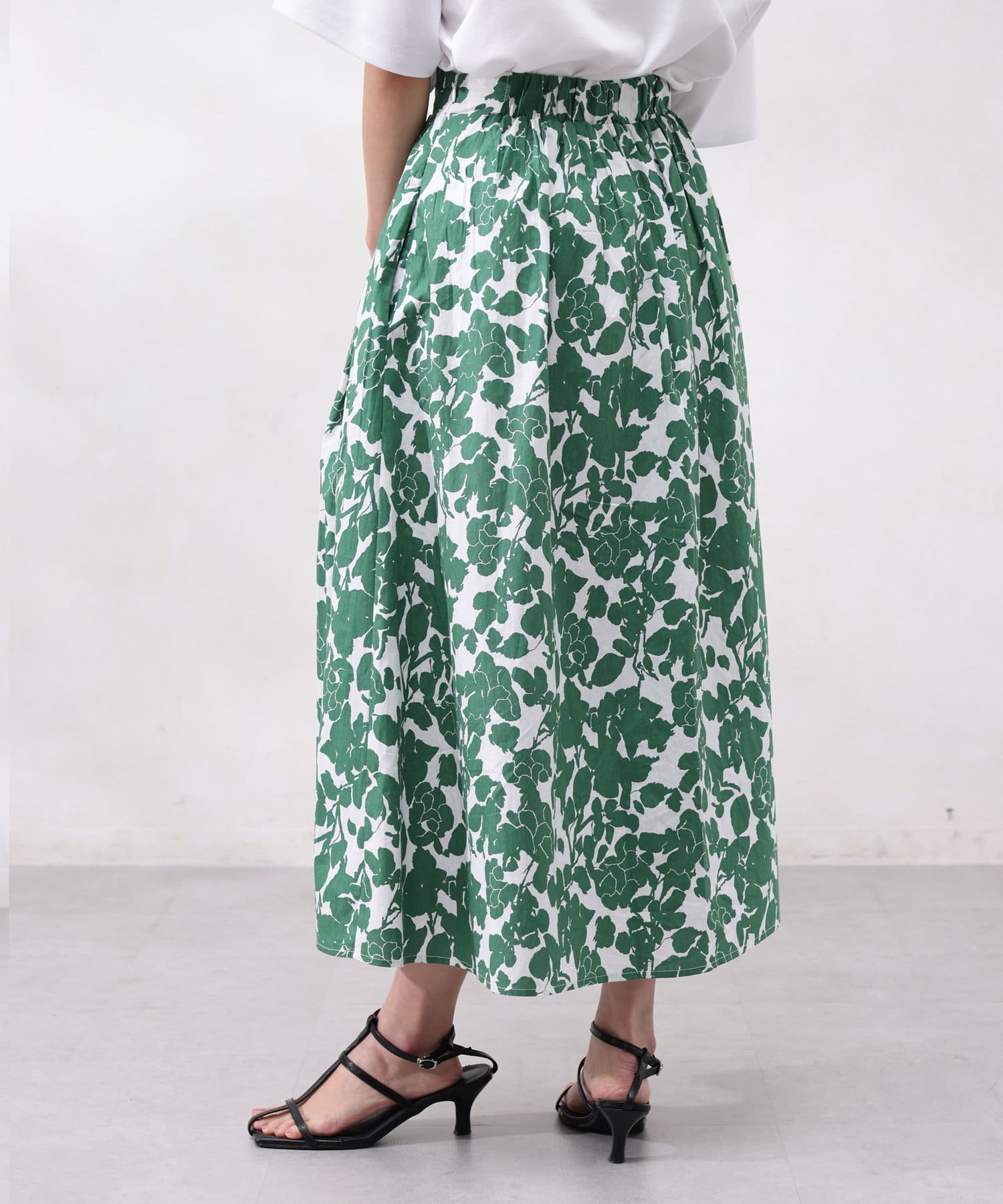 目を惹く大判花柄ですが、落ち着いたカラー配色なので大人の余裕を感じさせるフレアスカートです。