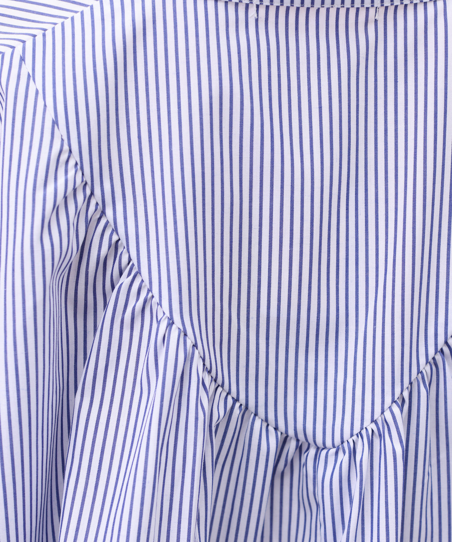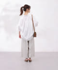 後身頃のヨークがVラインになっているデザインで、たっぷり入ったギャザーが目を惹くポイント!