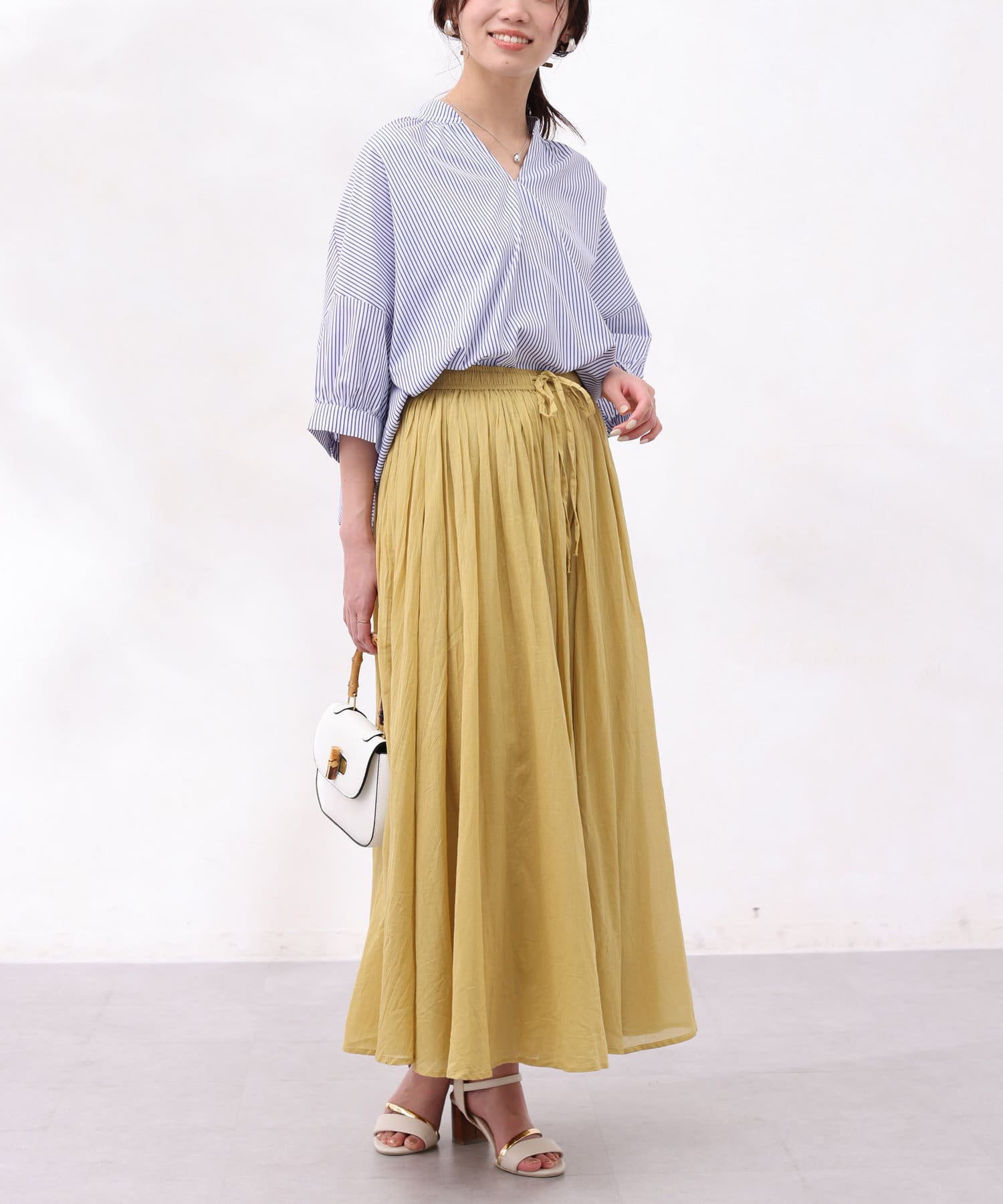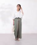 デニムや柔らかい素材のスカートを合わせるとラフな雰囲気のオフコーデにも。