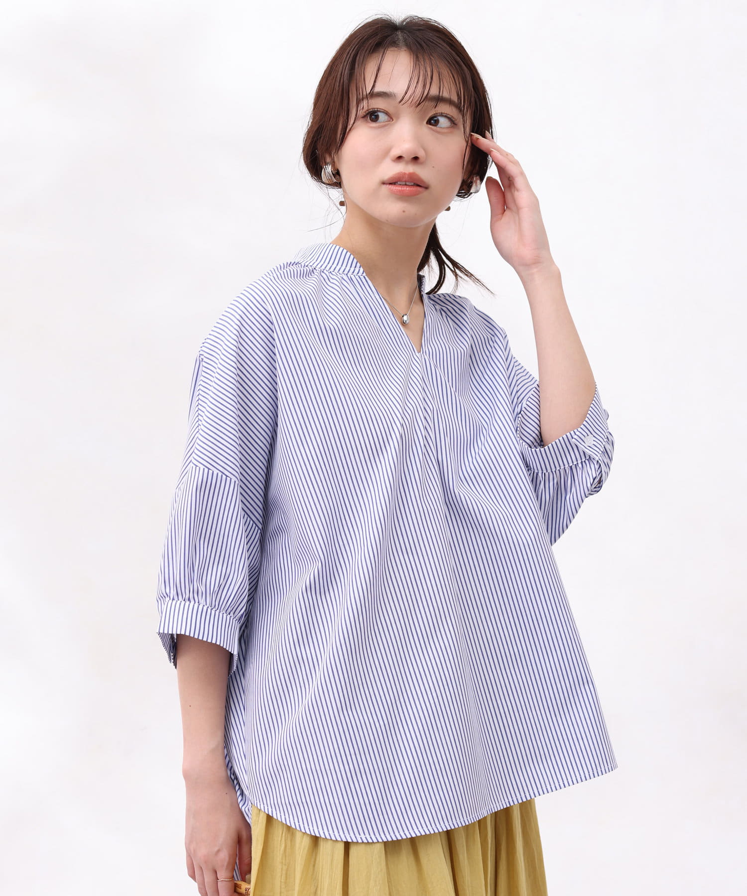スキッパーシャツながらゆったりとしたシルエットが着心地ばっちり◎