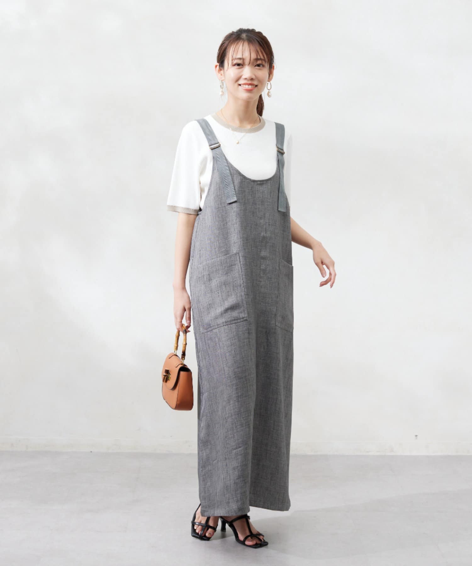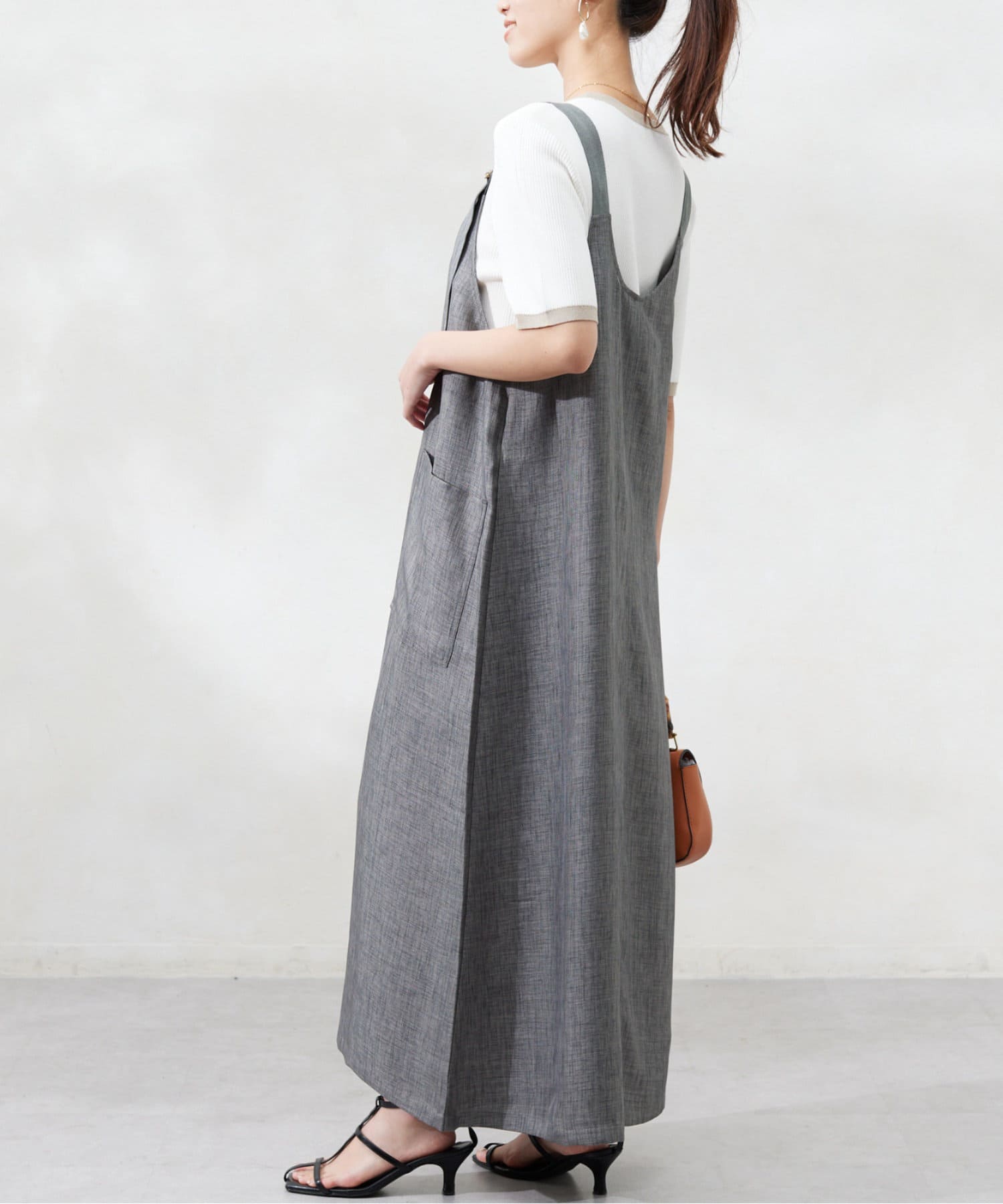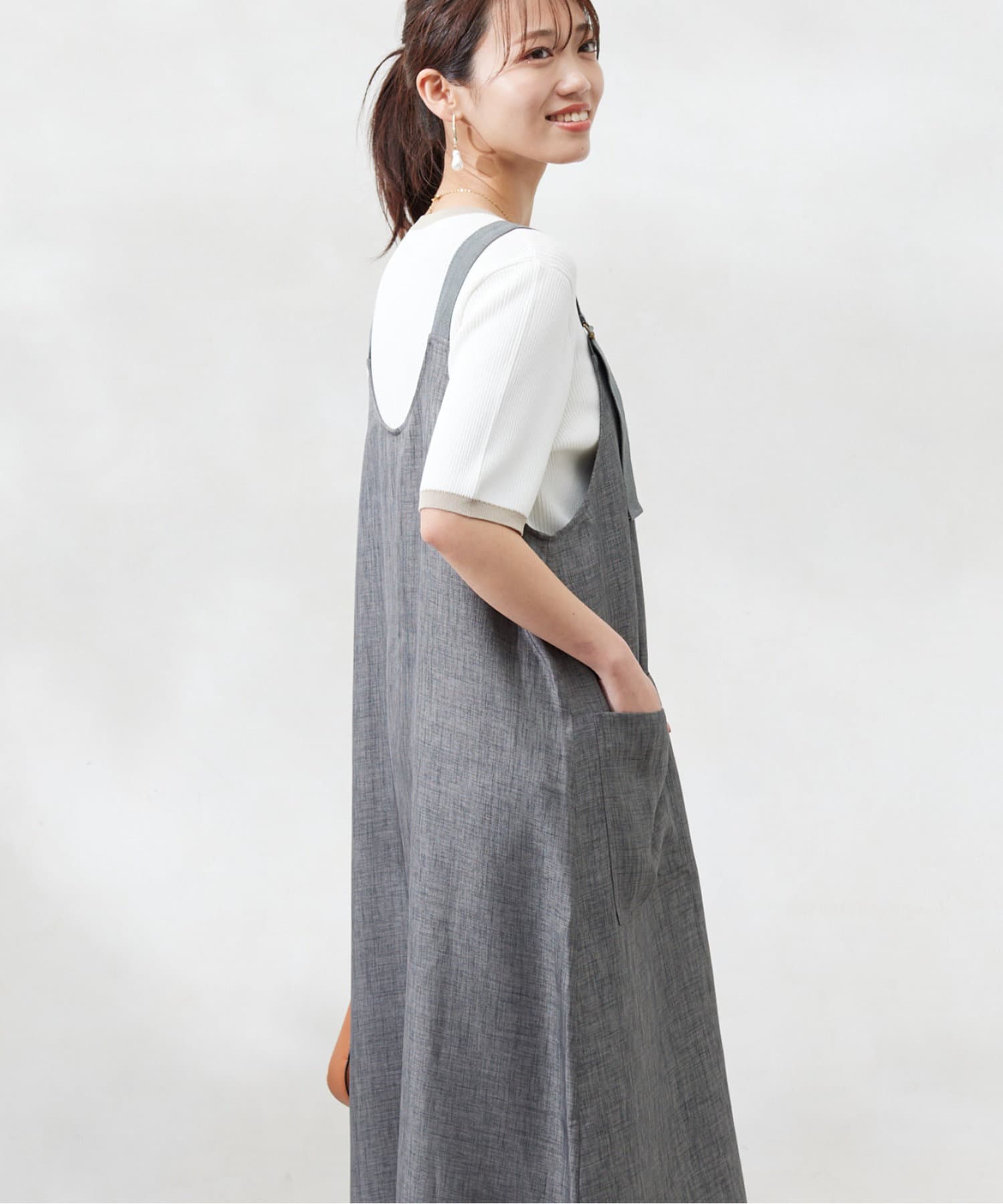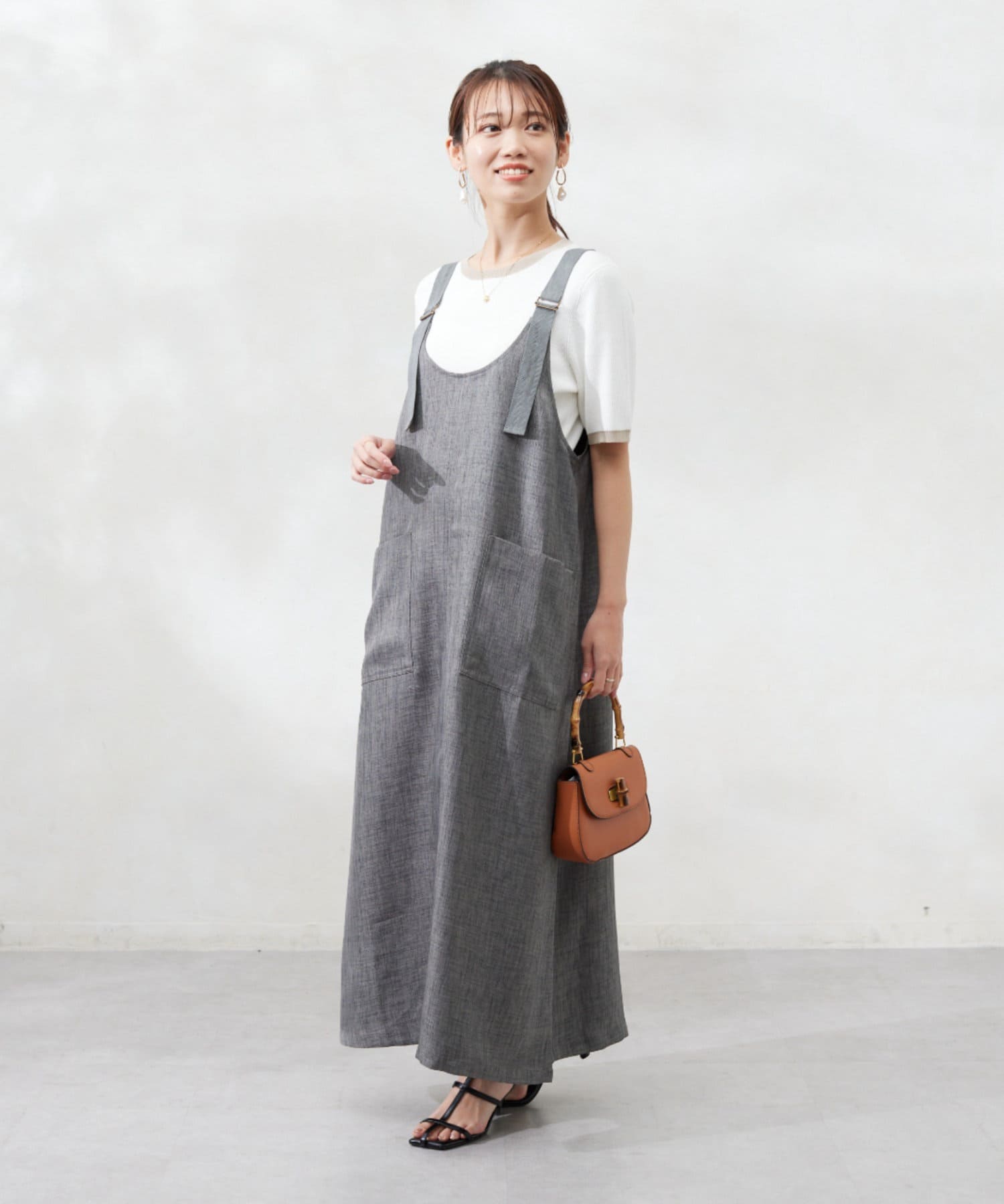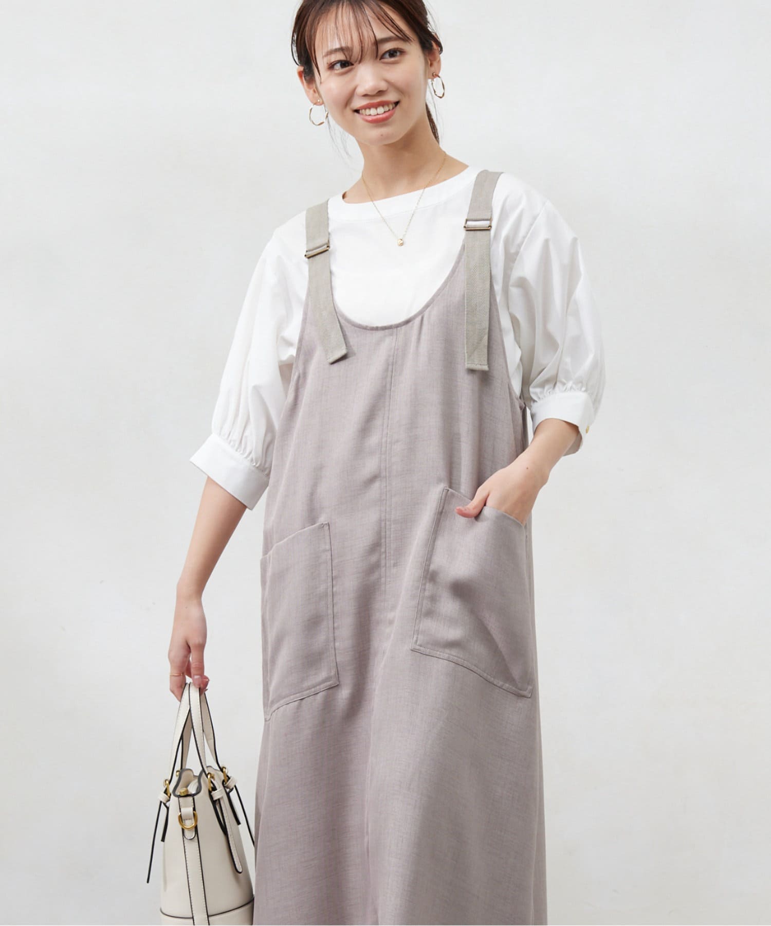 肩紐の長さは調整可能なので、身長関係なくお召しいただけます。