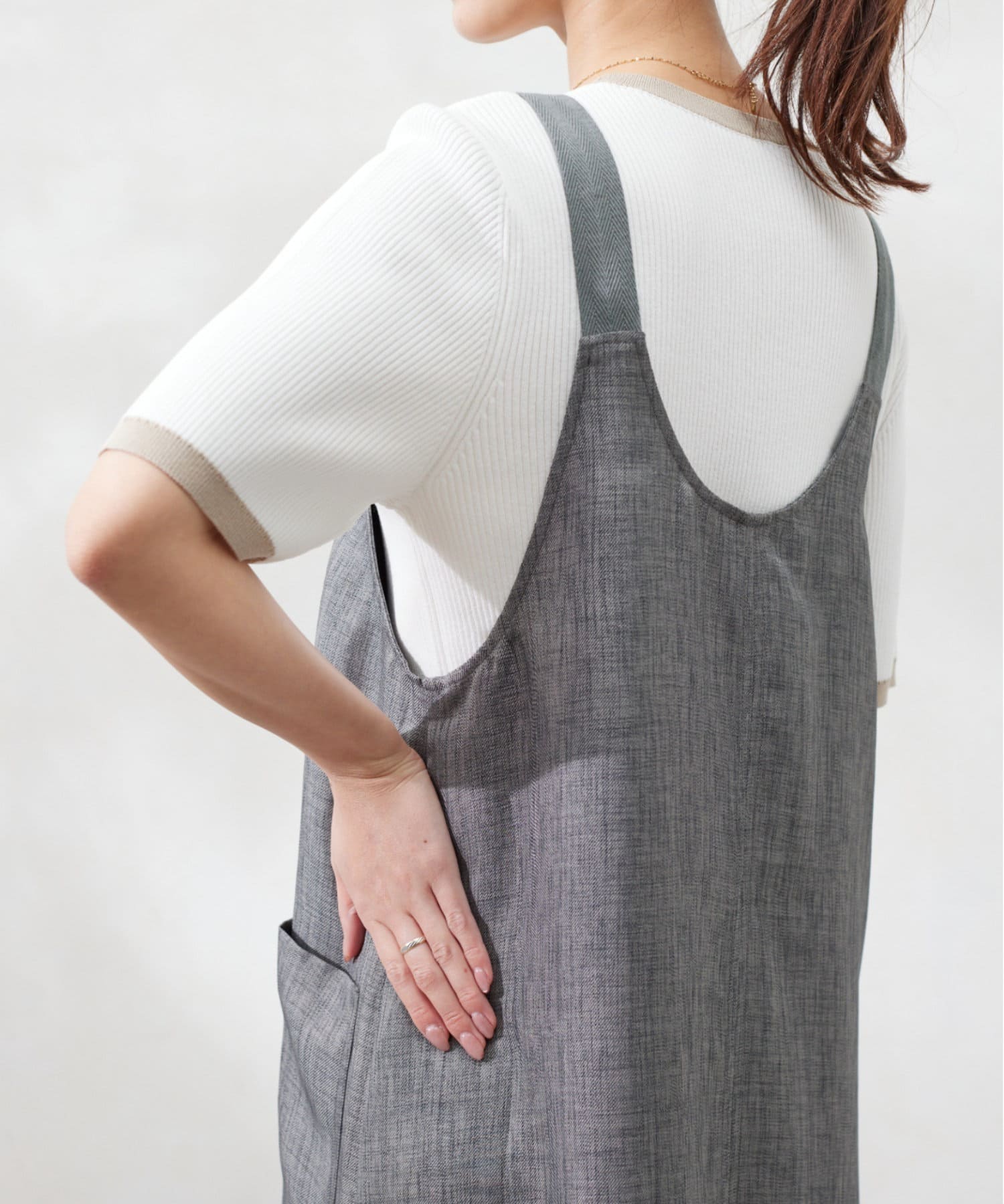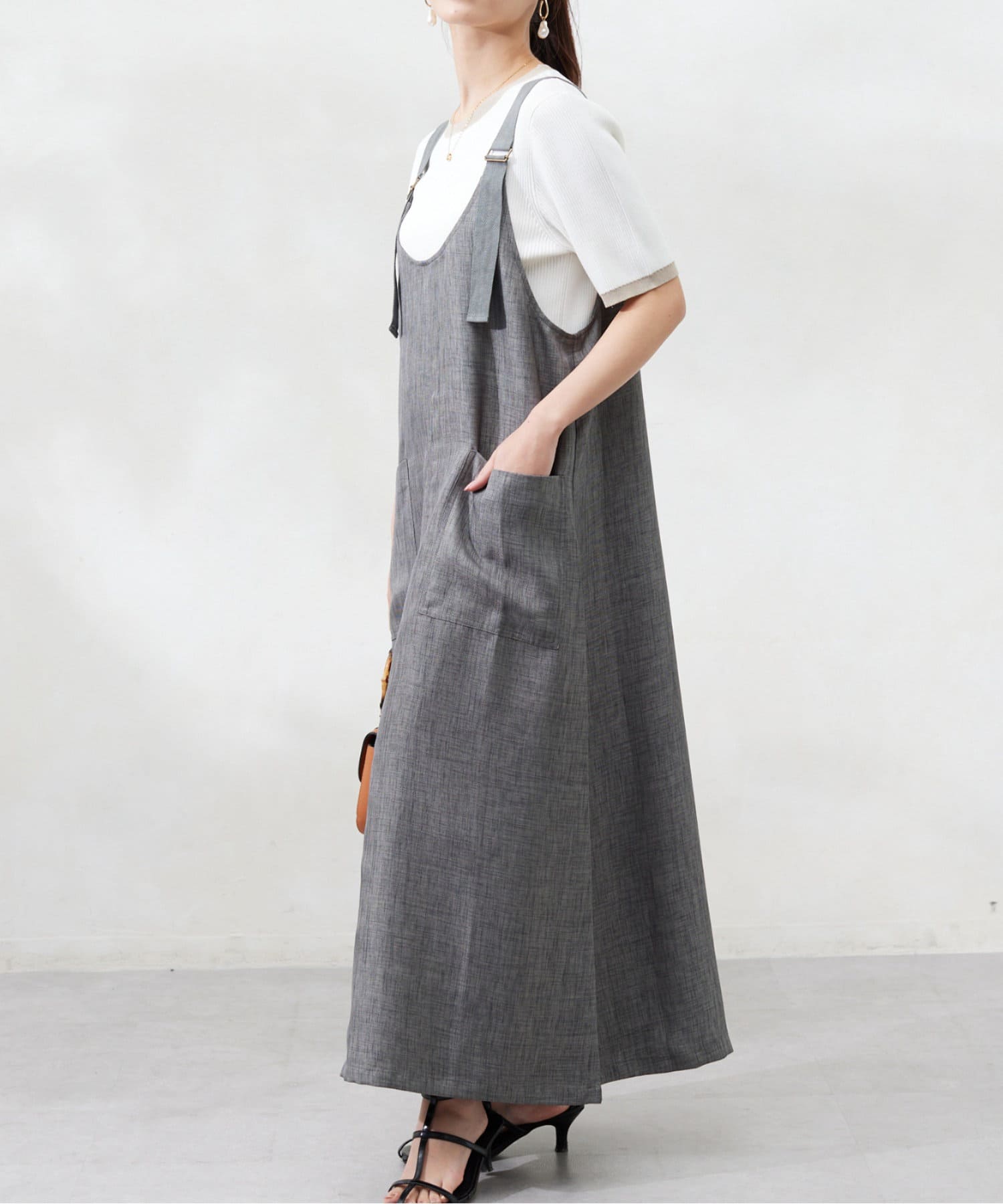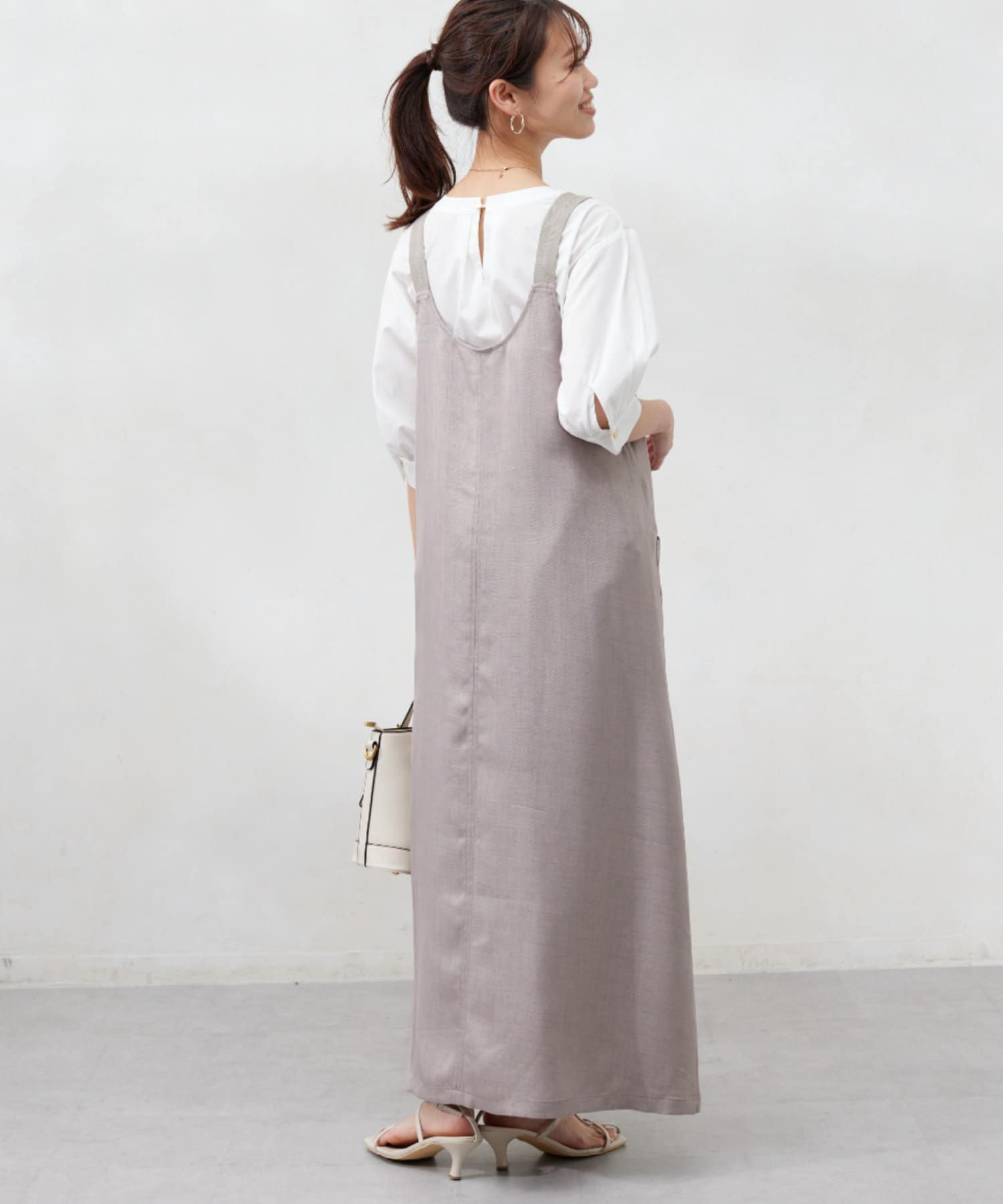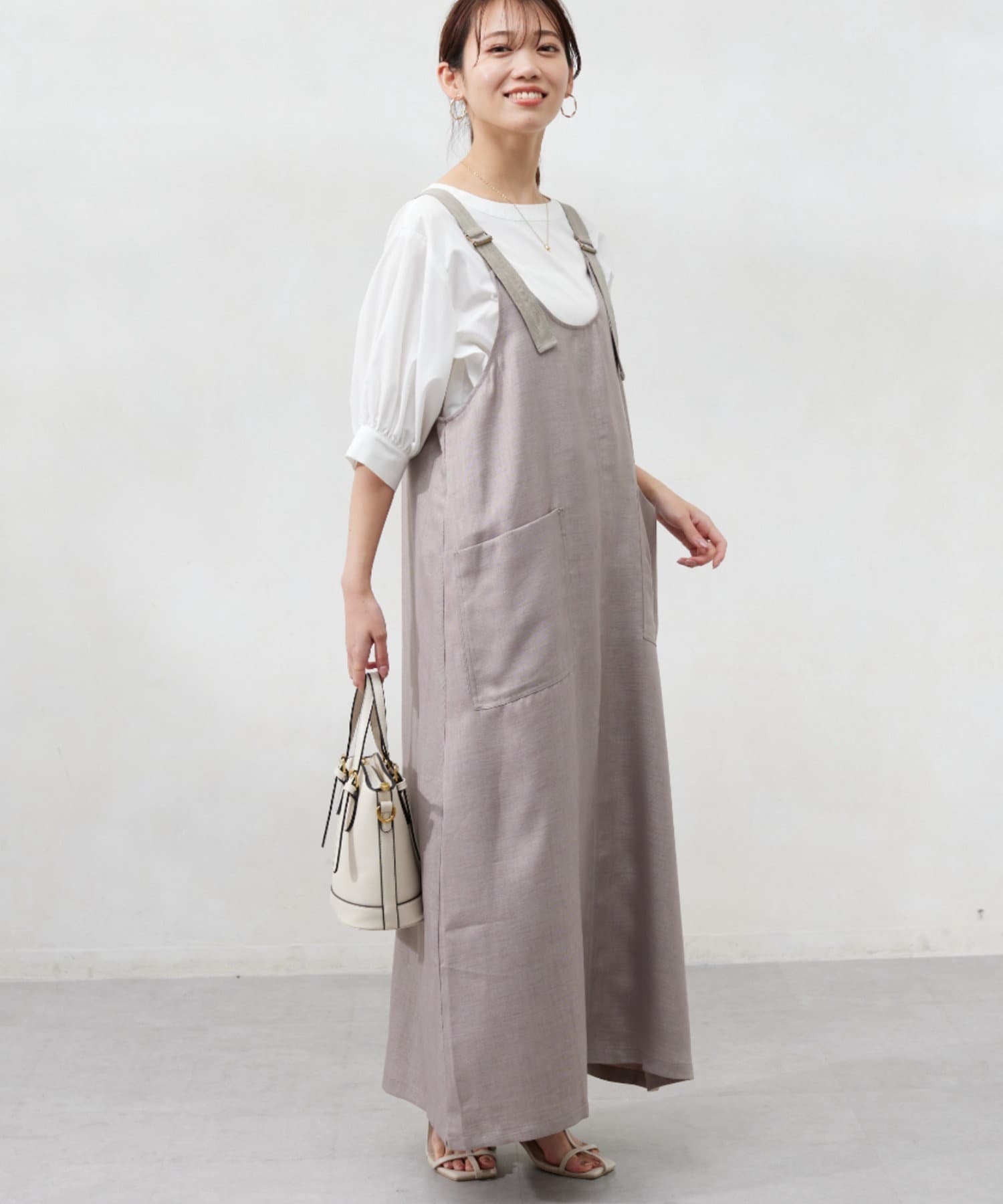 肩紐の長さは調整可能なので、身長関係なくお召しいただけます。