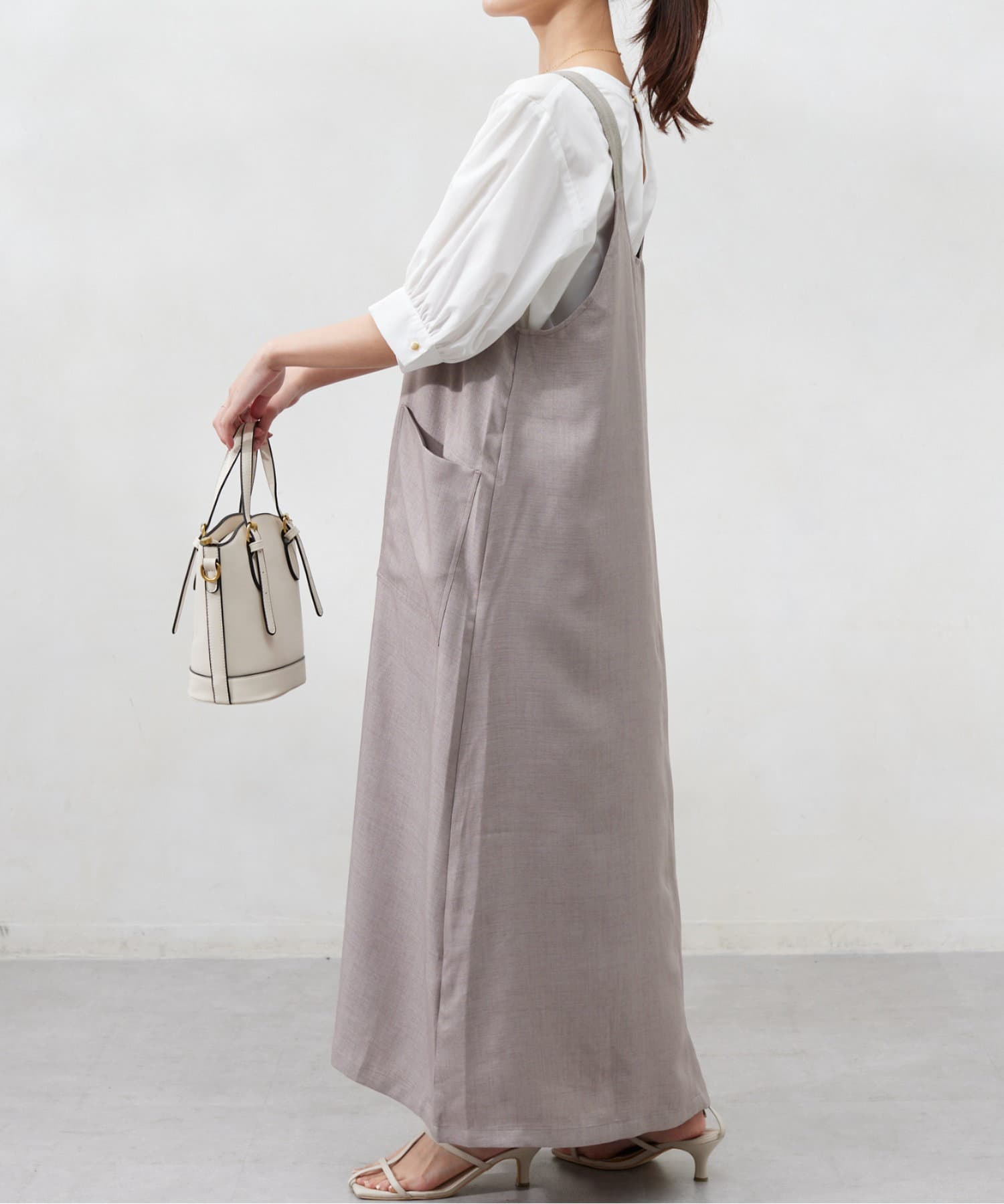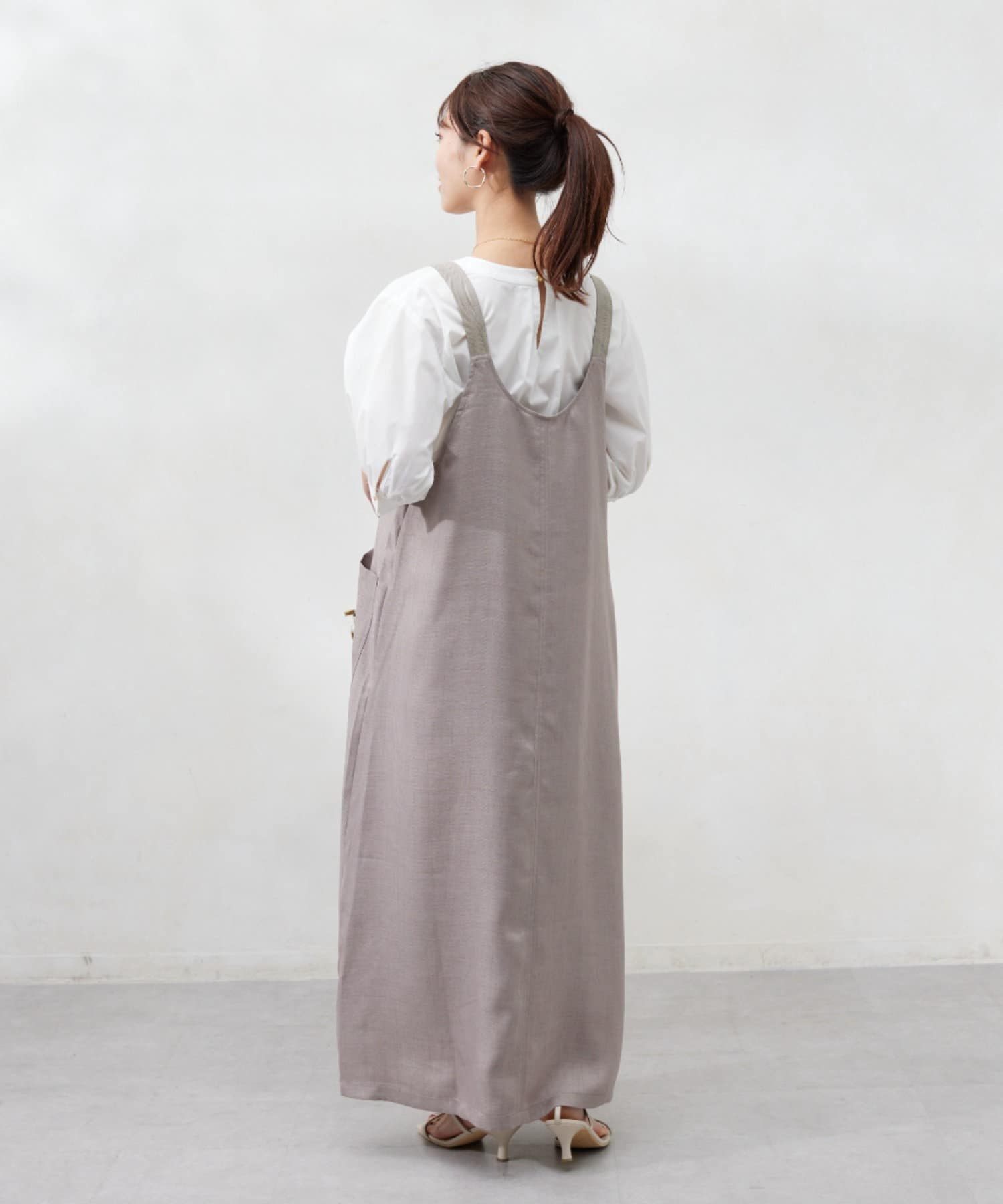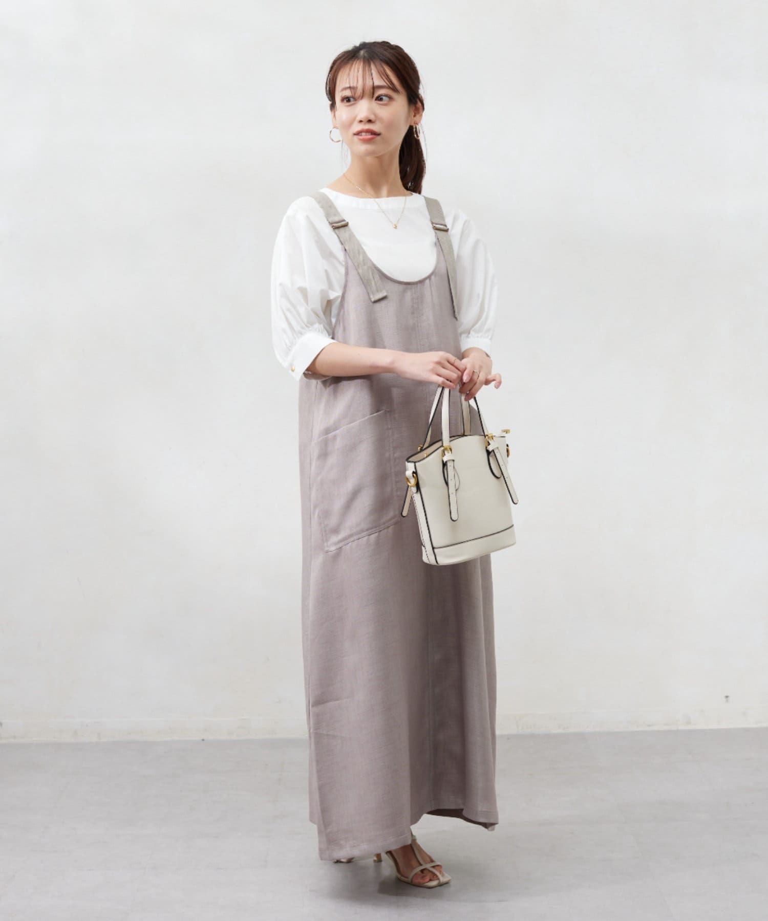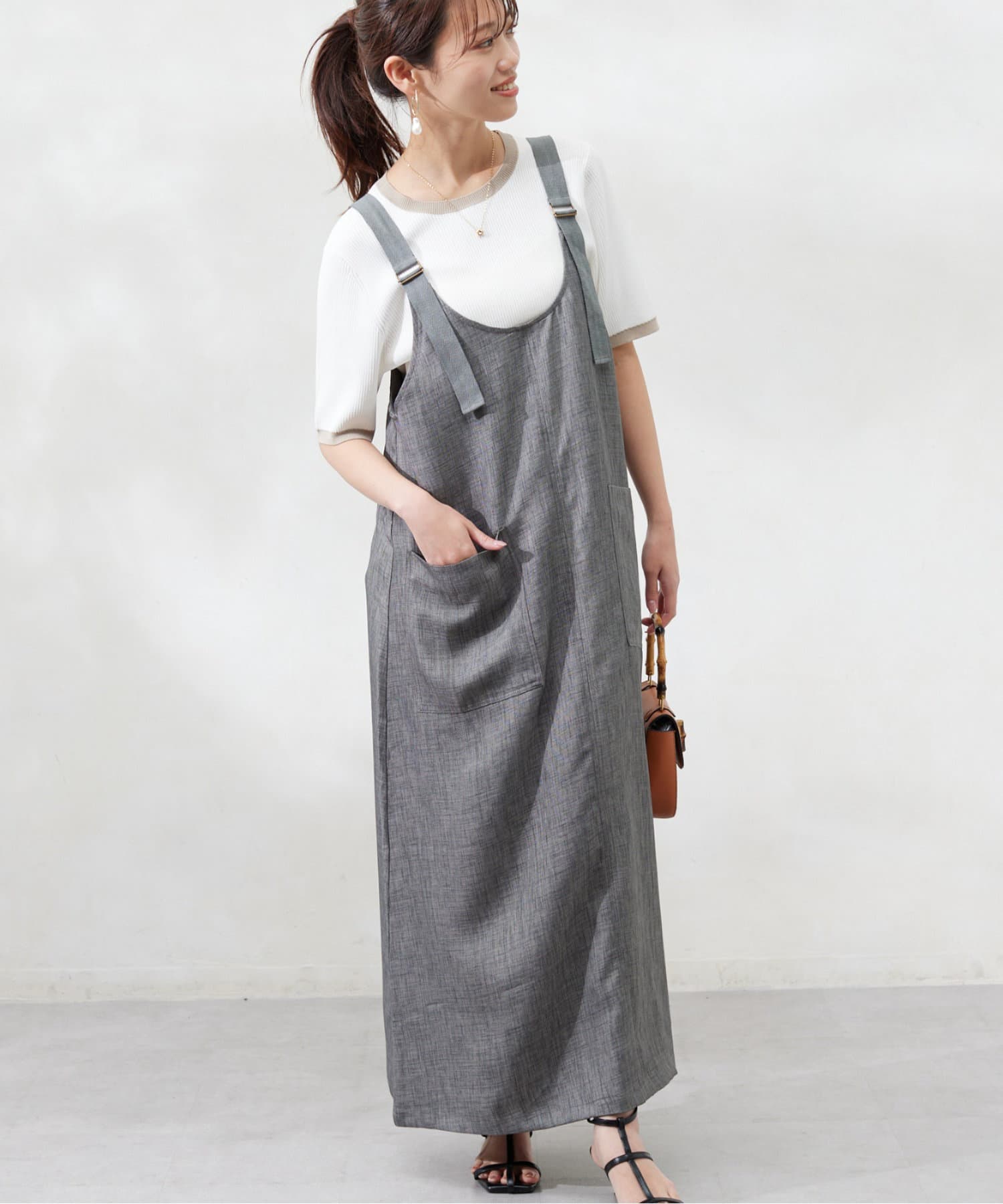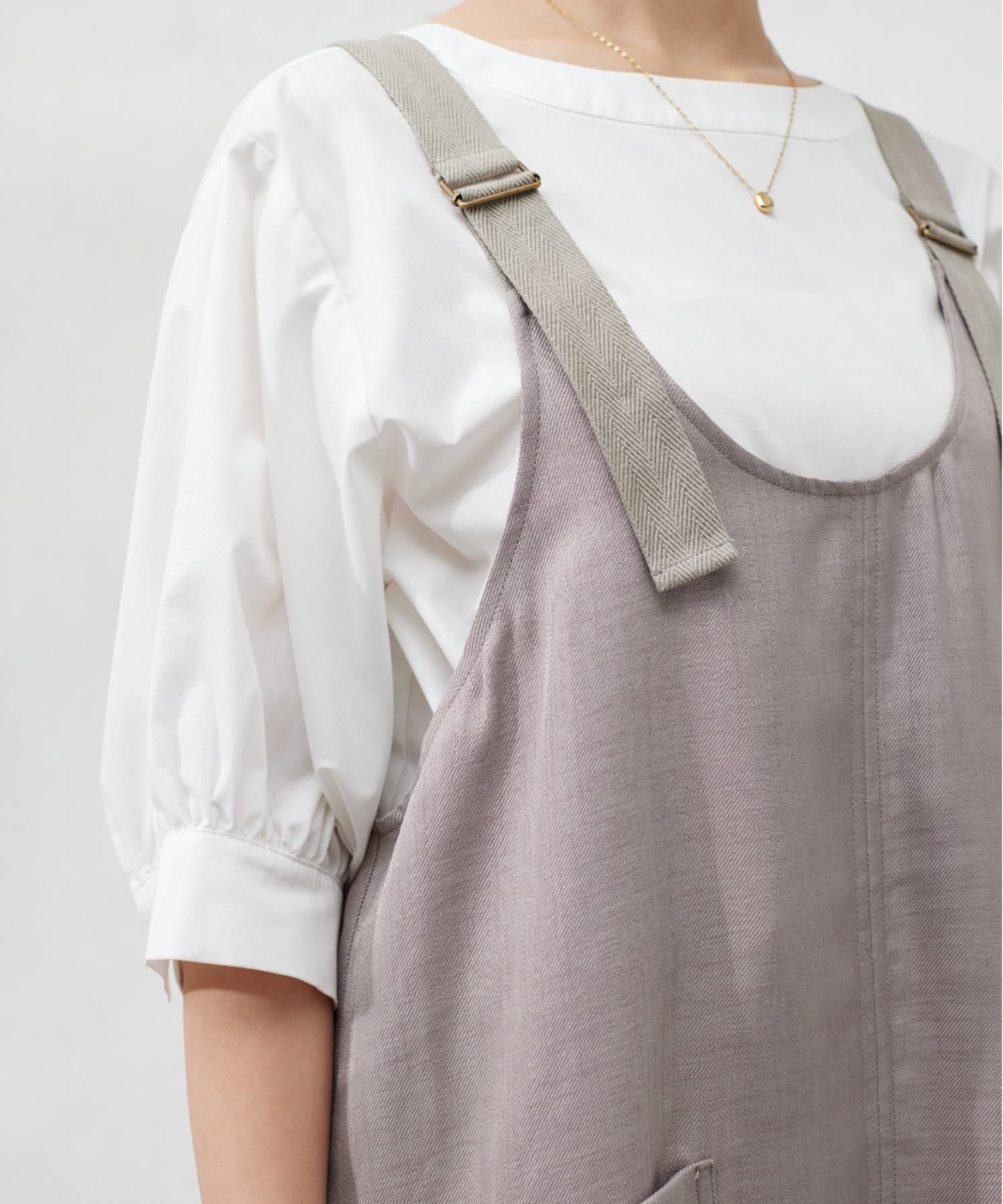 肩紐の長さは調整可能なので、身長関係なくお召しいただけます。