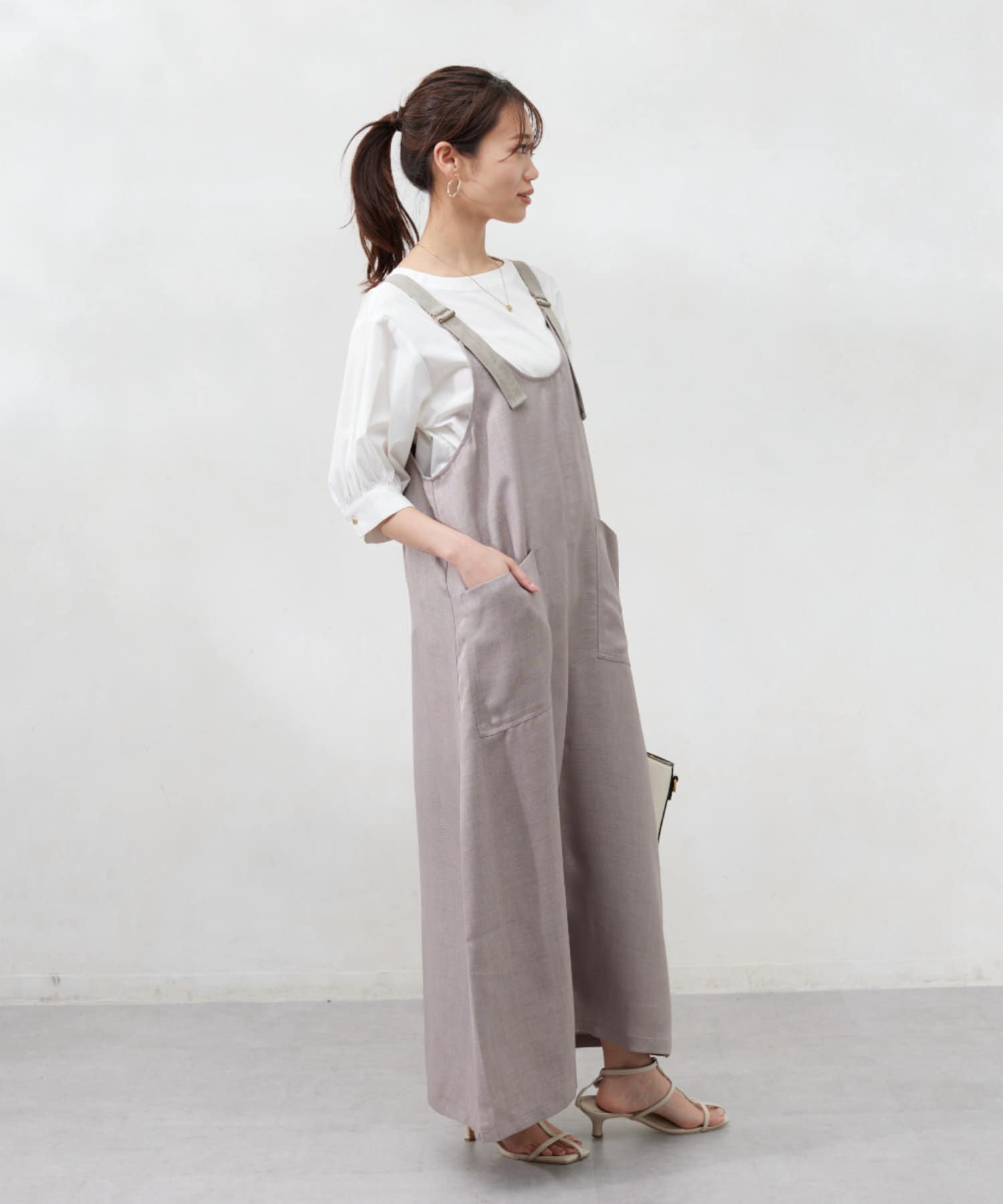 ゆったりとしたサイズ感なので、ボリュームスリーブトップスと合わせても大人可愛い!