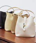 ワンハンドルのシンプルなデザインにコロンとしたフォルム、少しレトロ感のあるゴールド金具がアクセントになる小さめバッグです。