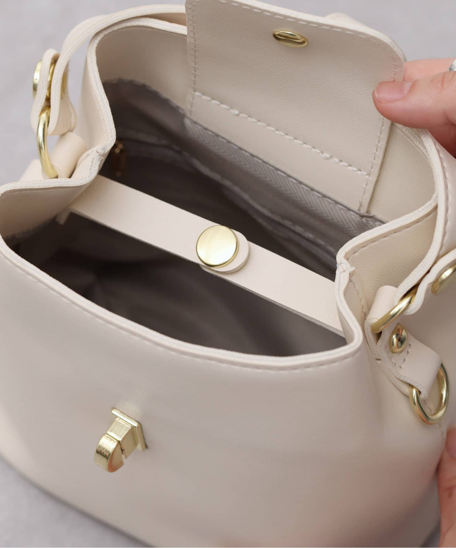 控えめな金具使いは上品な印象に。1つあれば幅広いシーンで活躍します。