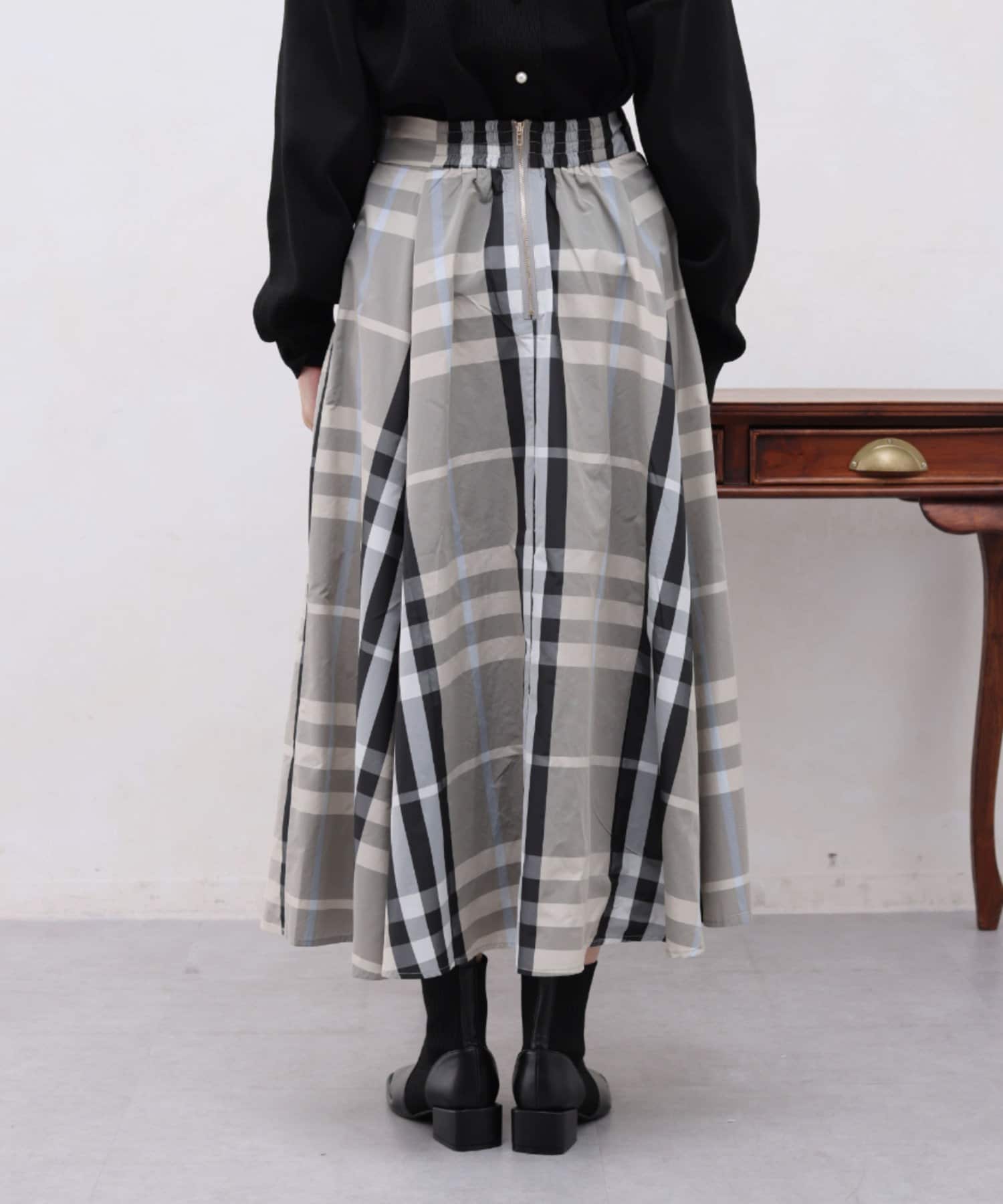 Chez toi(シェトワ) 大判チェックはぎタフタスカート
