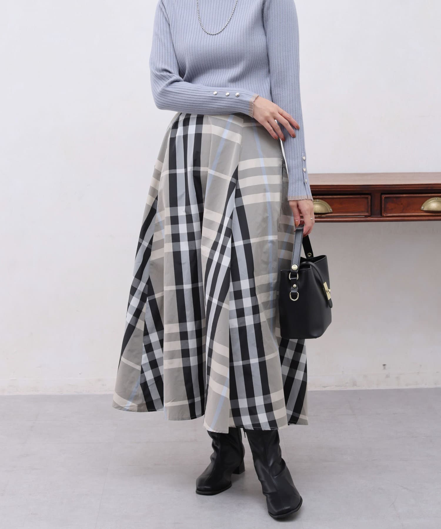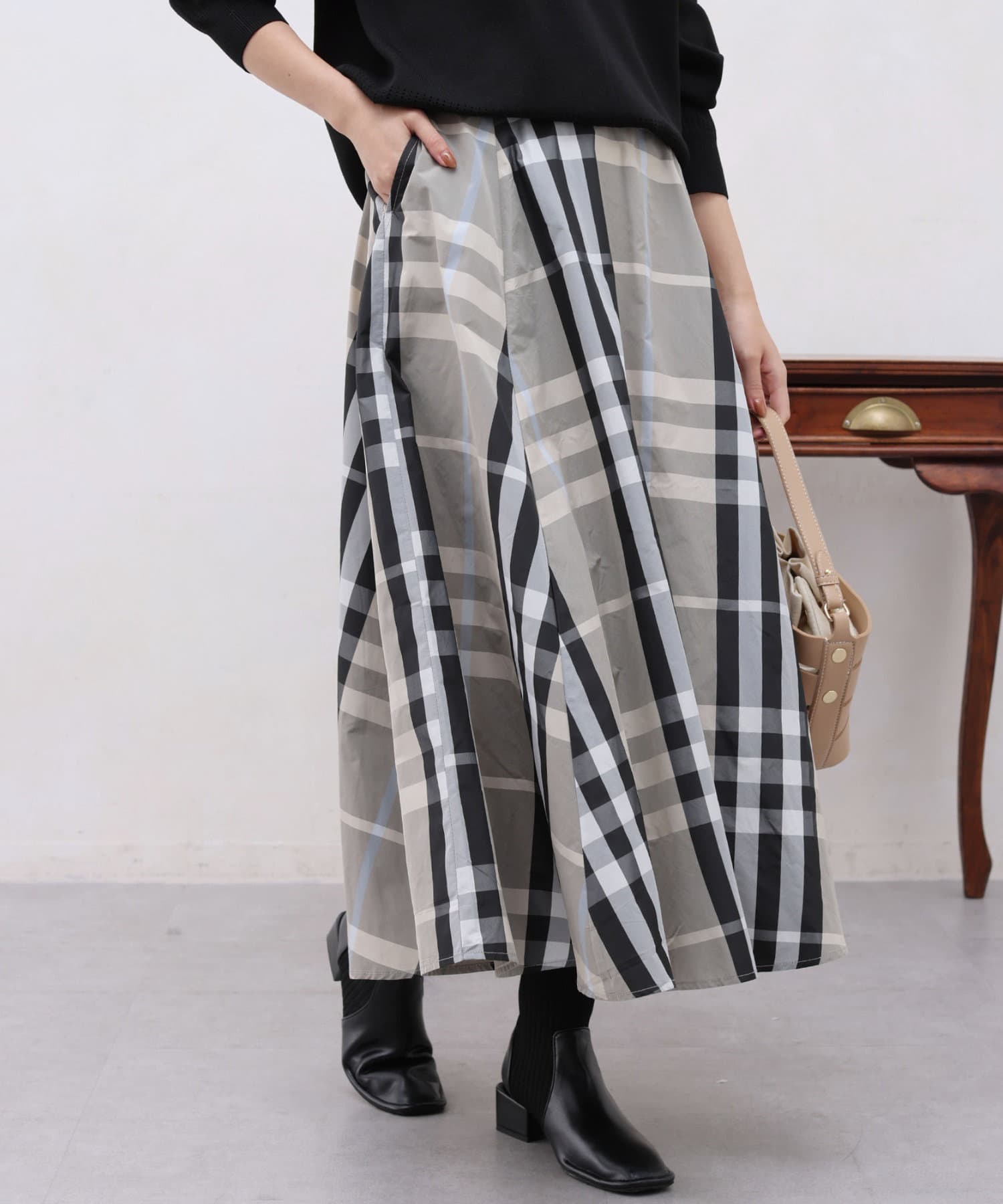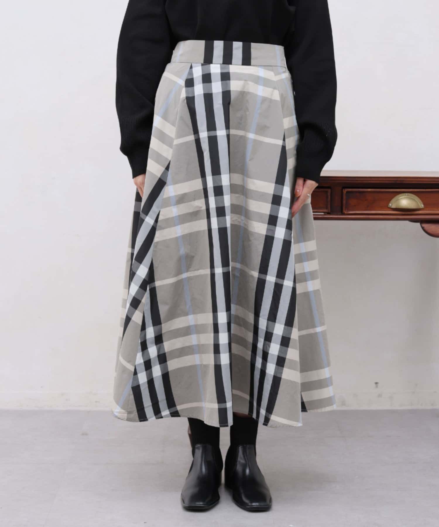 大判チェックが目を惹く存在感のあるチェックスカート。