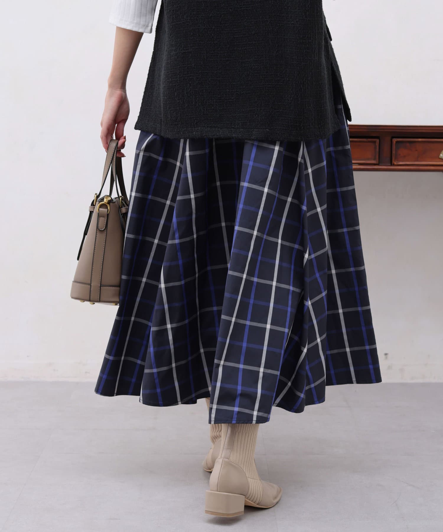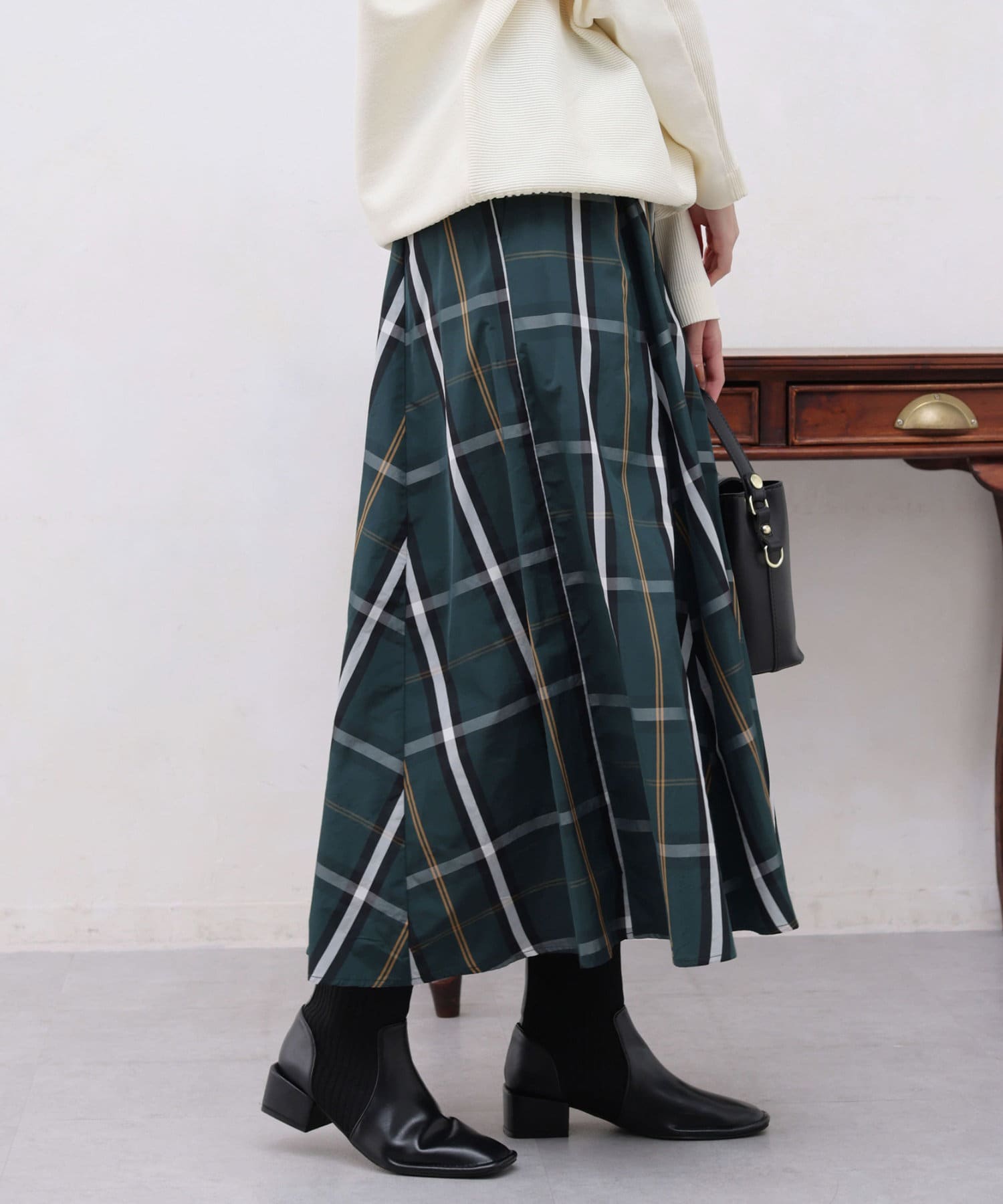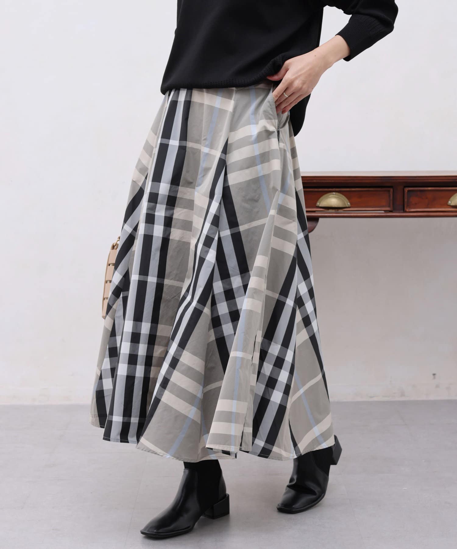 大判チェックはぎタフタスカート