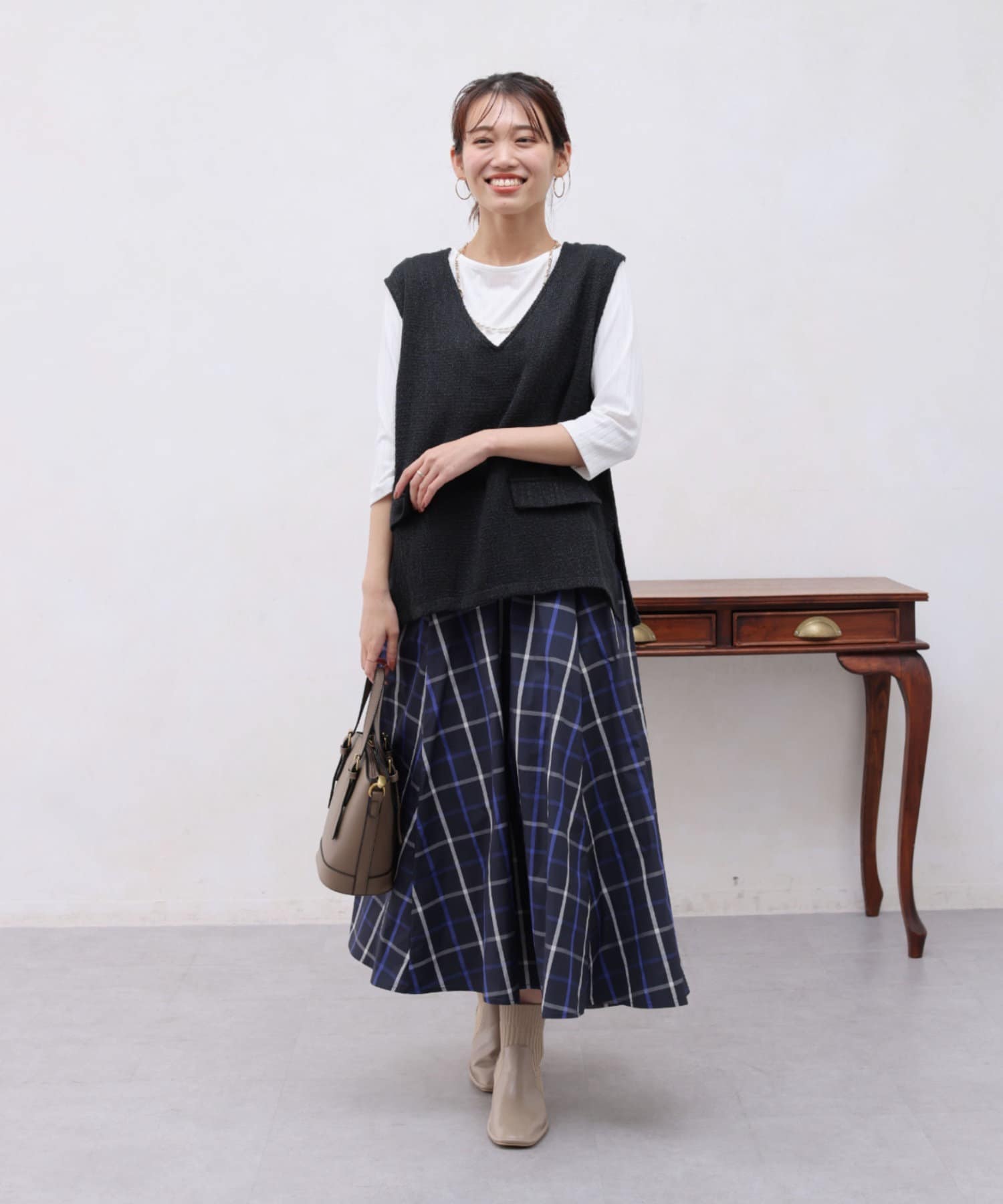 ランダムなチェックが大人女子にも着やすく、ベーシックなシルエットなので手に取りやすいデザイン。