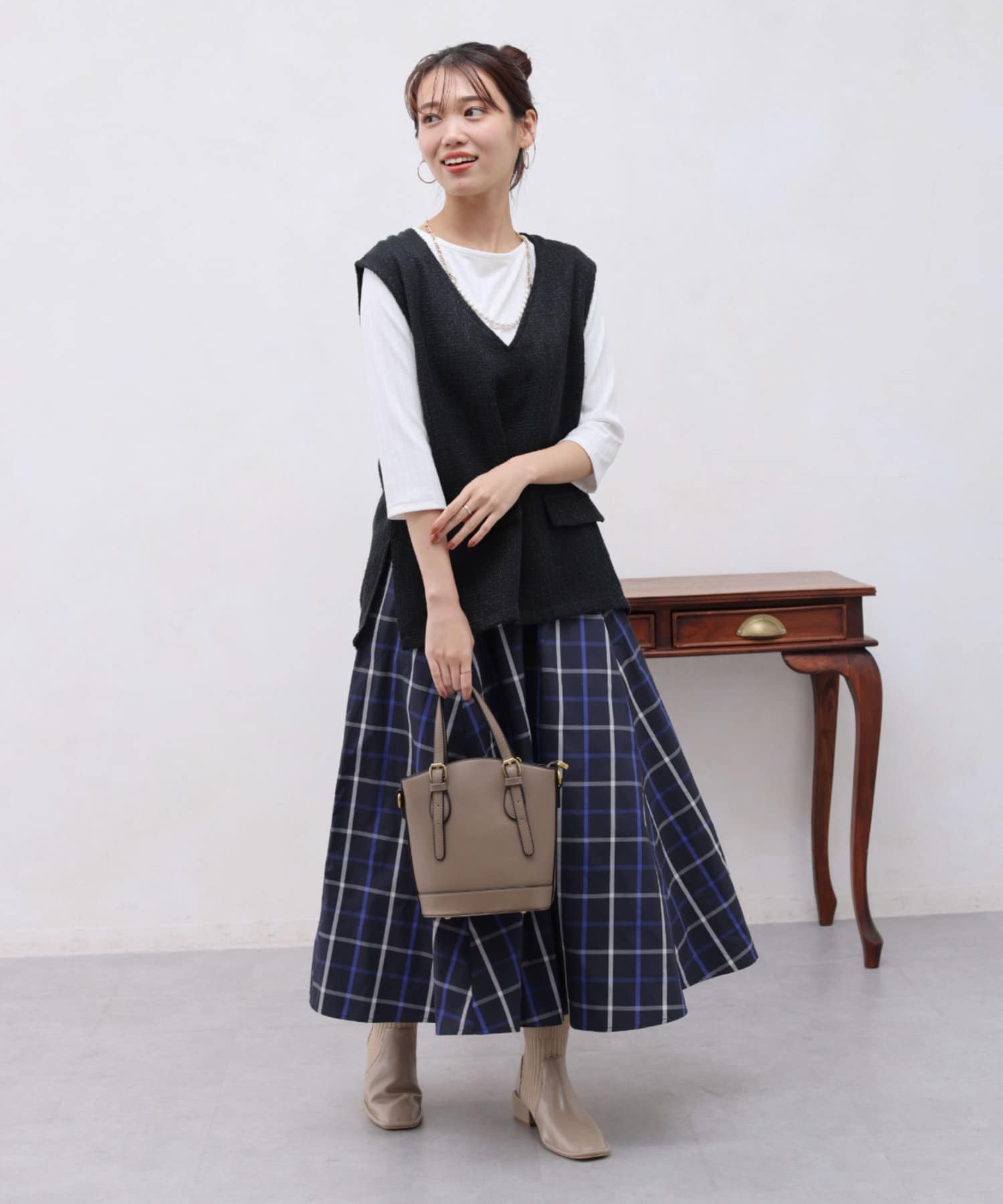 シーズンレスの大人チェックスカート