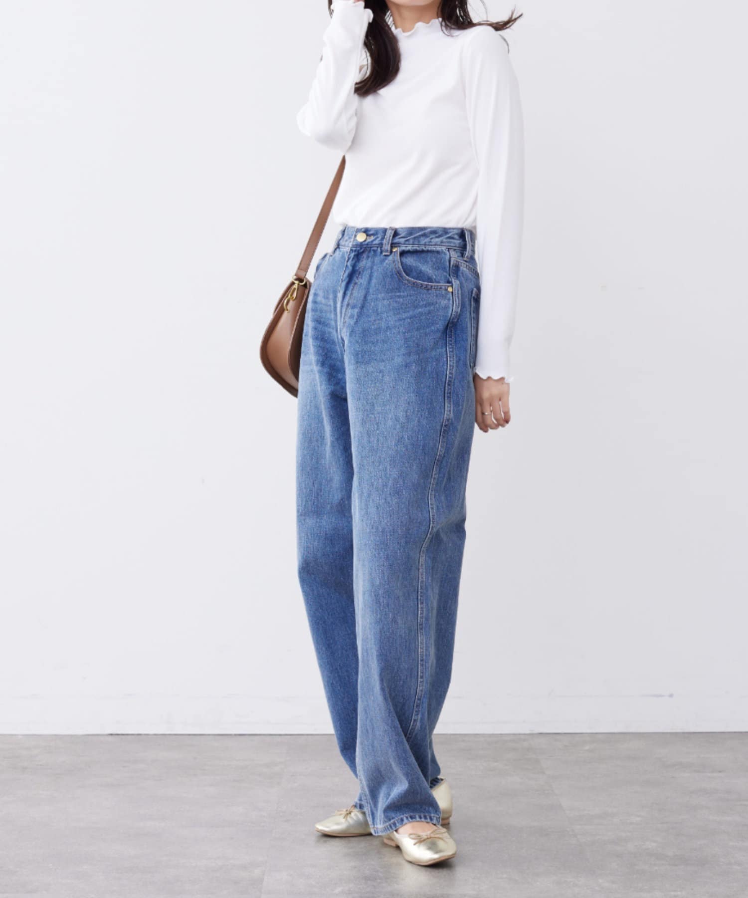 流行のカーブデニム。試着したところ細く見えて可愛いかったので即決しました!カラーは季節問わず着用出来そうなカラーで気に入っています。