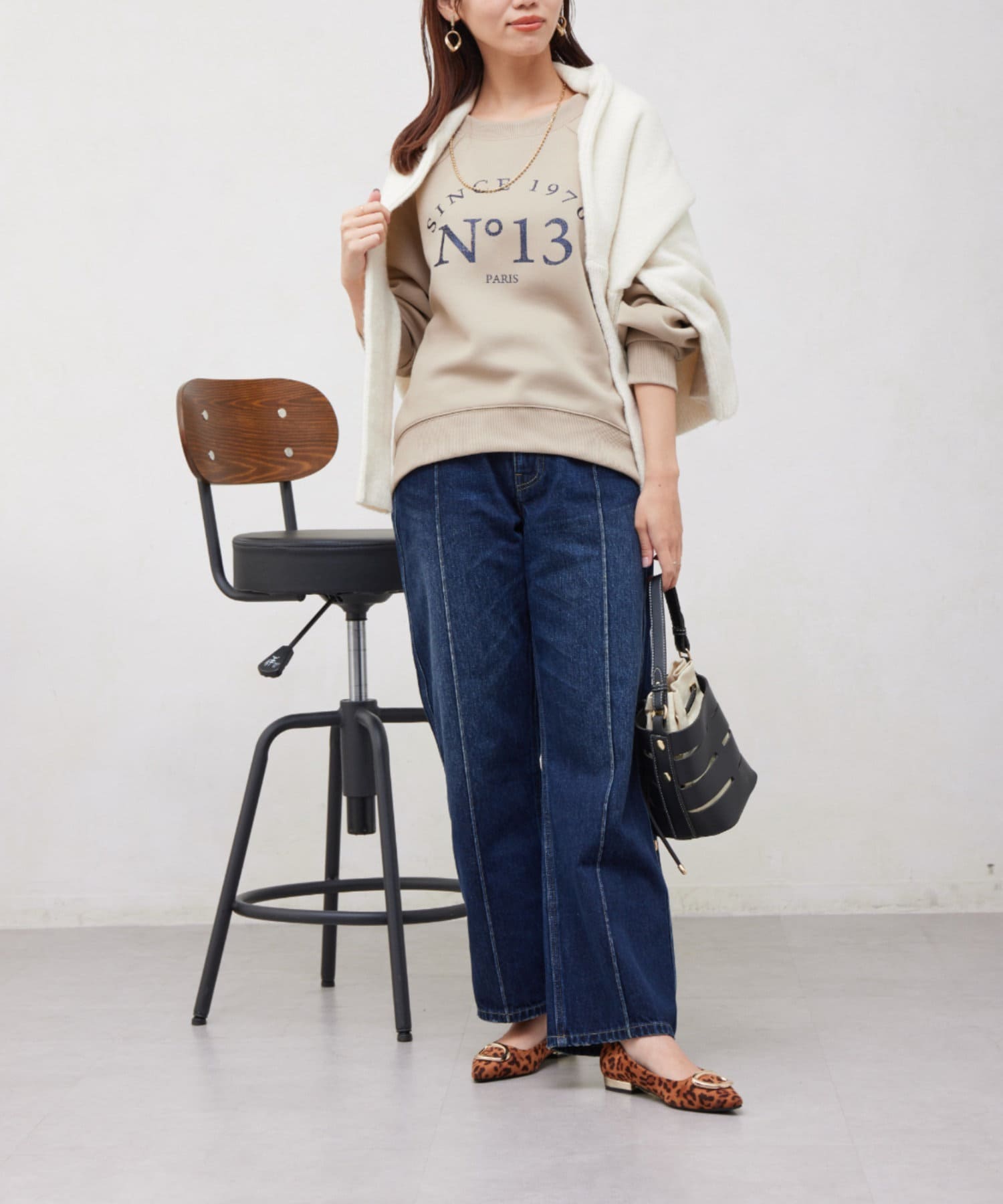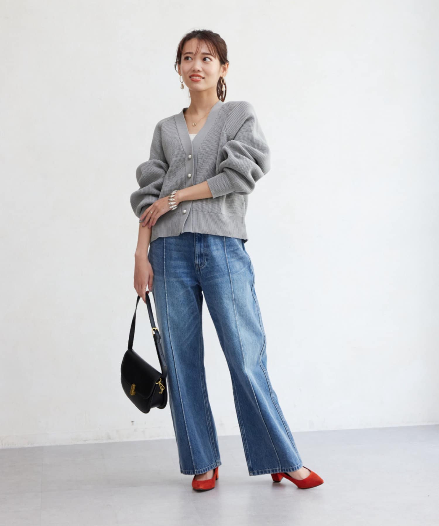 細すぎず、緩すぎないシルエットで、足をきれいに