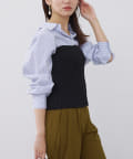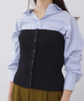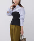 BLUE:シャツ、ポリエステル97%ポリウレタン3%ビスチェ、ポリエステル100%