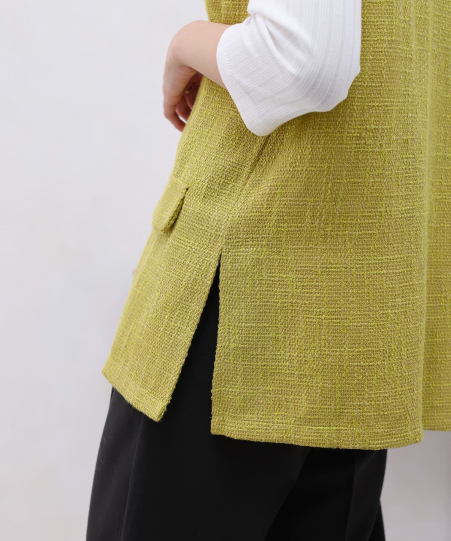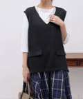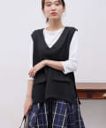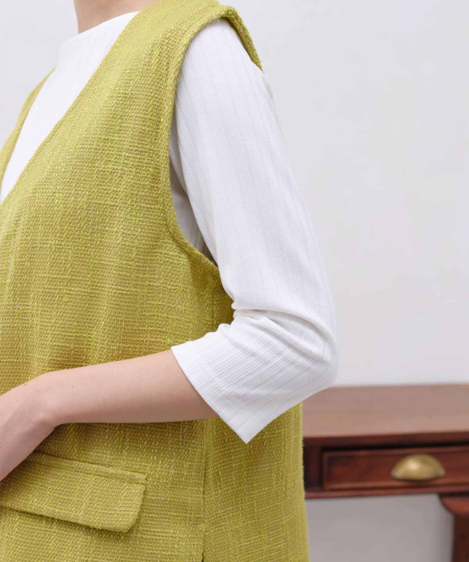 ツイードベストプルオーバー×7分袖カットリブプルオーバー