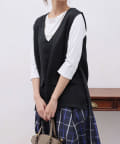 • Chez toi(シェトワ) ツイードベストプルオーバー×7分袖カットリブプルオーバー