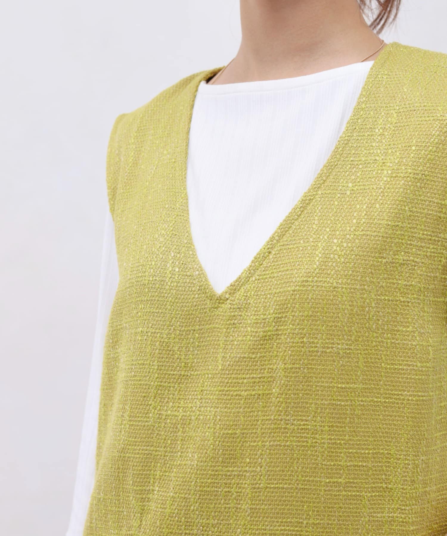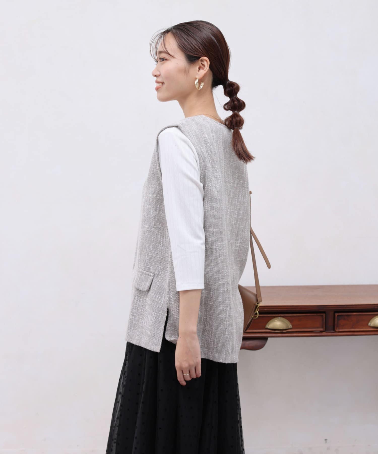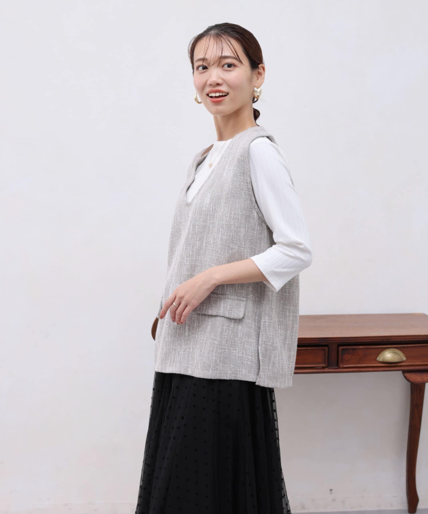 Chez toi(シェトワ) ツイードベストプルオーバー×7分袖カットリブプルオーバー