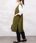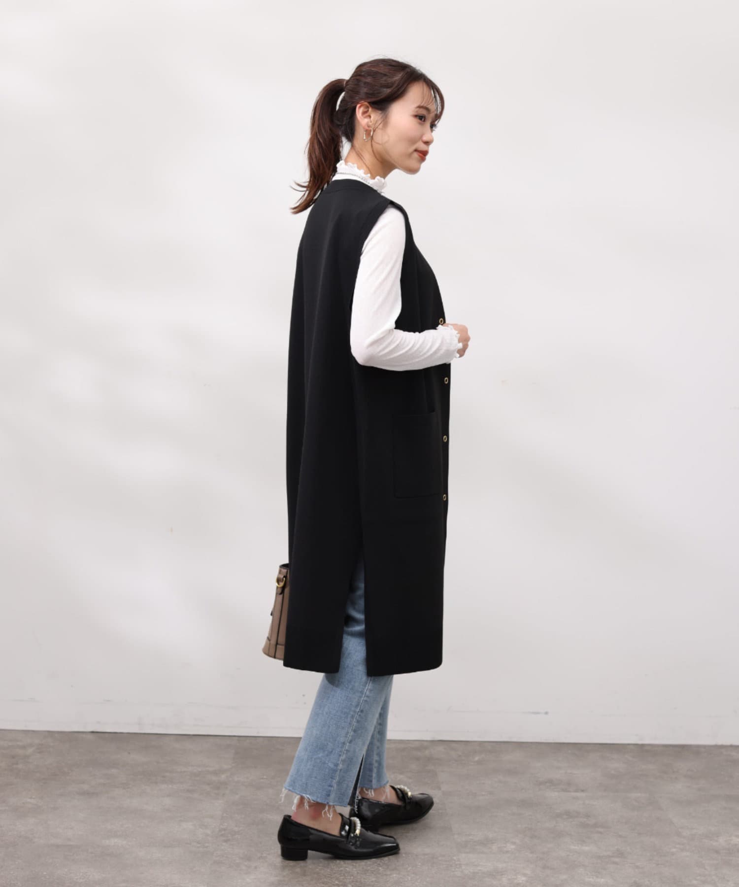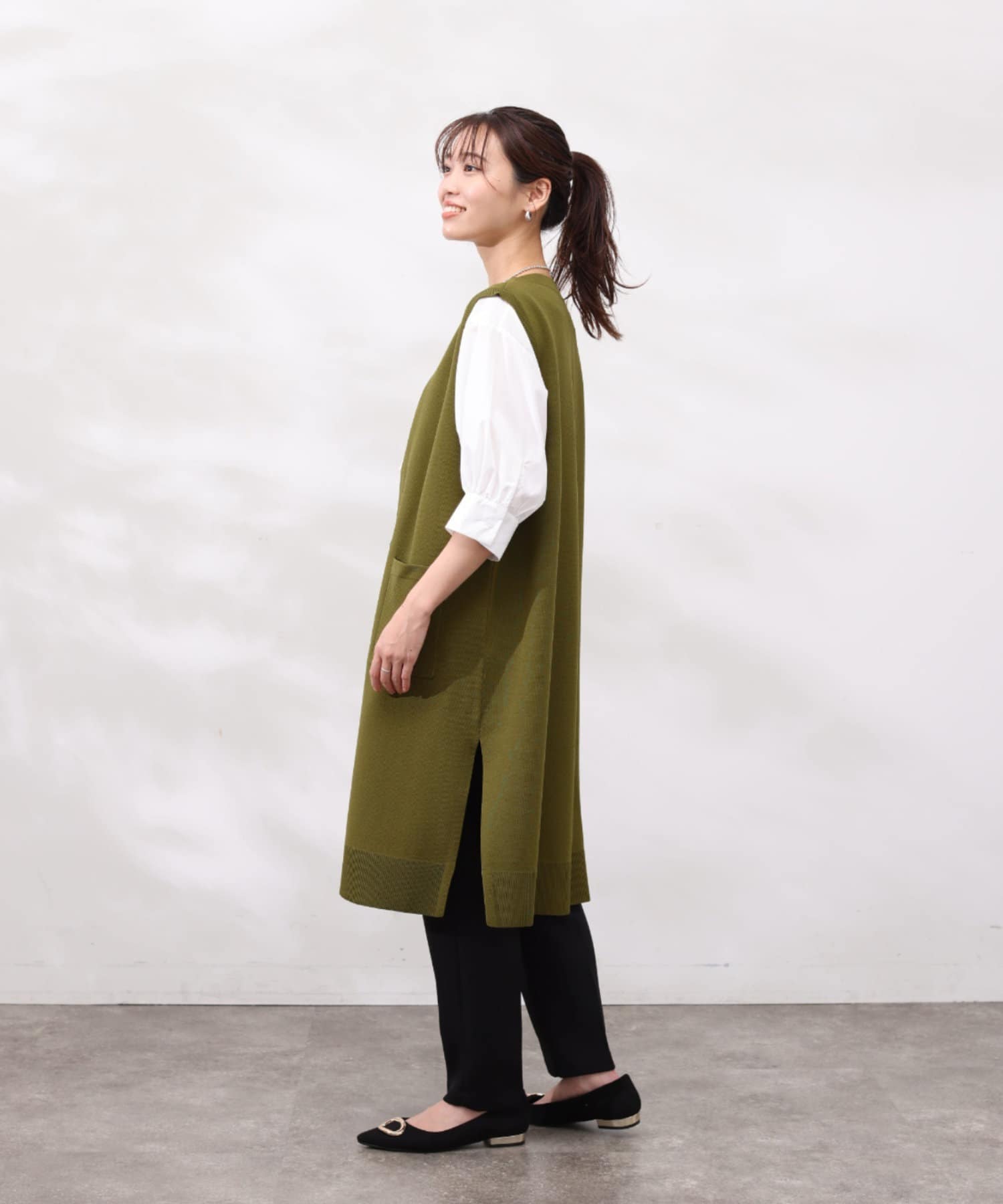 サイドに深めに入ったスリットと、広めのアームホールでインナーがもたつくことなくレイヤードコーデにおすすめ◎