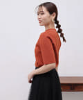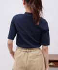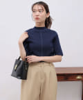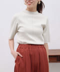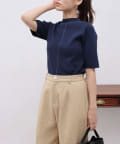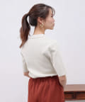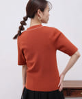 • Chez toi(シェトワ) 配色ライン5分袖ニットプルオーバー