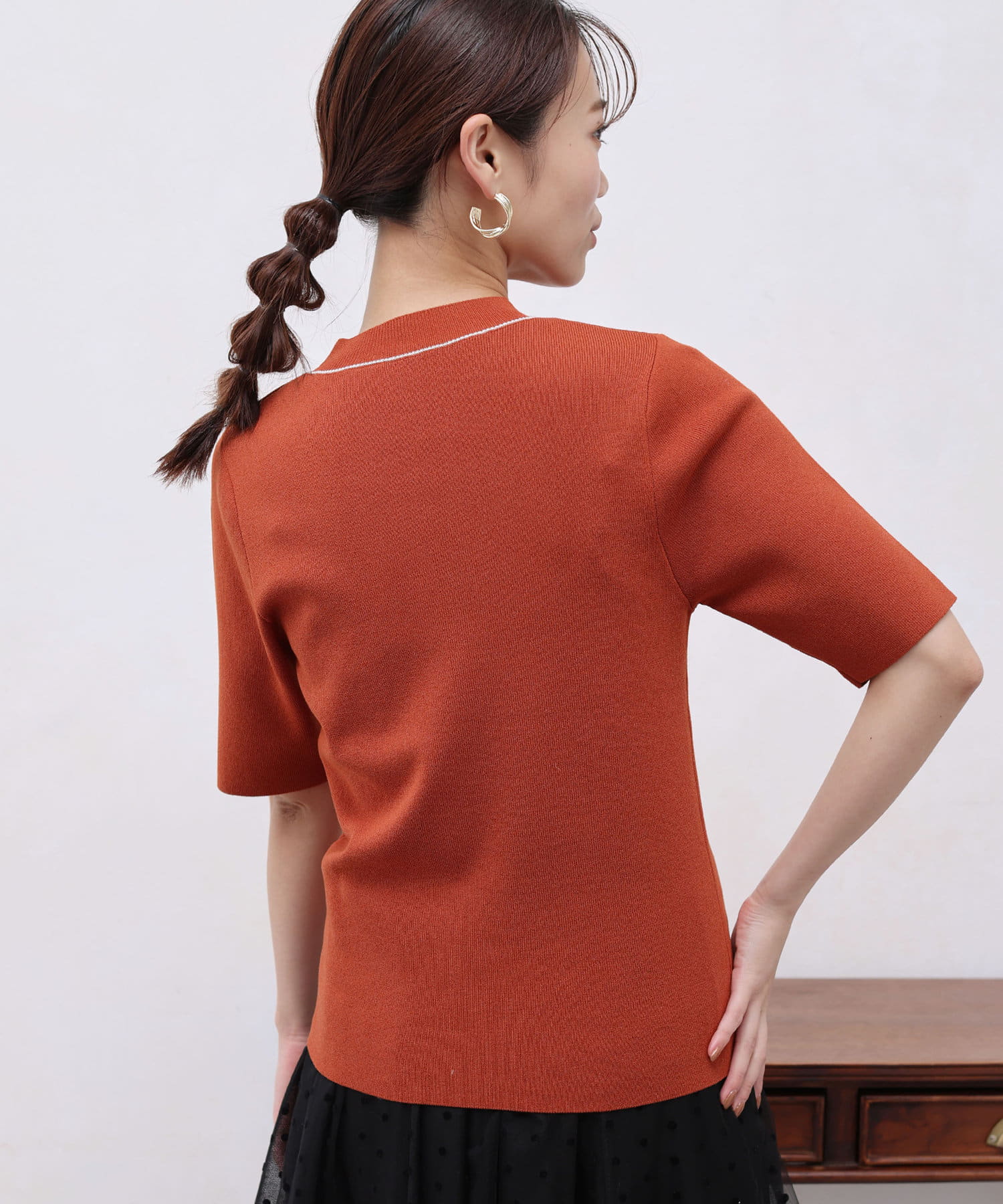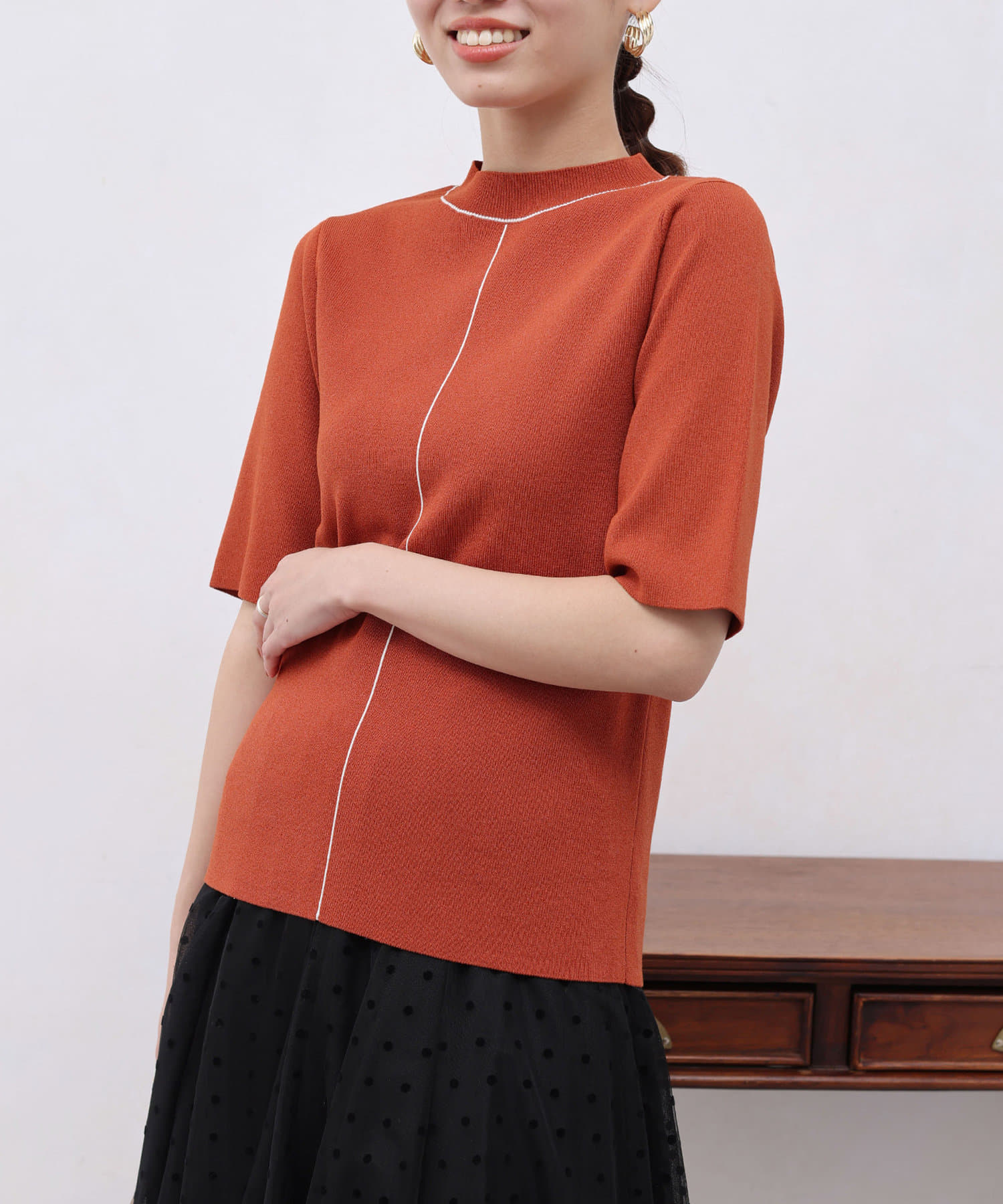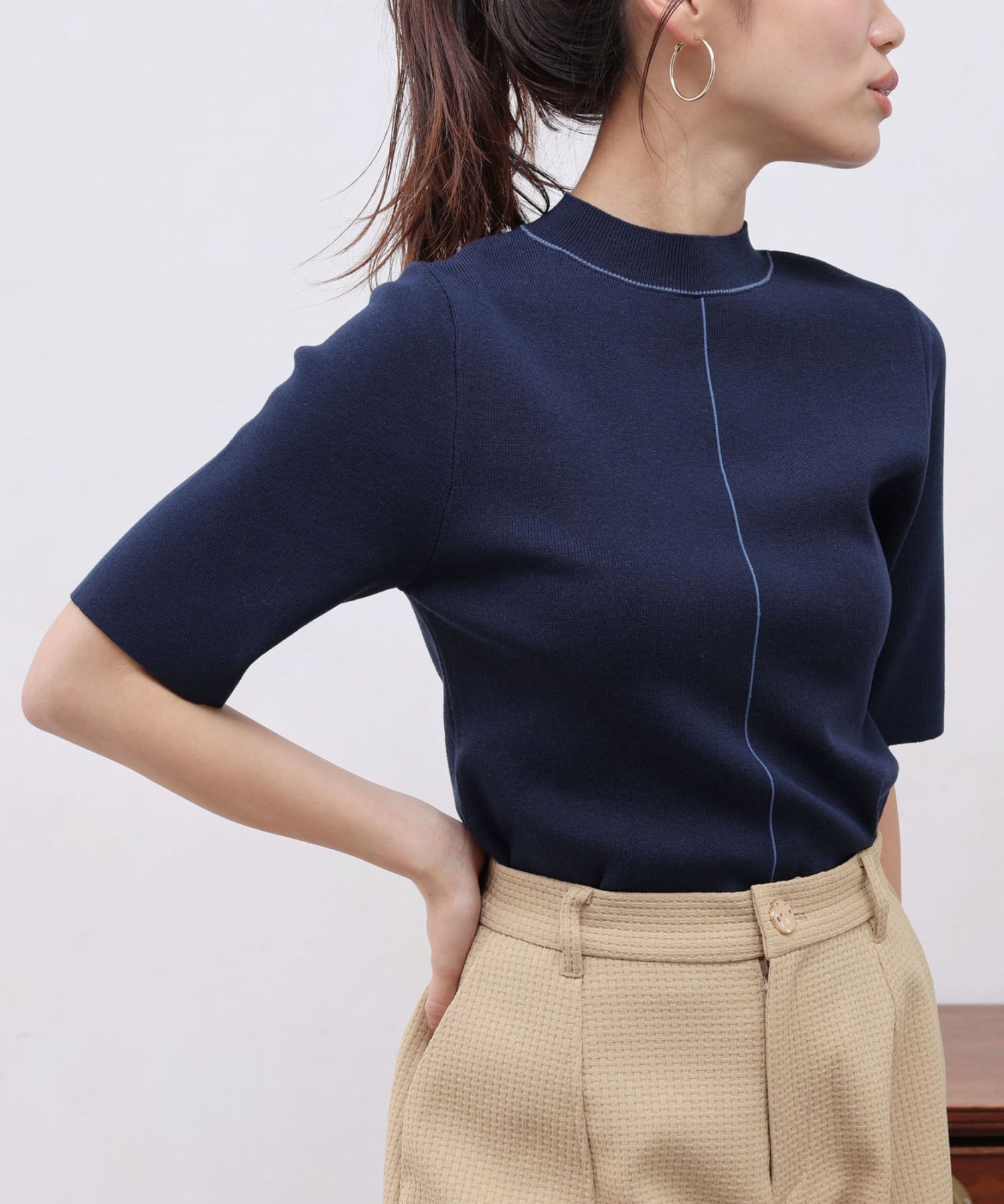 きれいめ見えの5分袖ニット