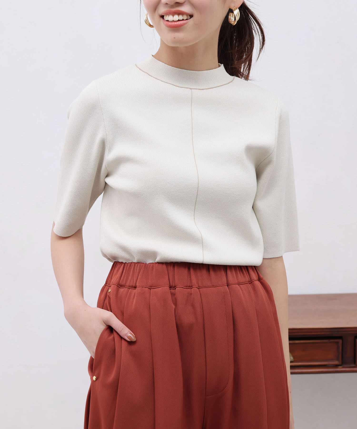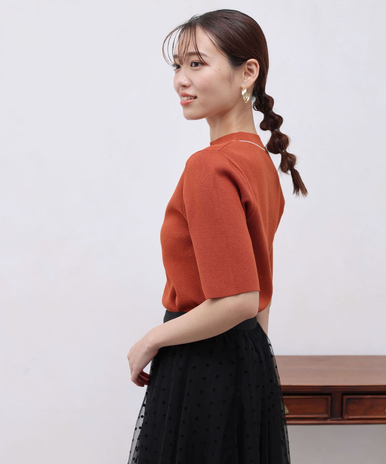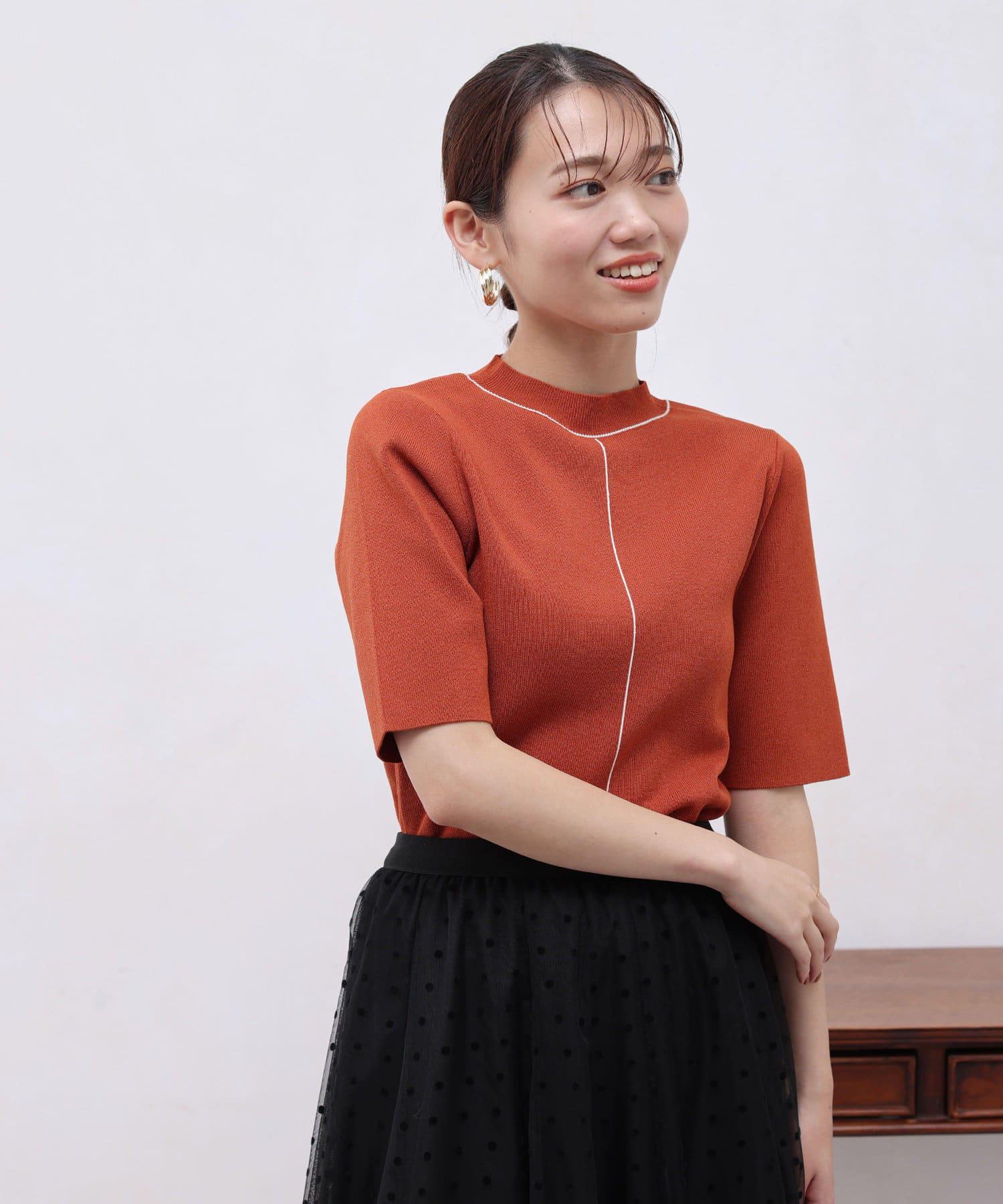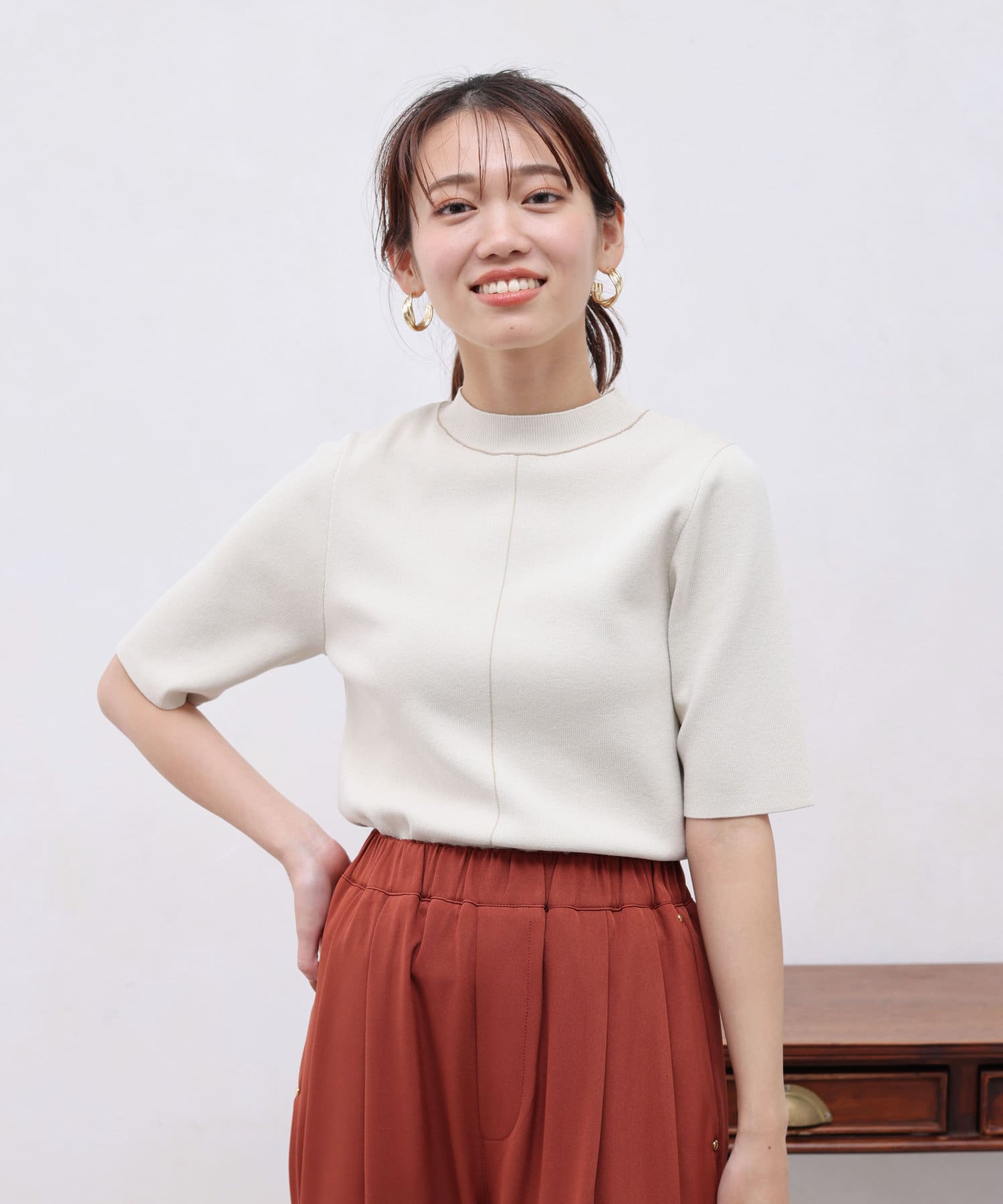 きれいめ見えの5分袖ニット