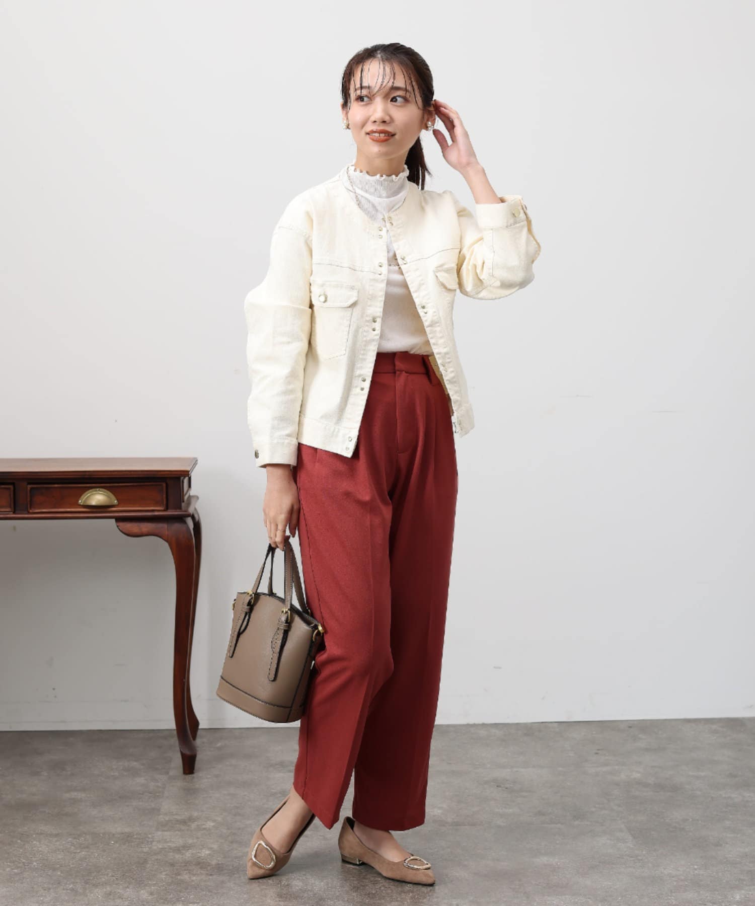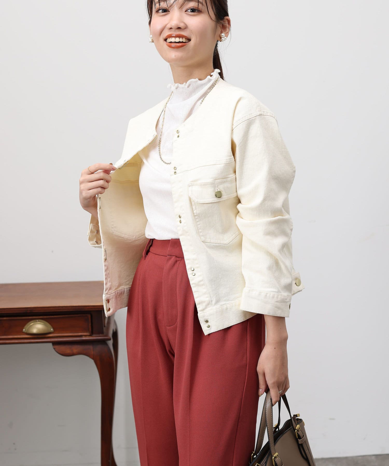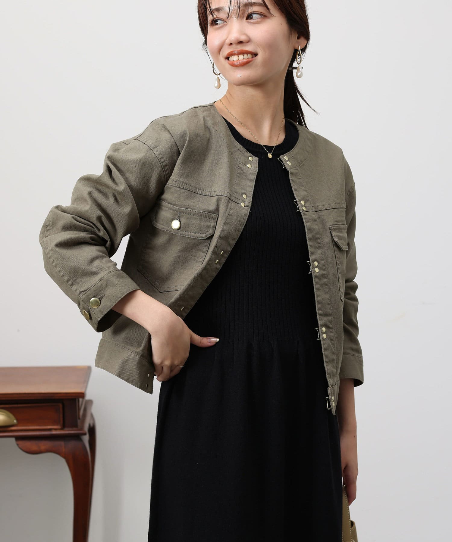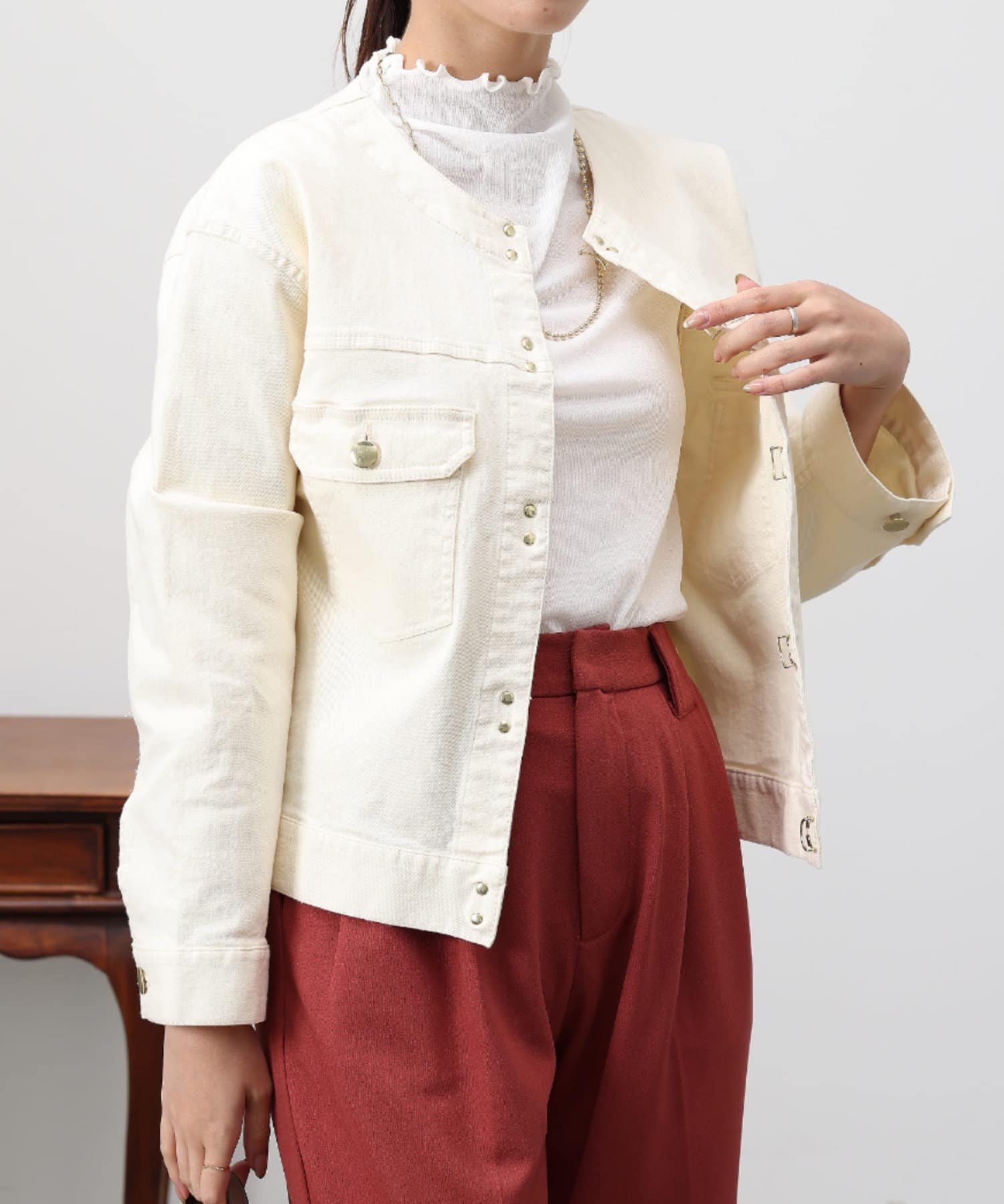 ノーカラーなのできれいめな印象を与えつつ、ジャケットほどかっちりしていないのでラフな着こなしにもばっちり!