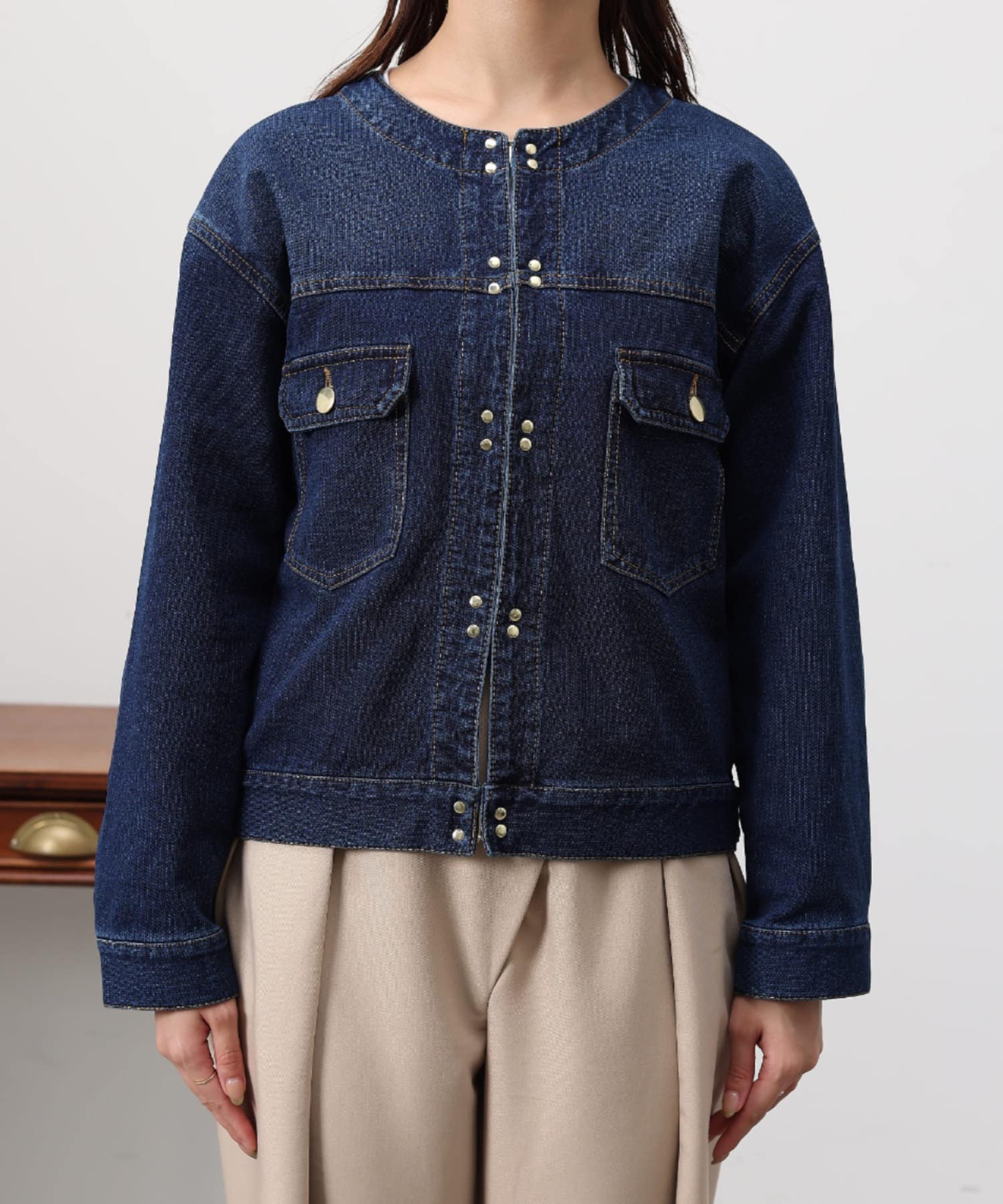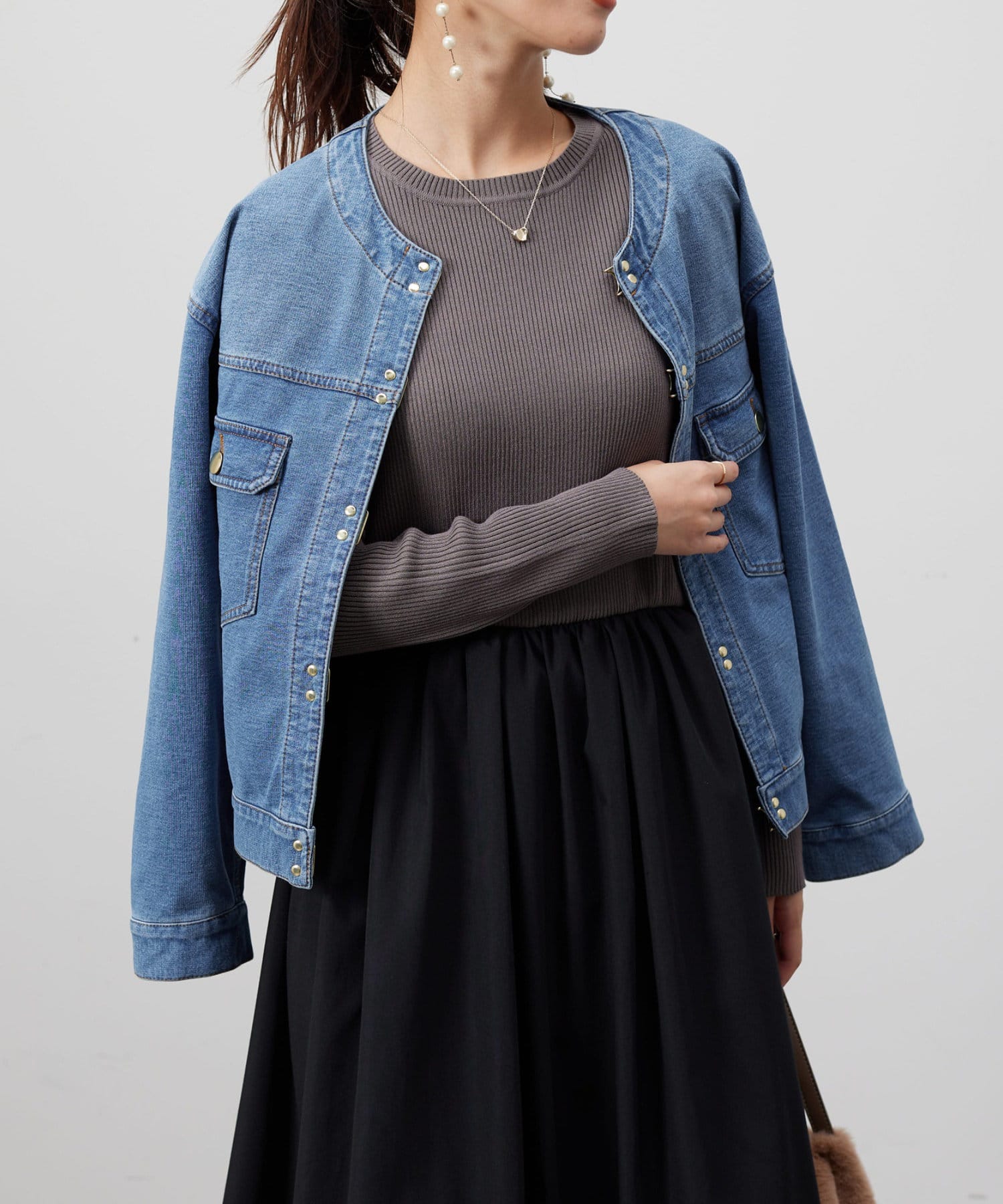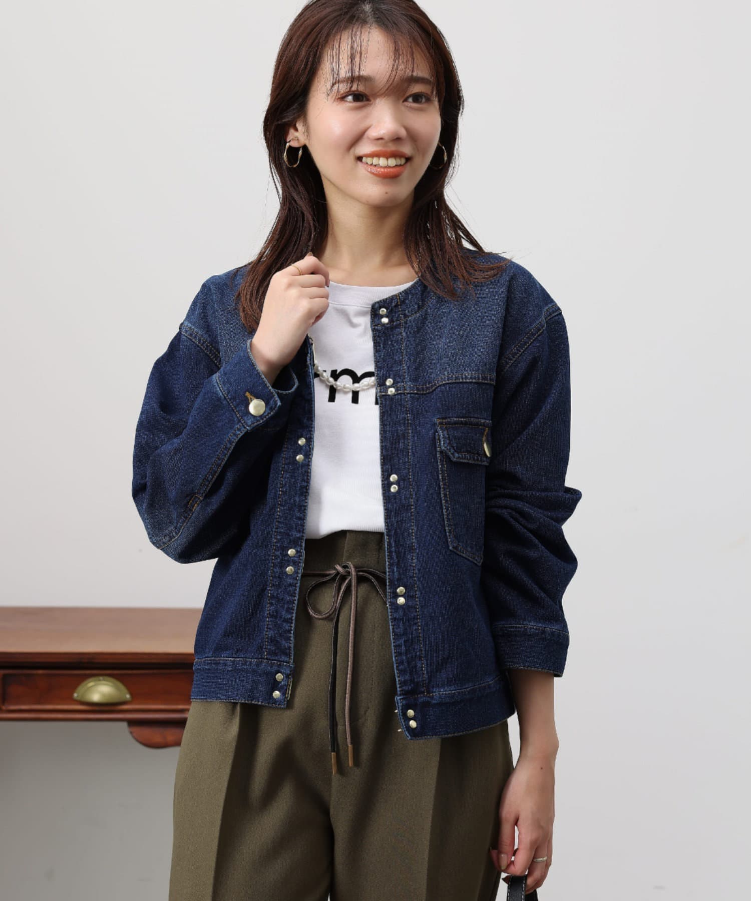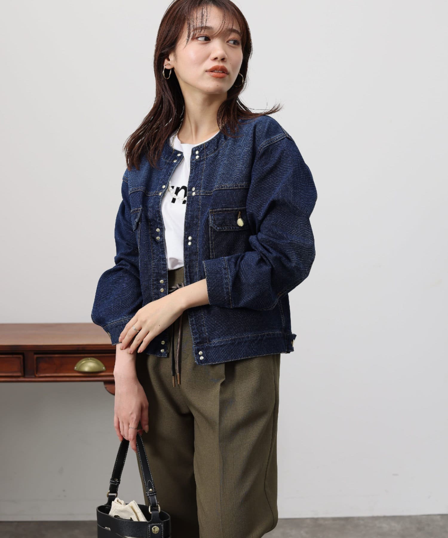 冬コートのインナーに入れてもかさばらないので、1枚あれば着こなしの幅が広がるデニムジャケットです。