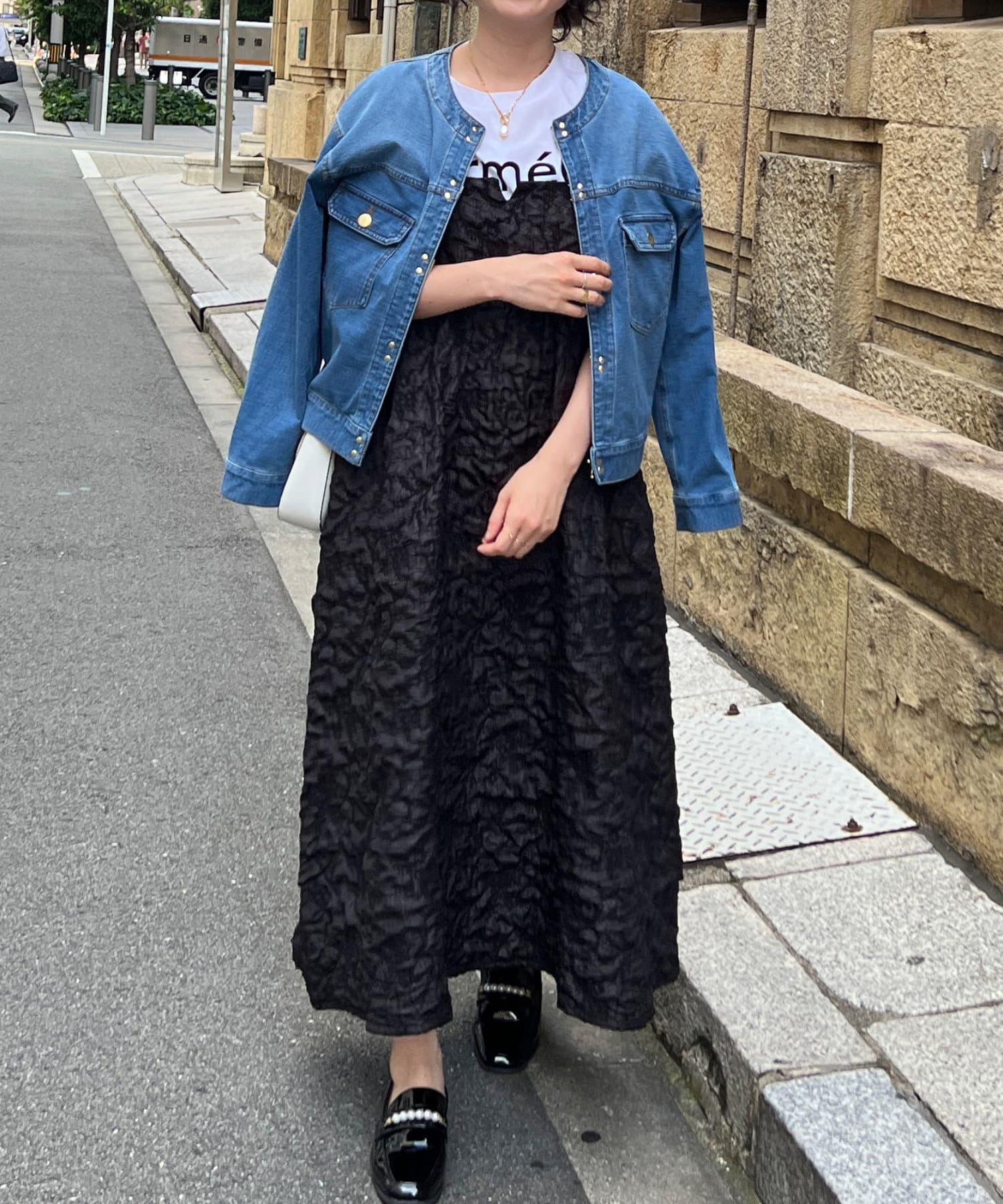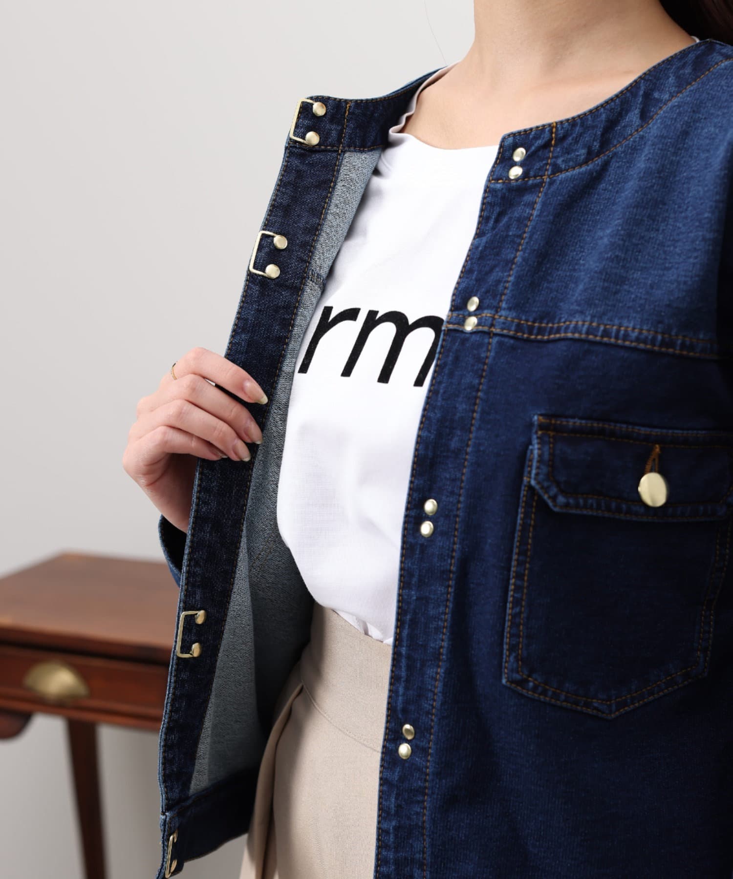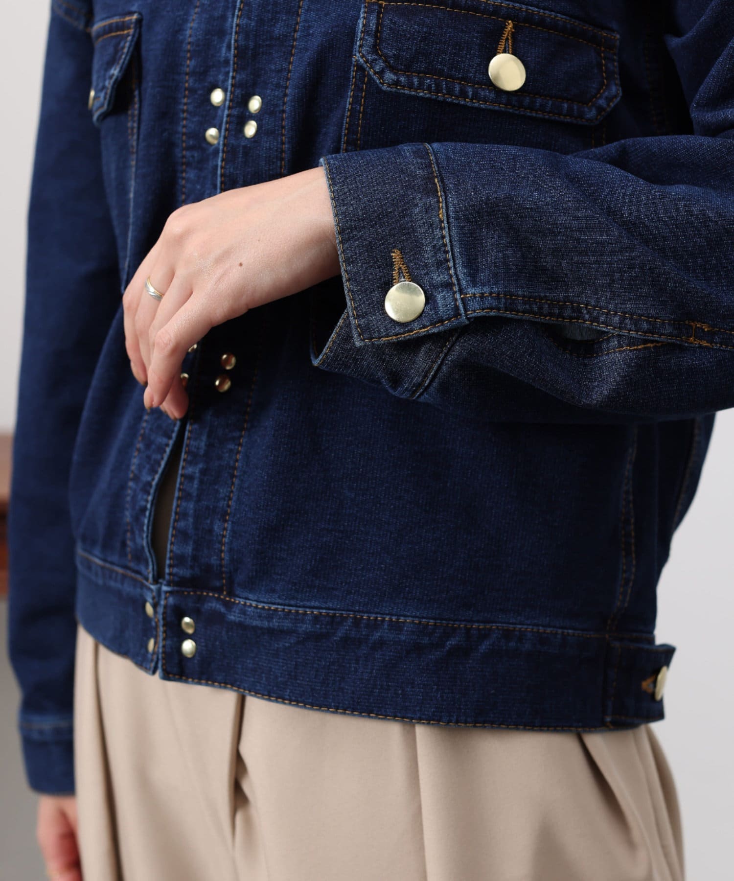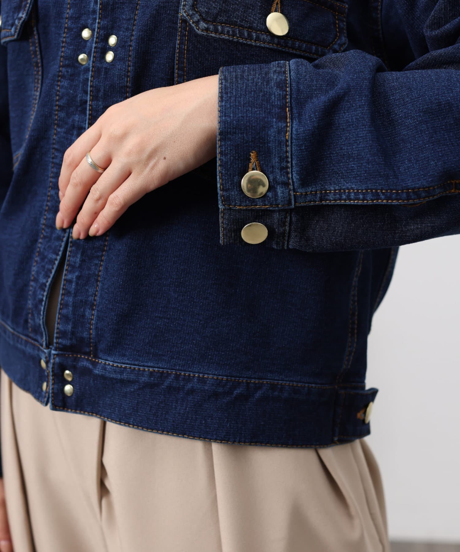 冬コートのインナーに入れてもかさばらないので、1枚あれば着こなしの幅が広がるデニムジャケットです。
